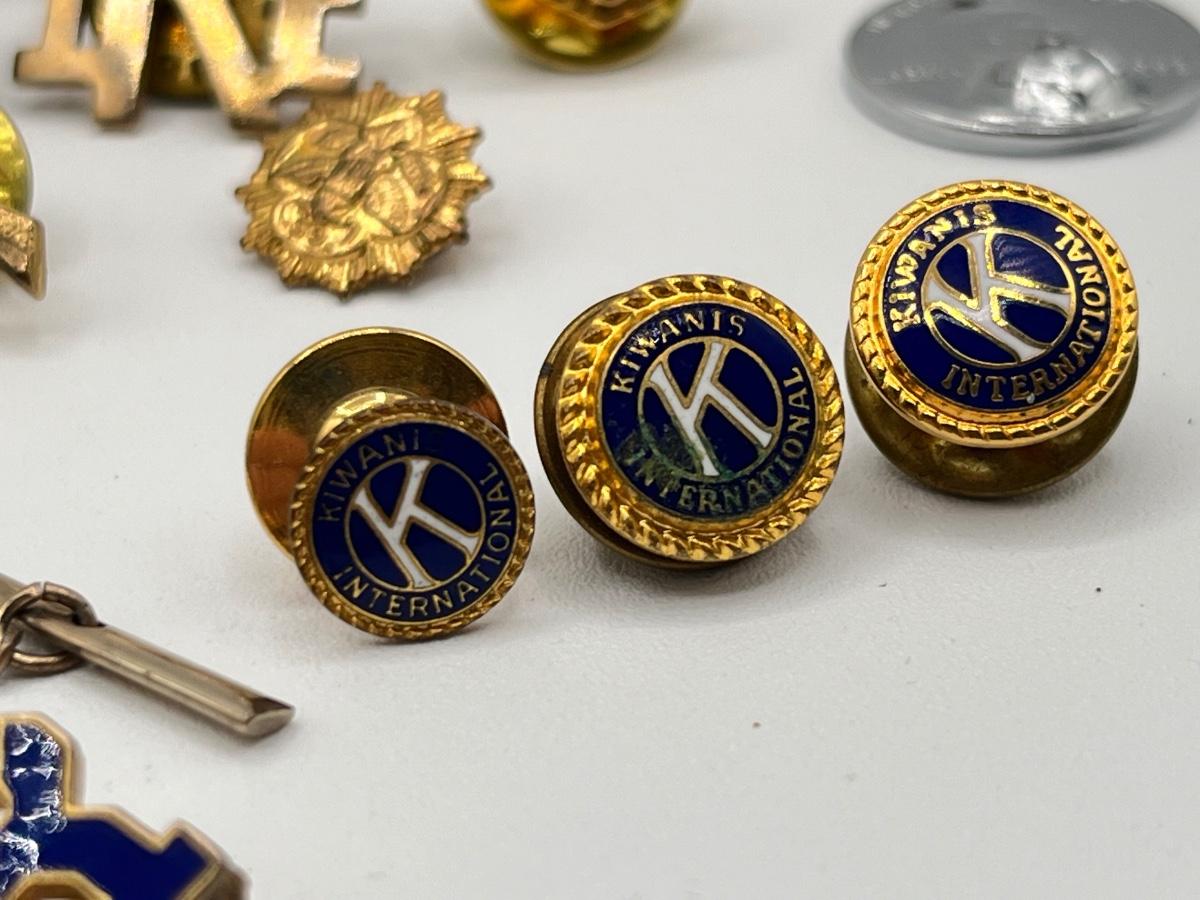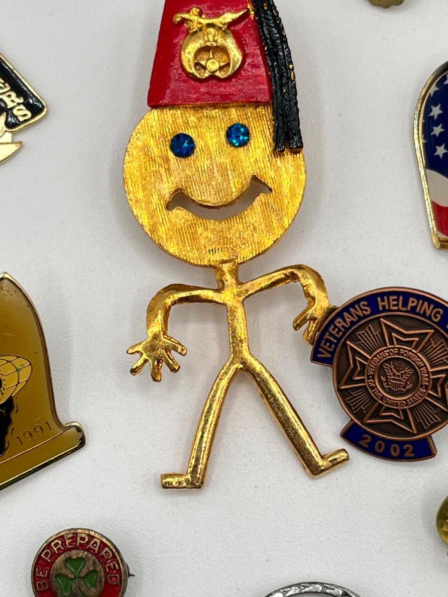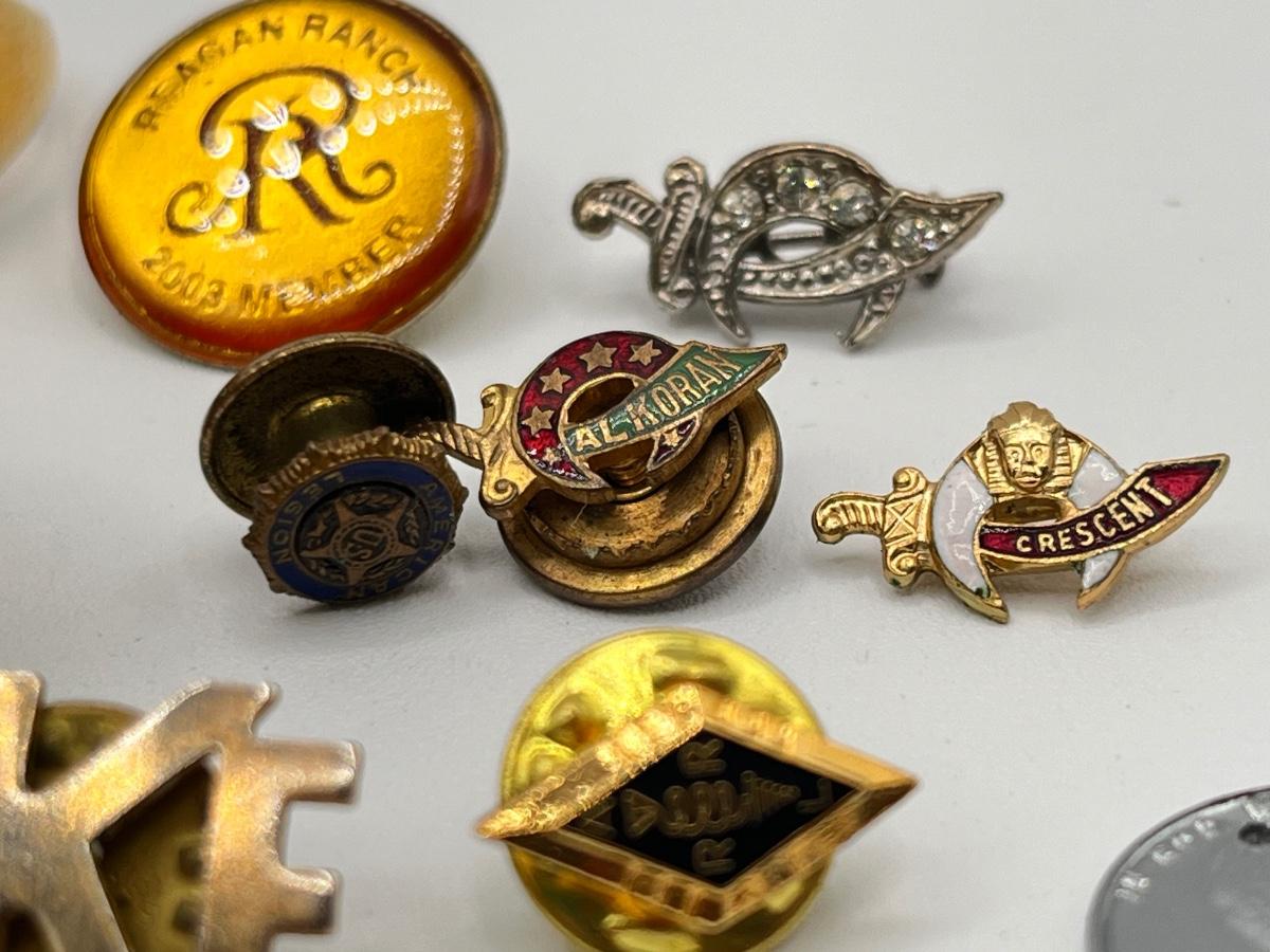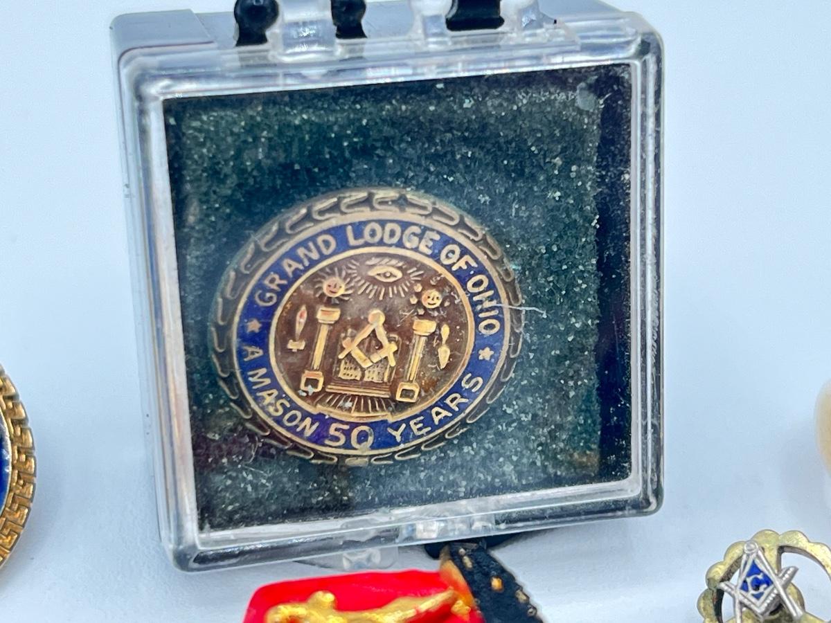 LOT 53: 10K Gold Filled Masonic Ring-Size 11-and Miscellaneous Pins: Kiwanis, Shriners, Masons and More!