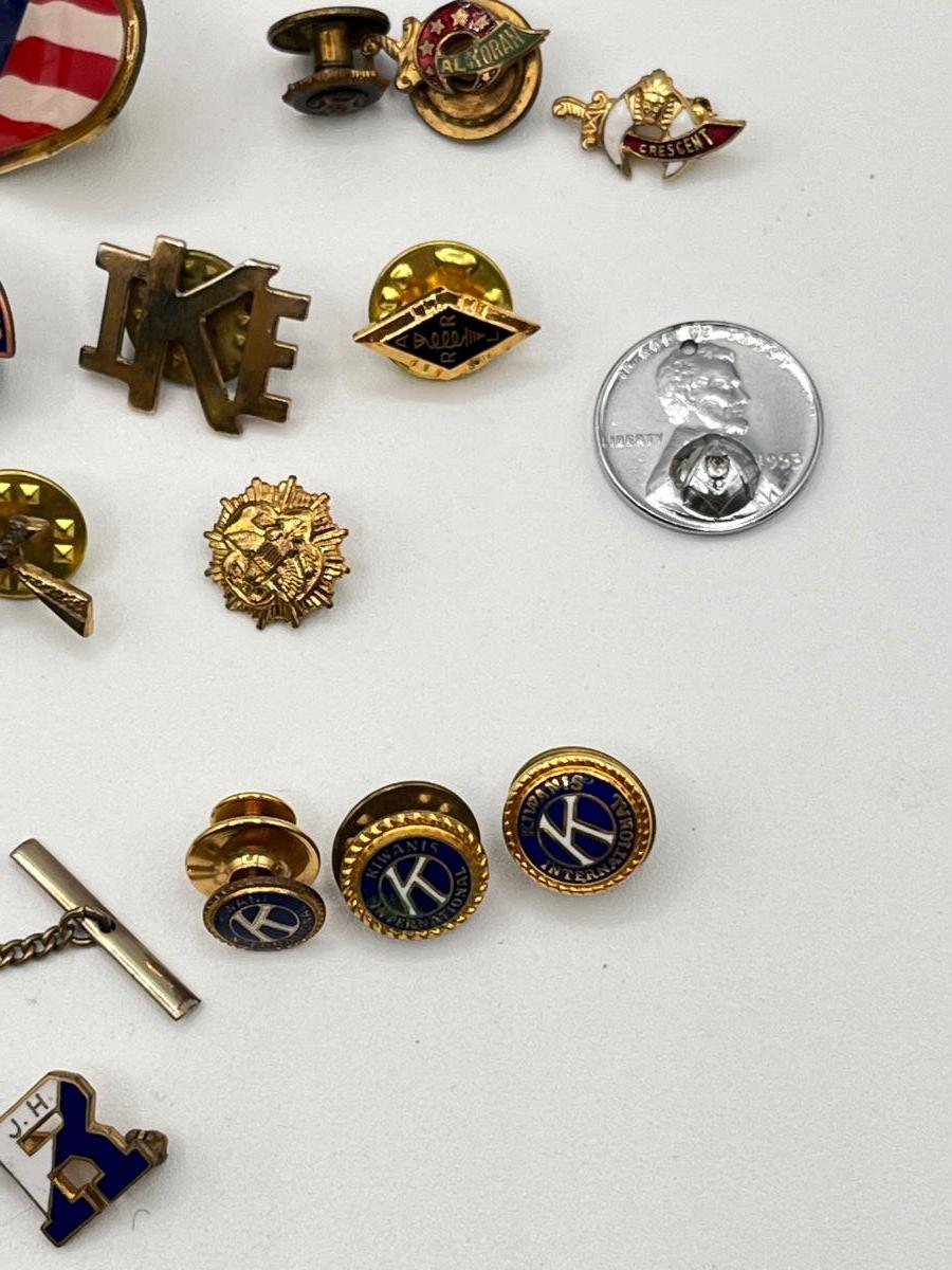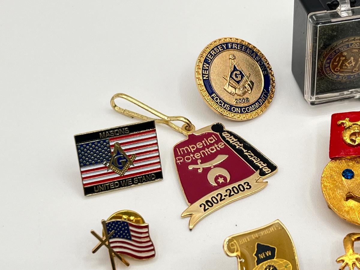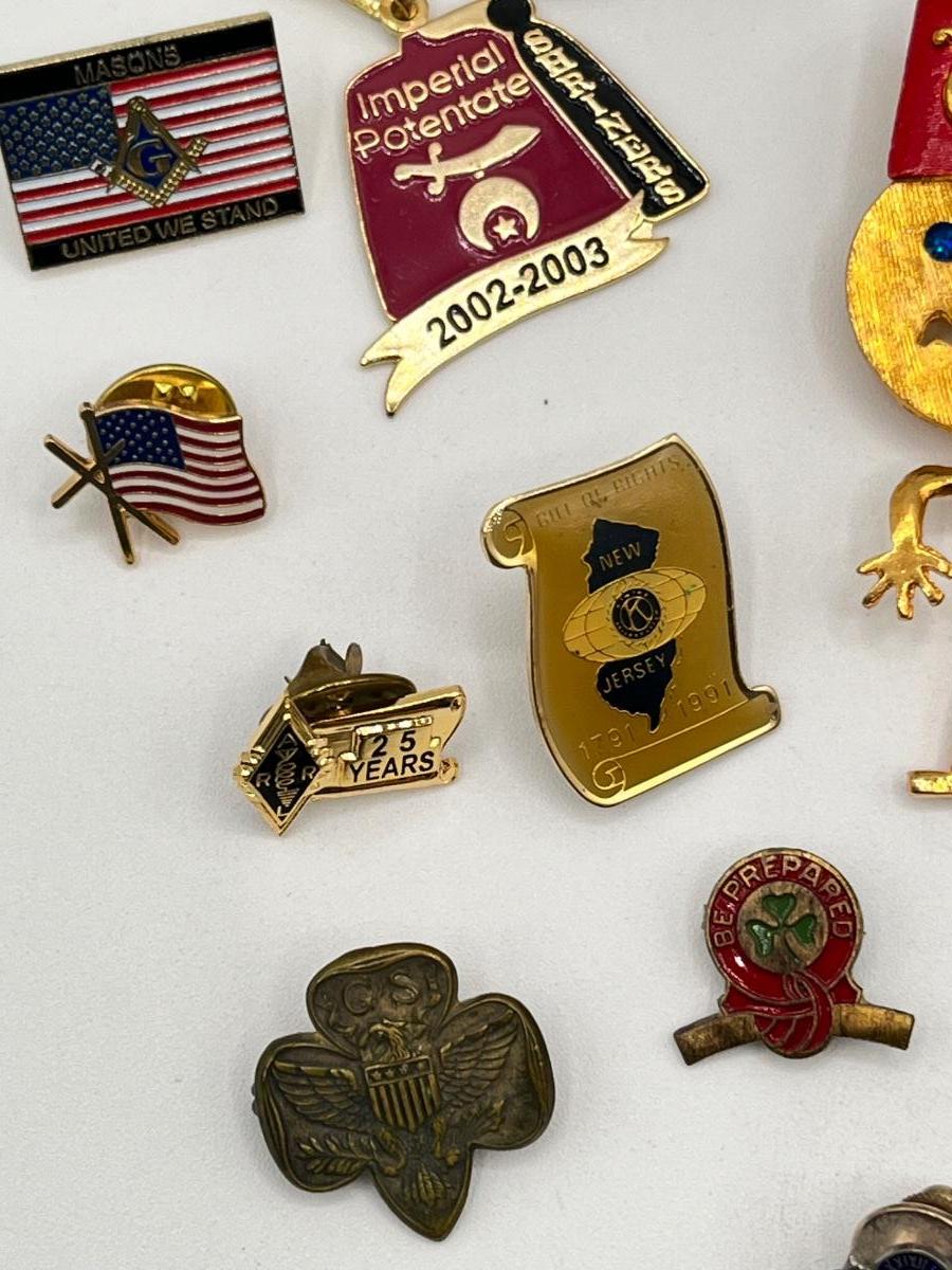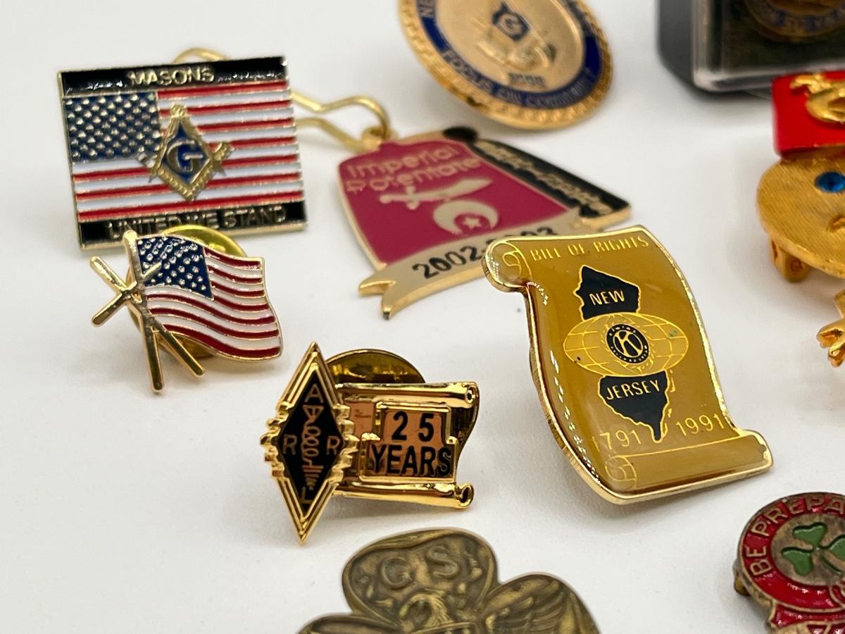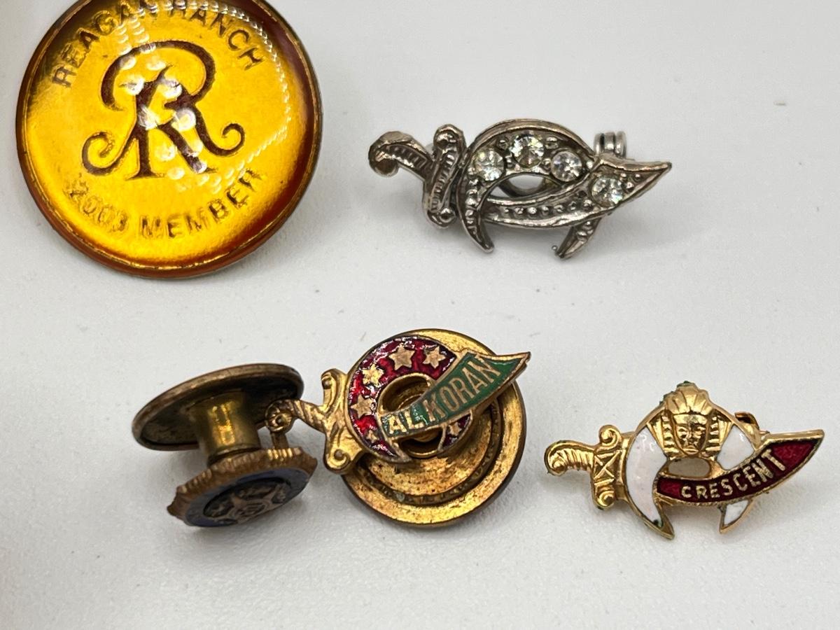 LOT 53: 10K Gold Filled Masonic Ring-Size 11-and Miscellaneous Pins: Kiwanis, Shriners, Masons and More!