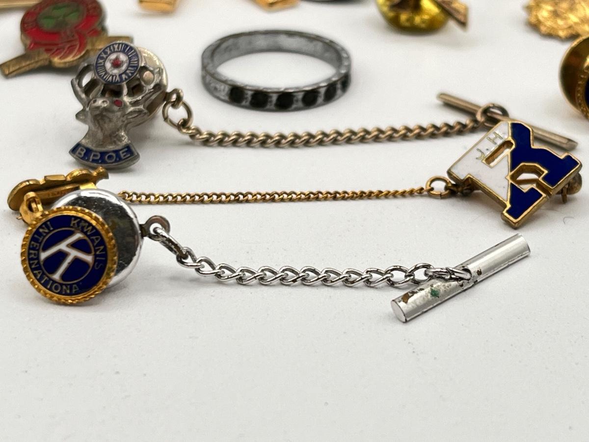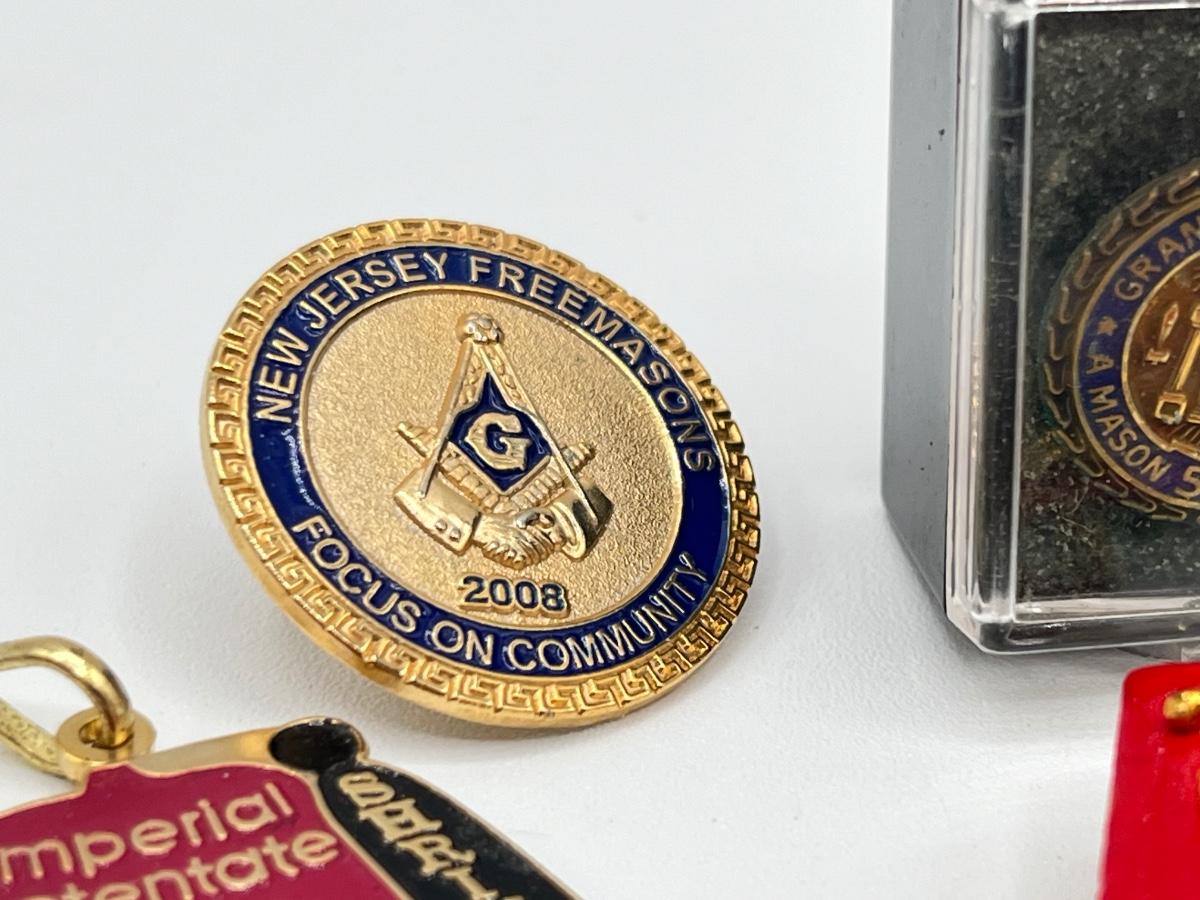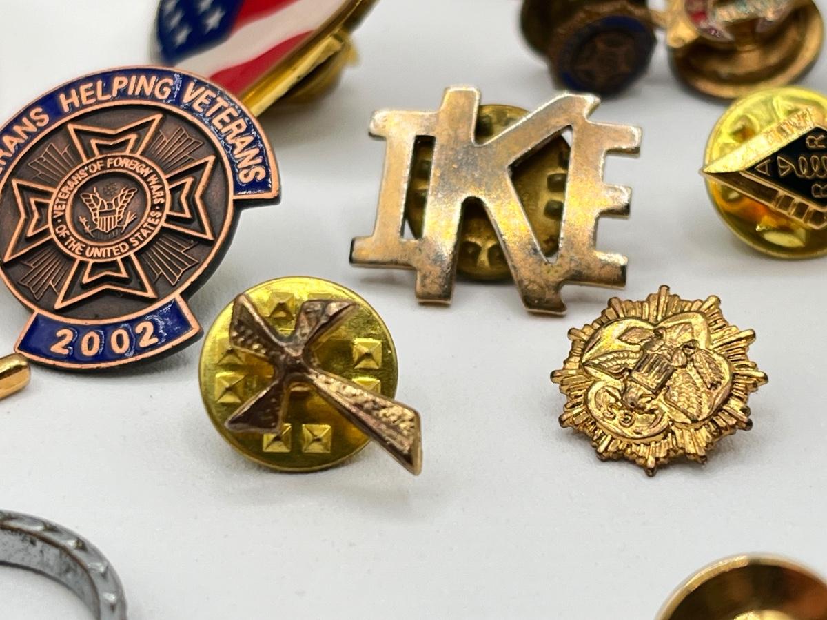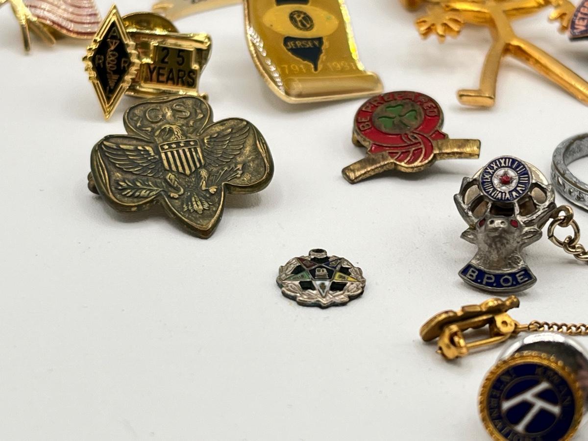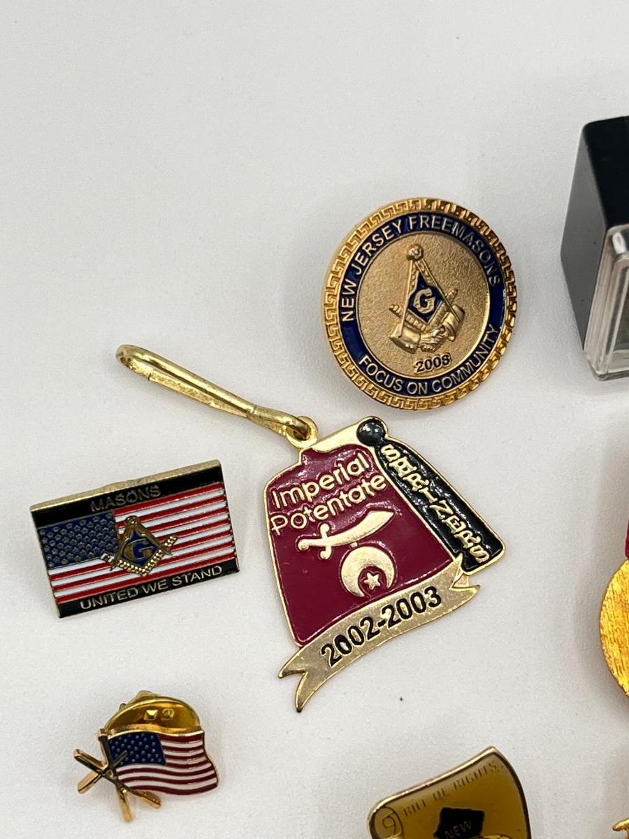 LOT 53: 10K Gold Filled Masonic Ring-Size 11-and Miscellaneous Pins: Kiwanis, Shriners, Masons and More!