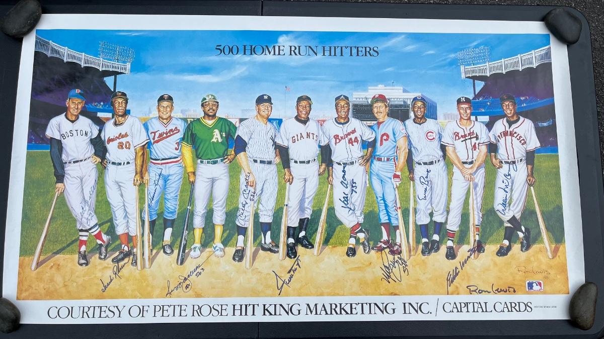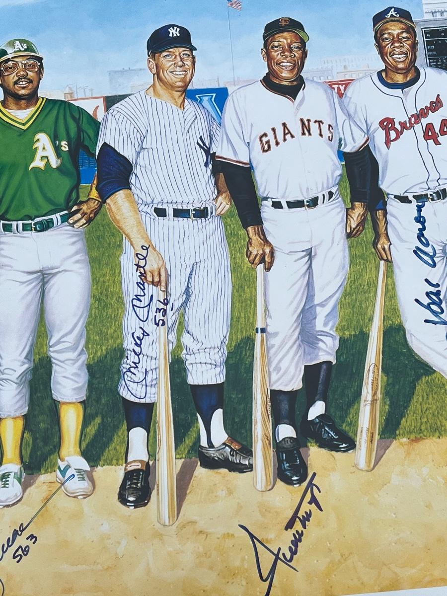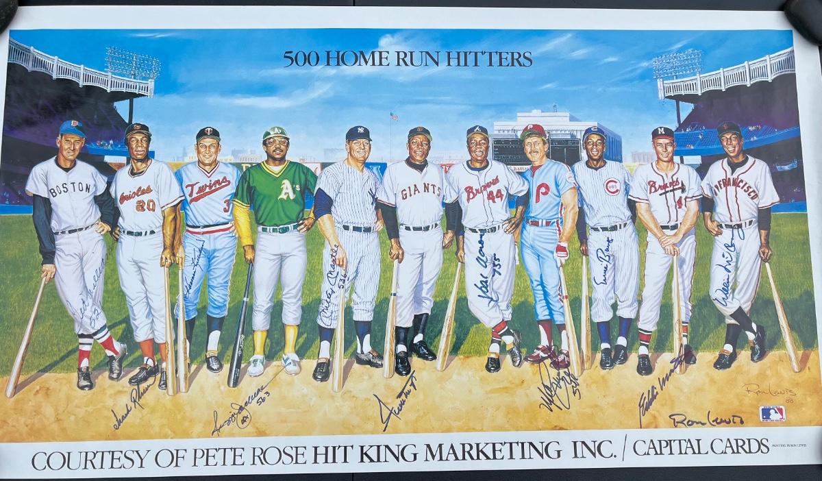 LOT 61: Ron Lewis "500 Homerun Hitters" Lithograph w/ Autographs of all 11 Hall-of-Famers and the Artist - Mays, Mantle, Aaron and More!