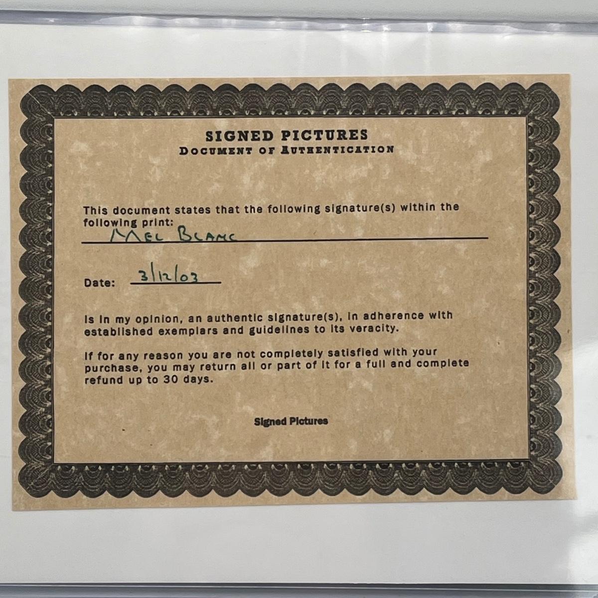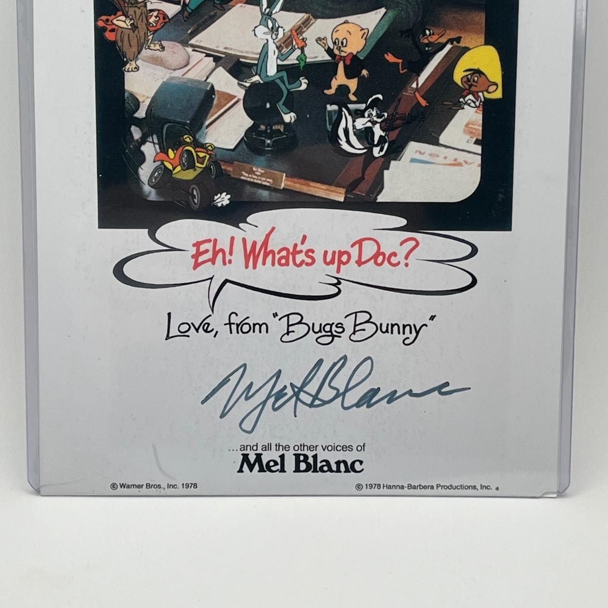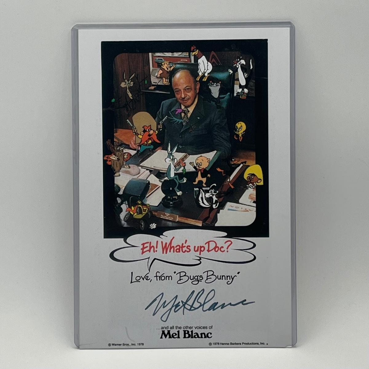 LOT 63: Autographed Card by the Man of a Thousand Voices - Looney Toons' own Mel Blanc - Bugs Bunny, Porky Pig, Yosemite Sam and Many More