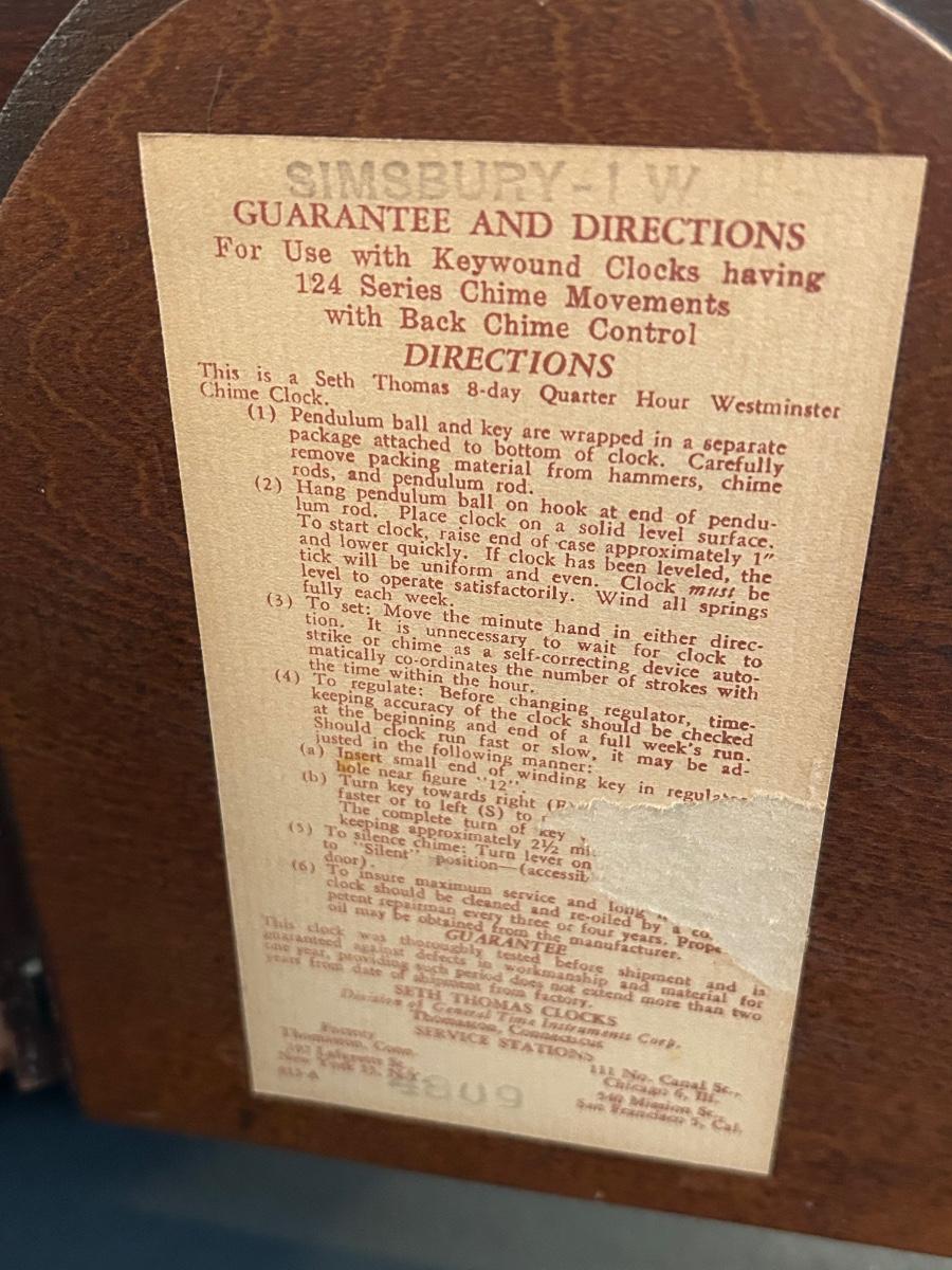 LOT 4: Seth Thomas Art Deco 8-Day Quarter Hour Westinster Chime Key Wound Shelf Clock