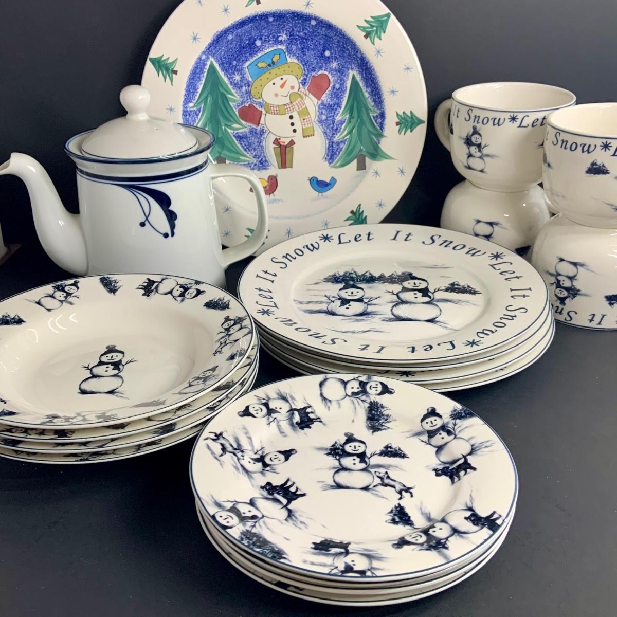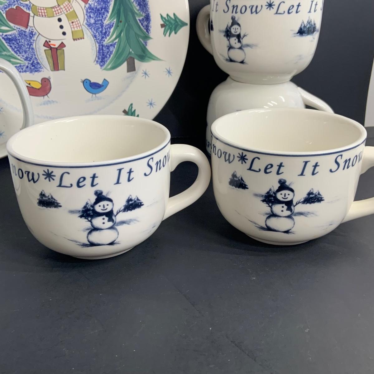 LOT:47: Let It Snow Collection of Cookie Plates, Bowls and Hot Chocolate Mugs, Dansk Flora Pot and More