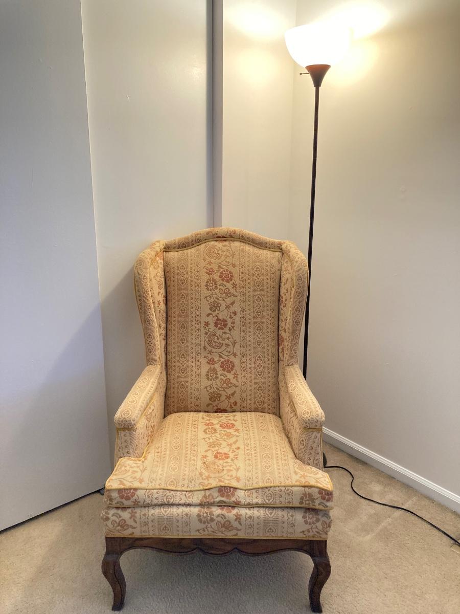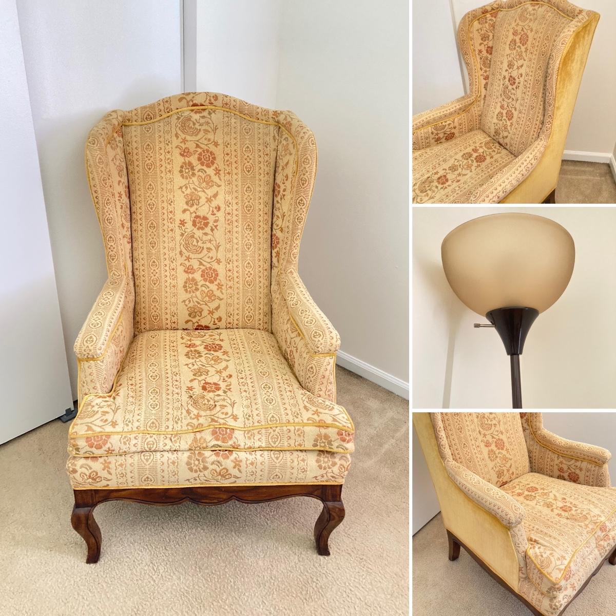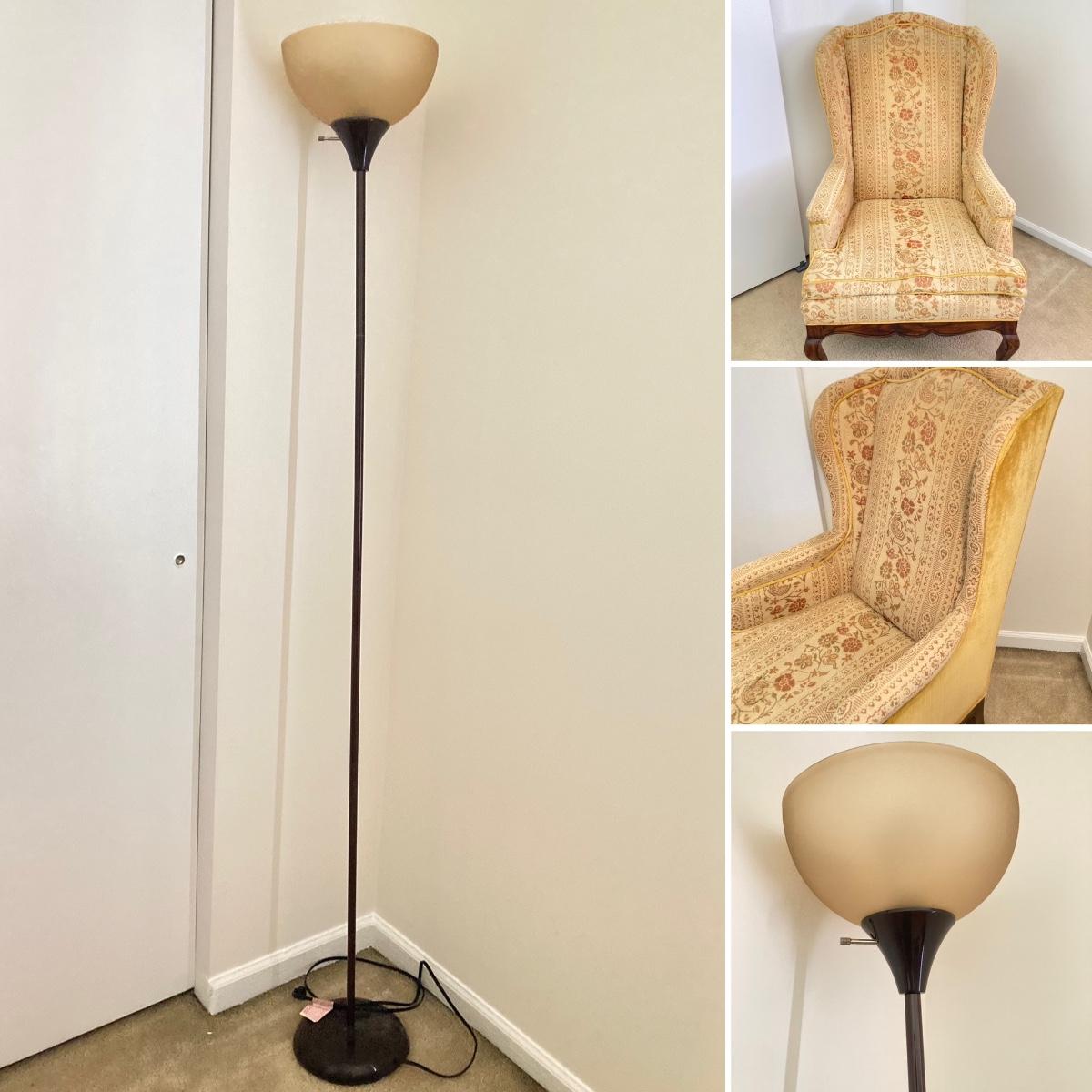 LOT 57: Wingback Arm Chair and Floor Lamp