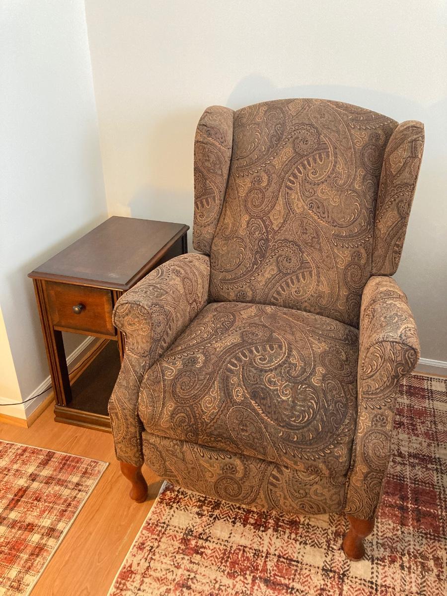 Recliner 30"w x 36"d x 40"h - Night Stand 13"w x 22"d x 23"h