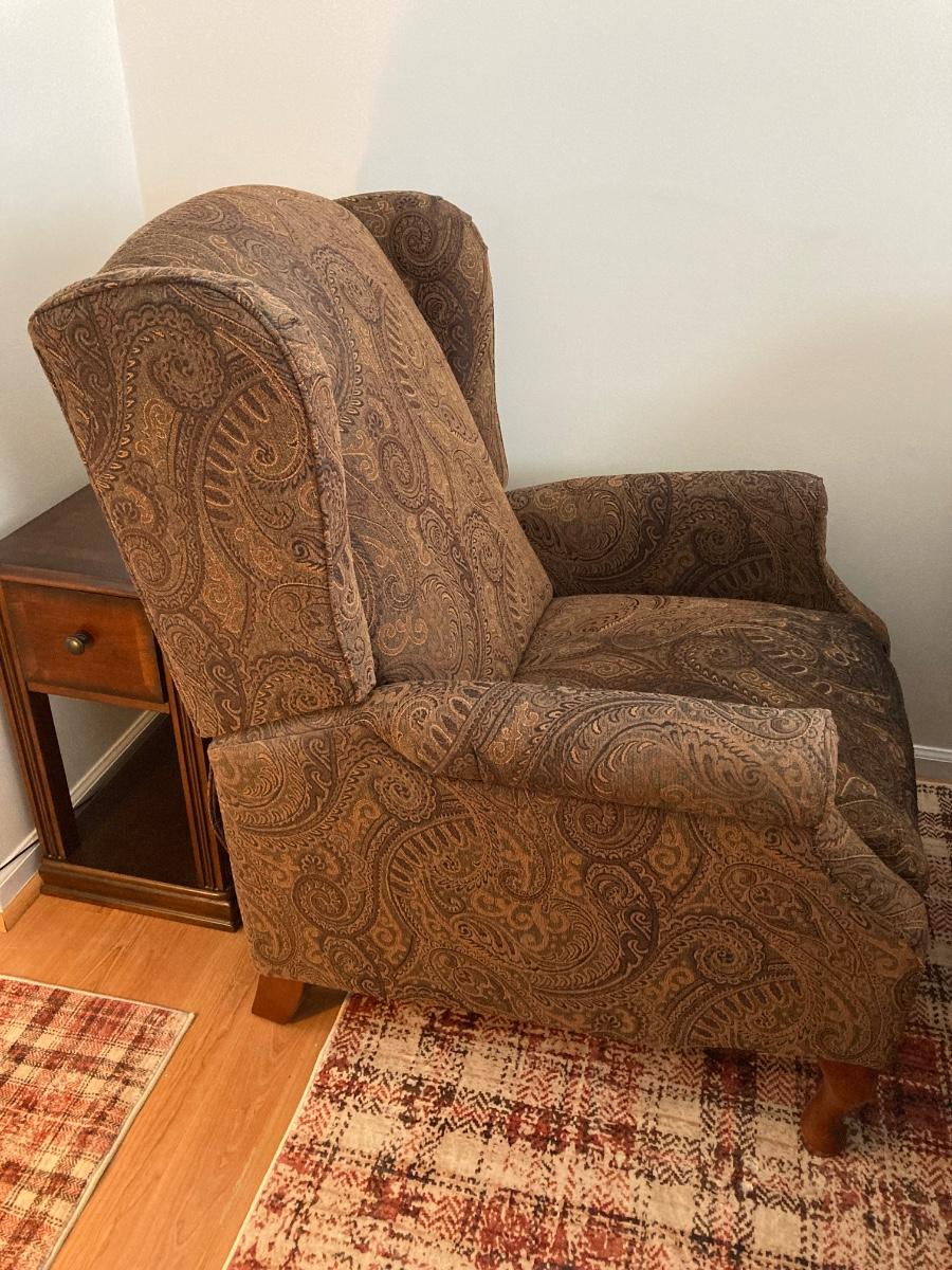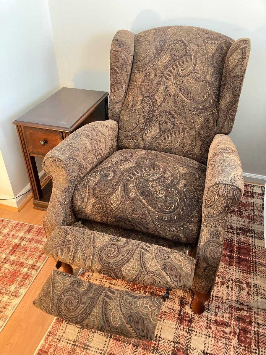 LOT 58: Print Recliner and Chairside End Table