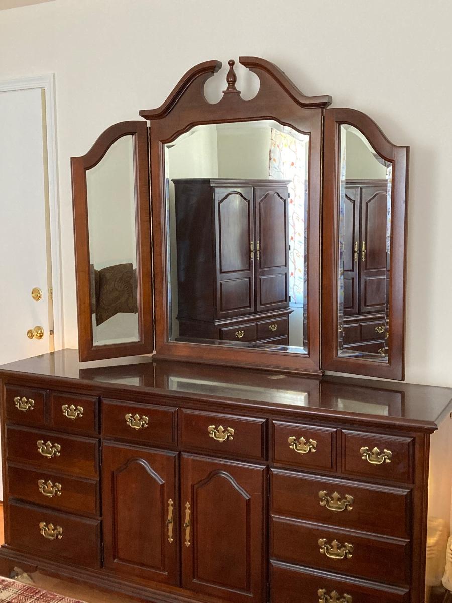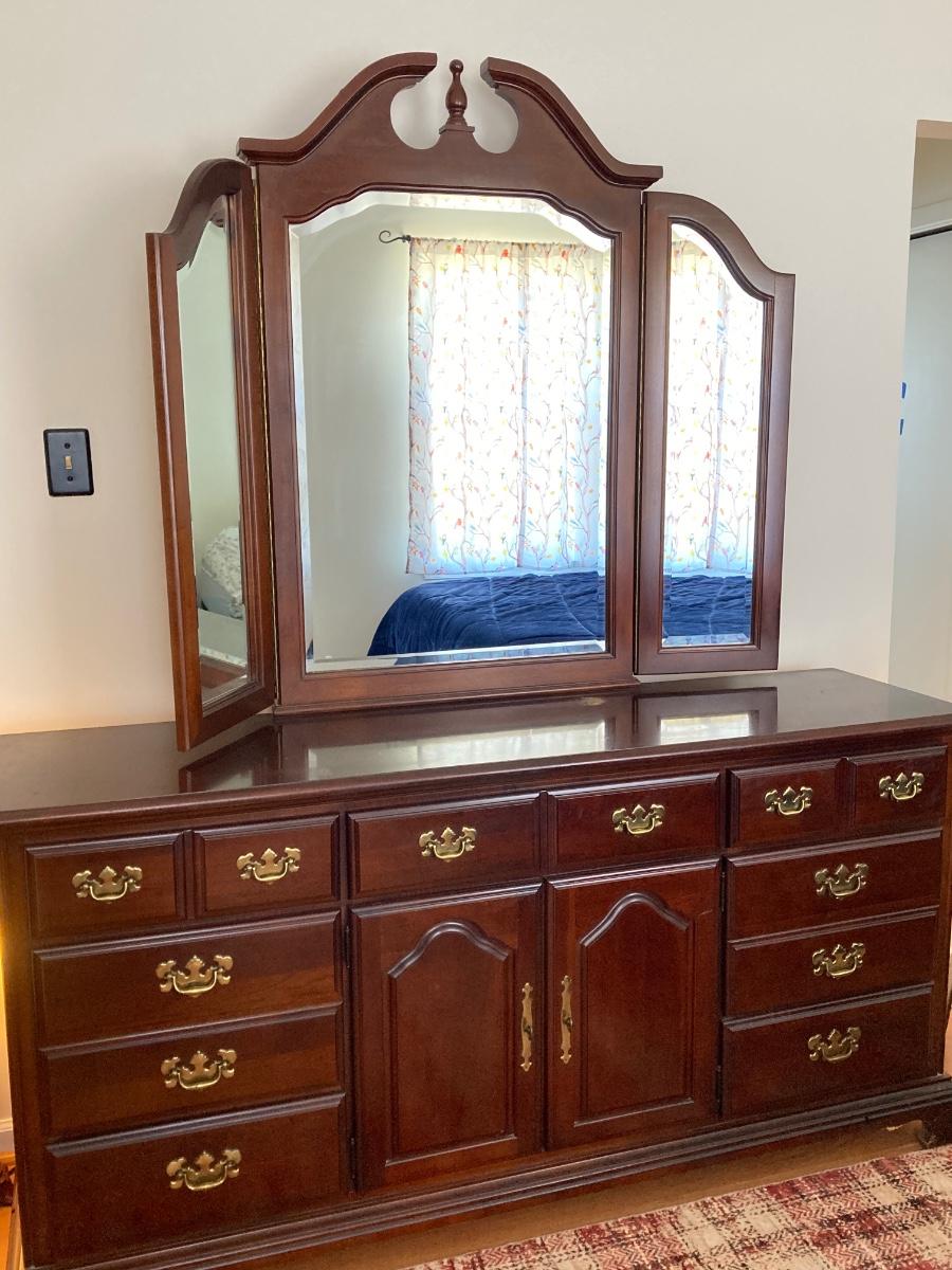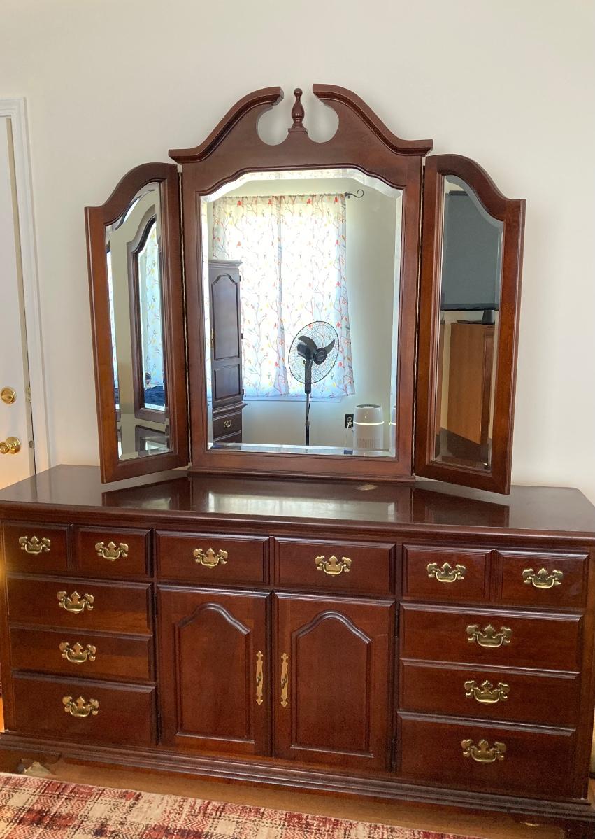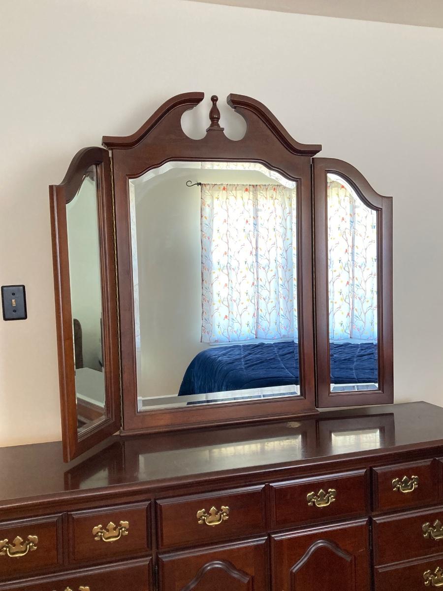 LOT 59: Wood Dresser with Trifold Mirror