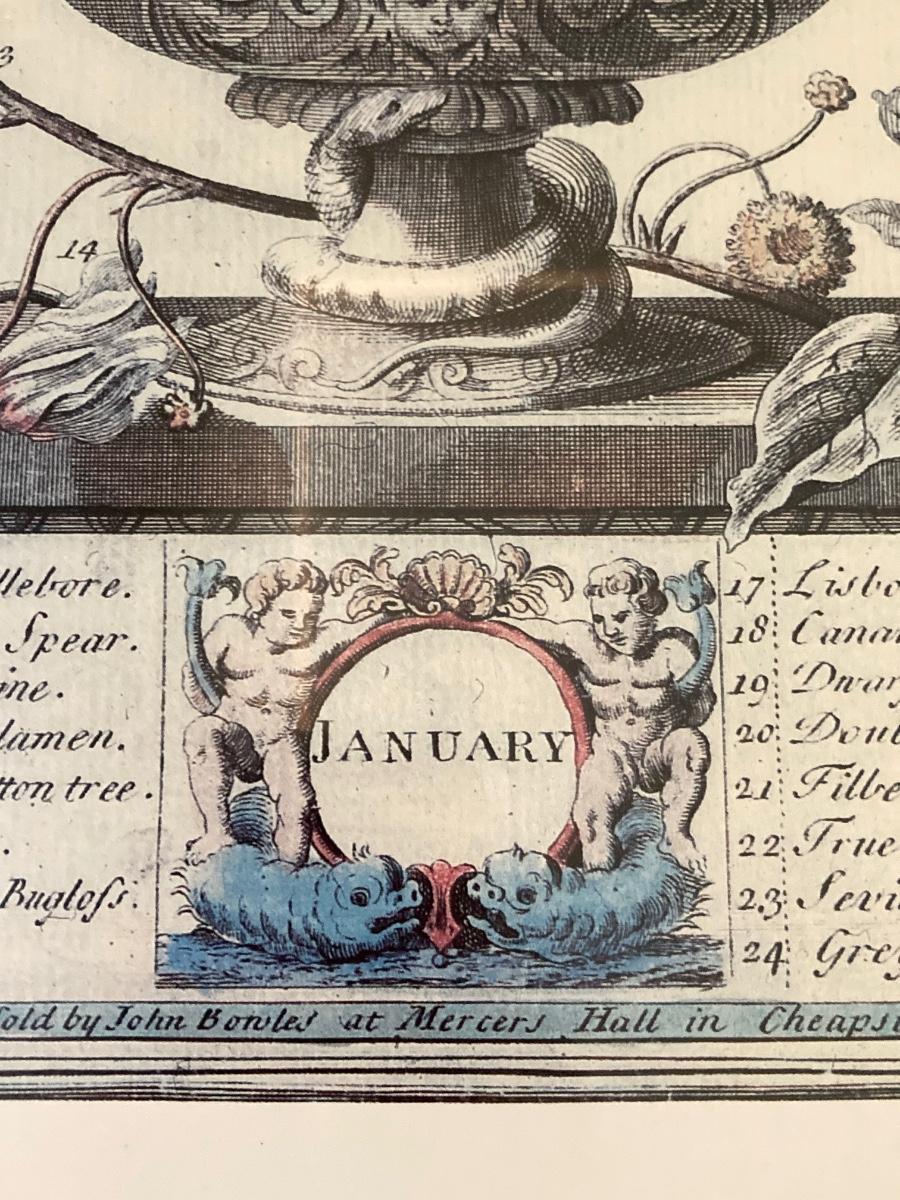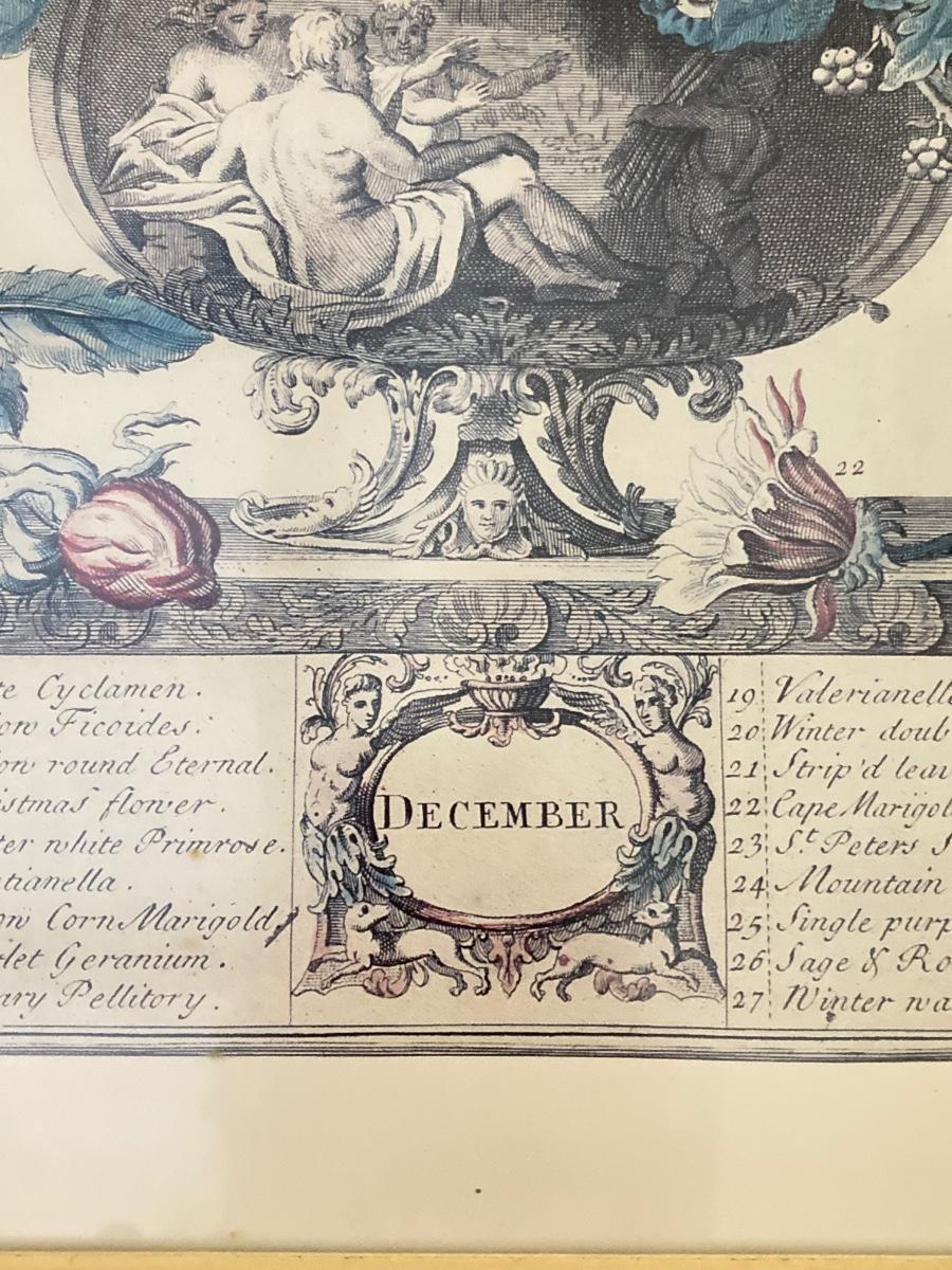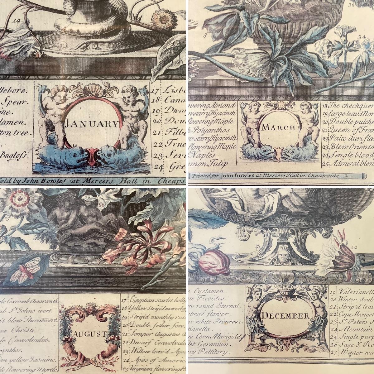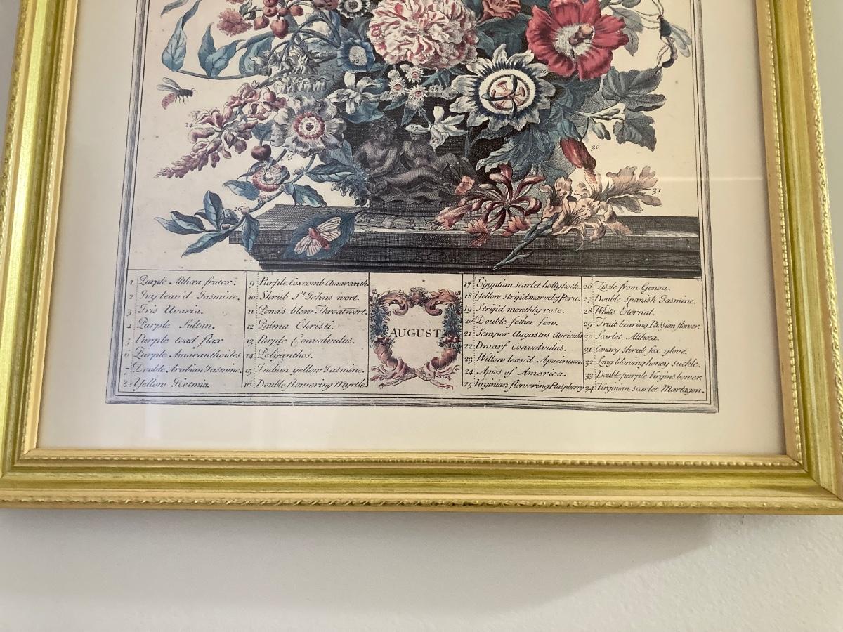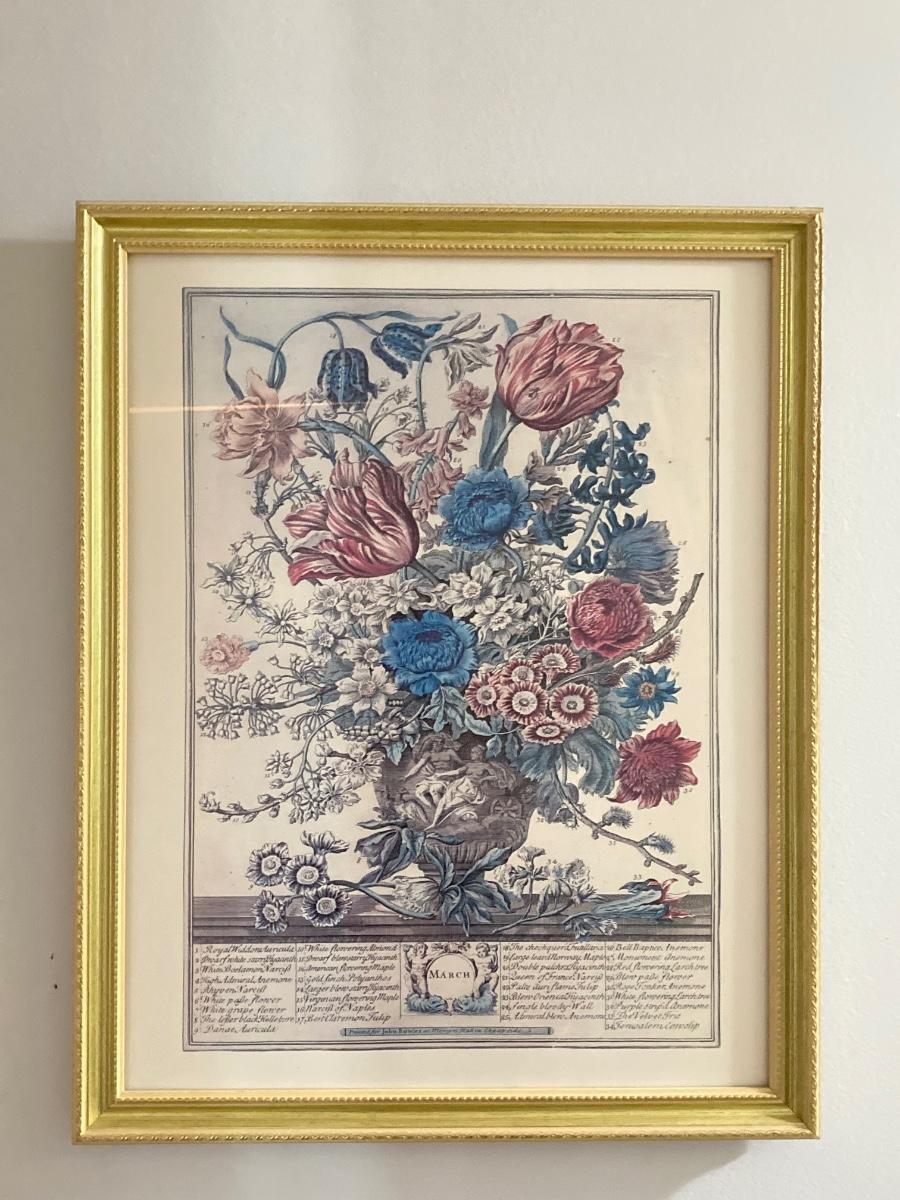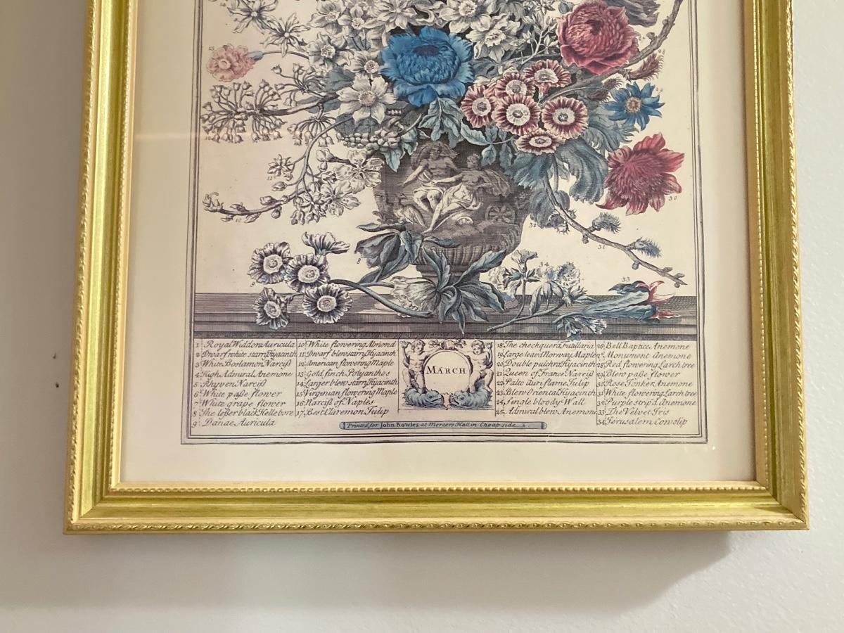 LOT 60: Four Botanical Gold Tone Framed Prints (January, March, August and December)