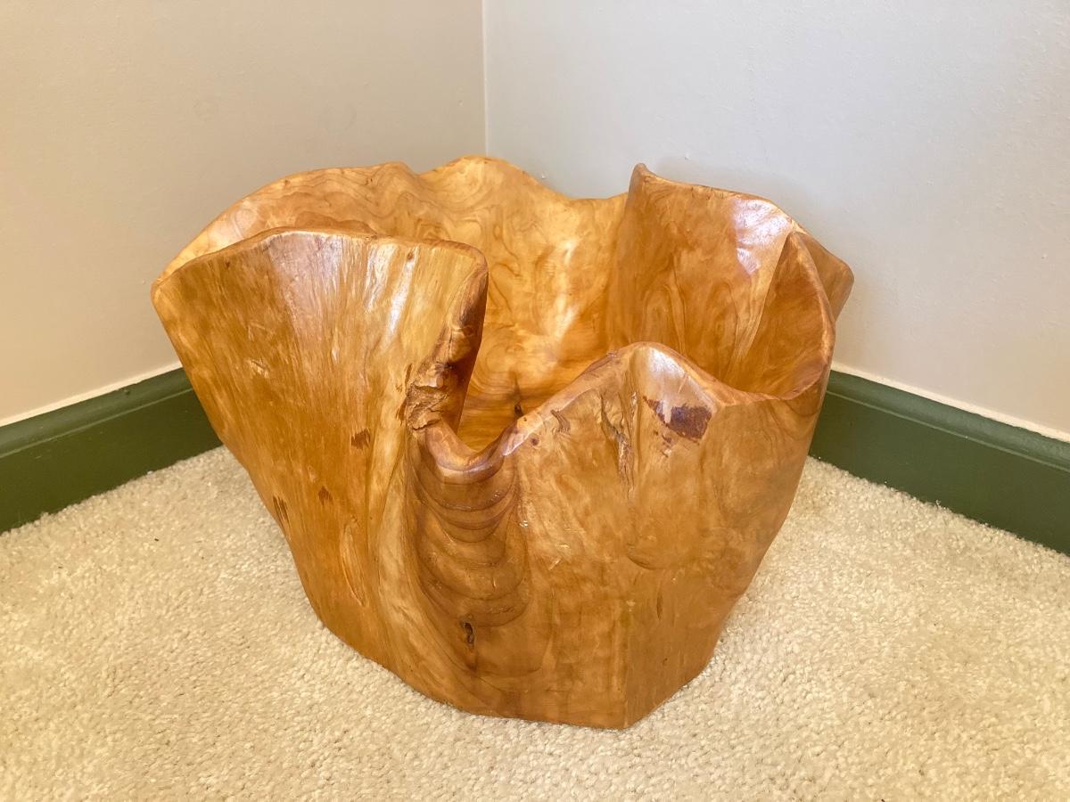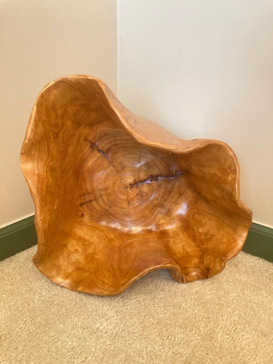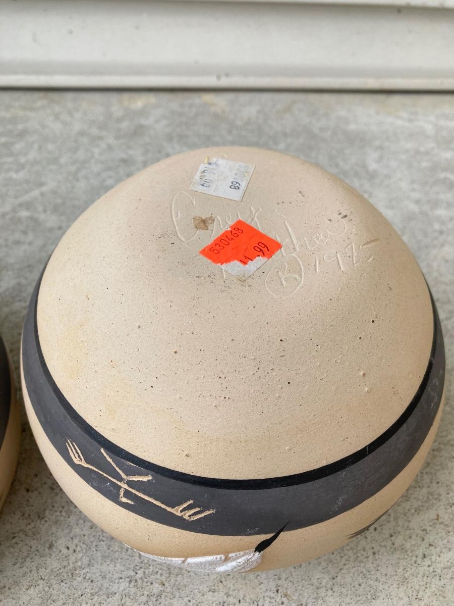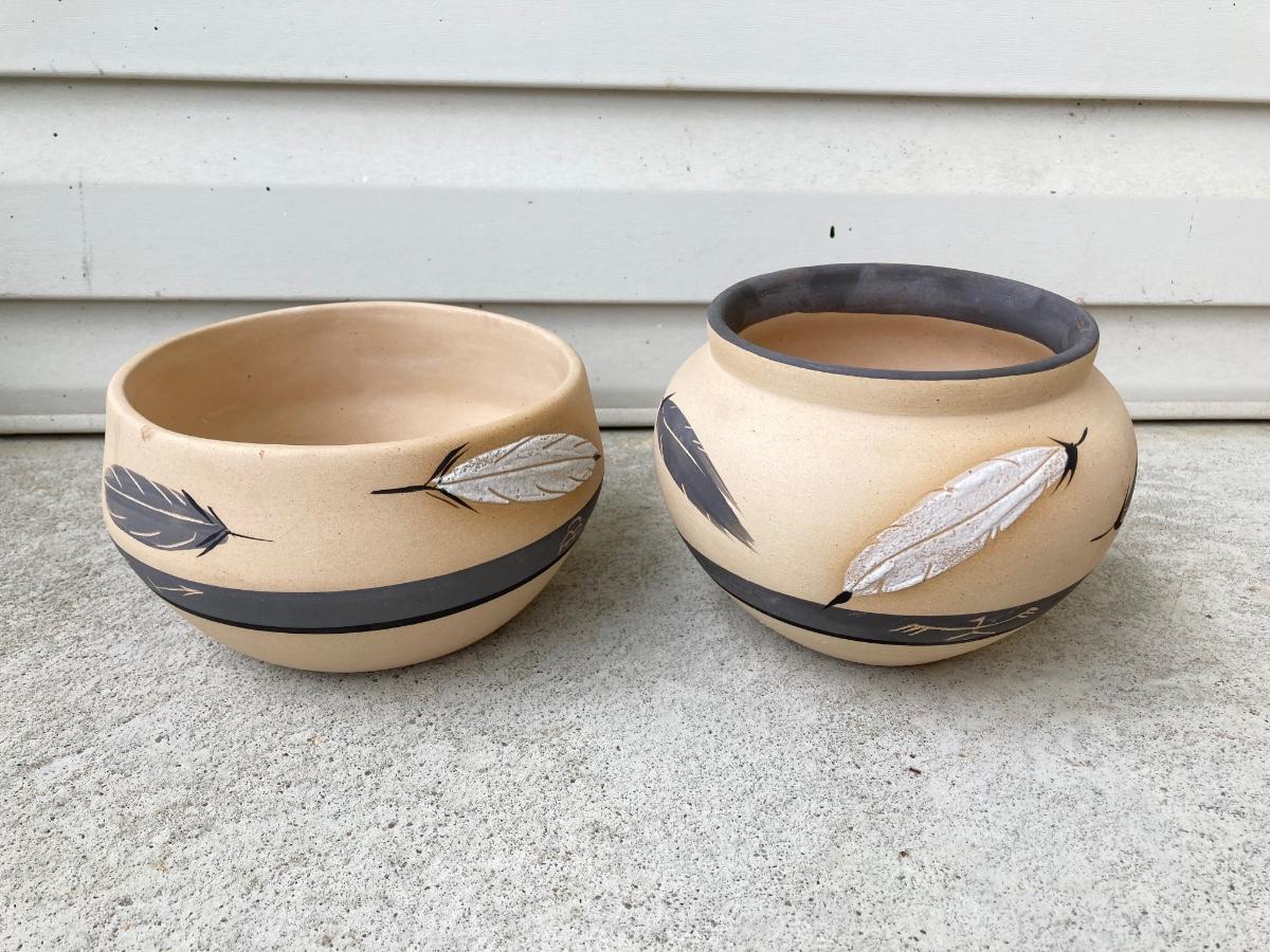 LOT 87: D'Ecco Decorative Wooden Bowl, Pair of Signed Pottery Bowls and Painted Canvas Wall Art