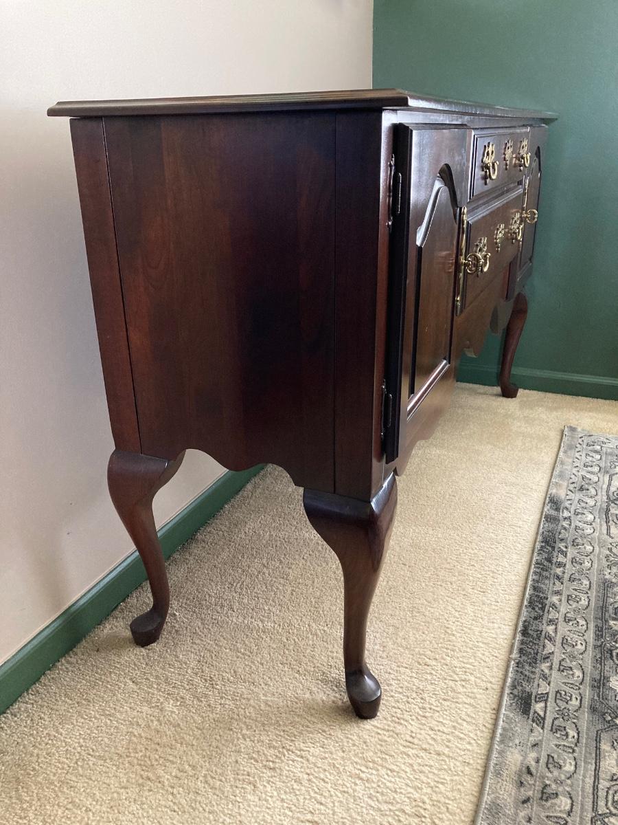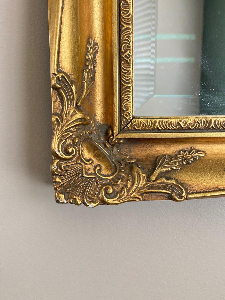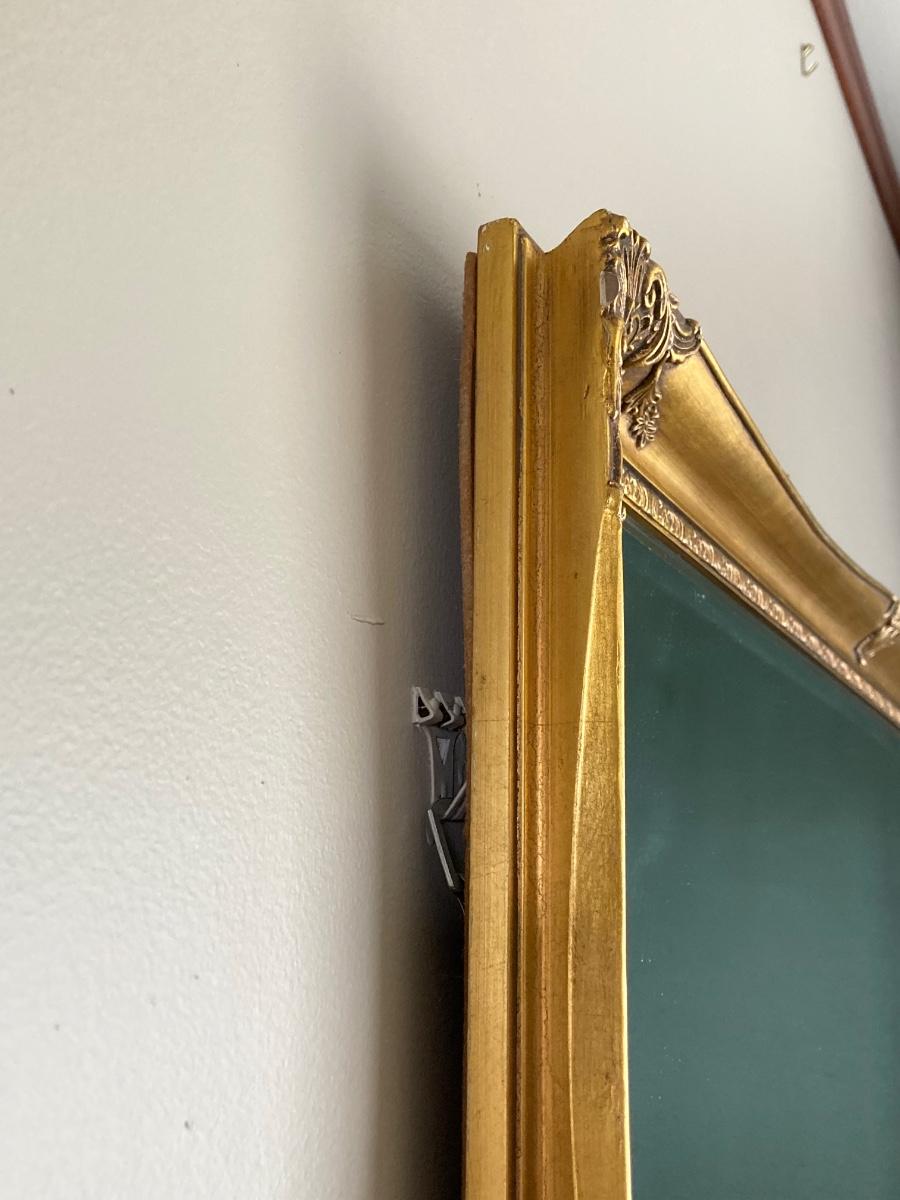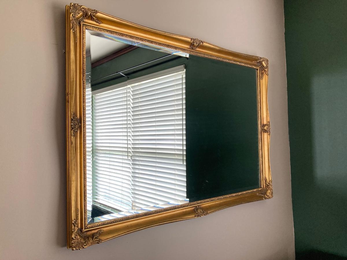 LOT 100: Wood Side / Serving Table with Decorative Gold Framed Mirror