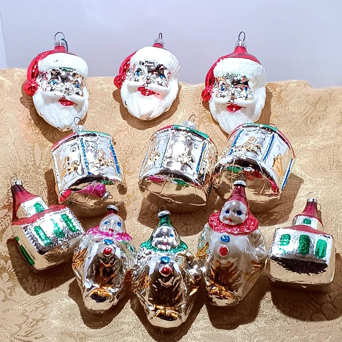 LOT 109: Vintage Mercury Glass Molded & Hand Blown Ornaments