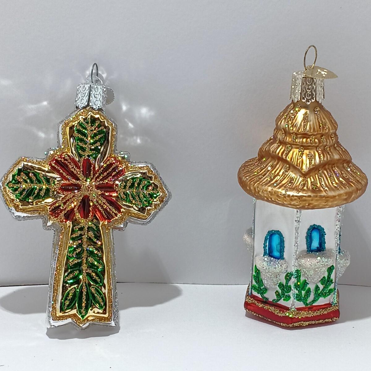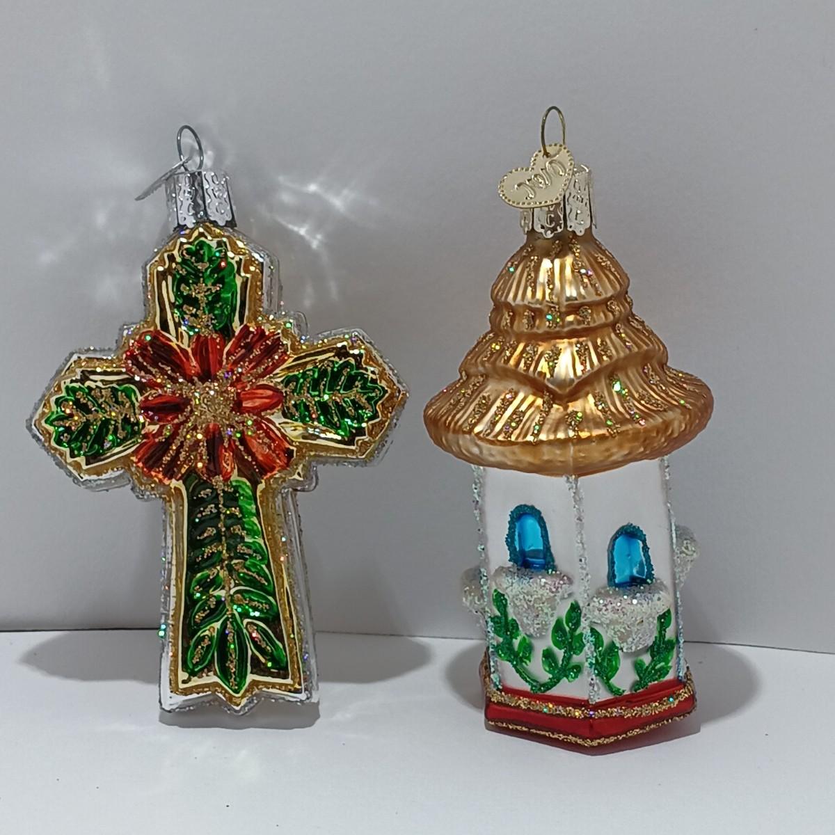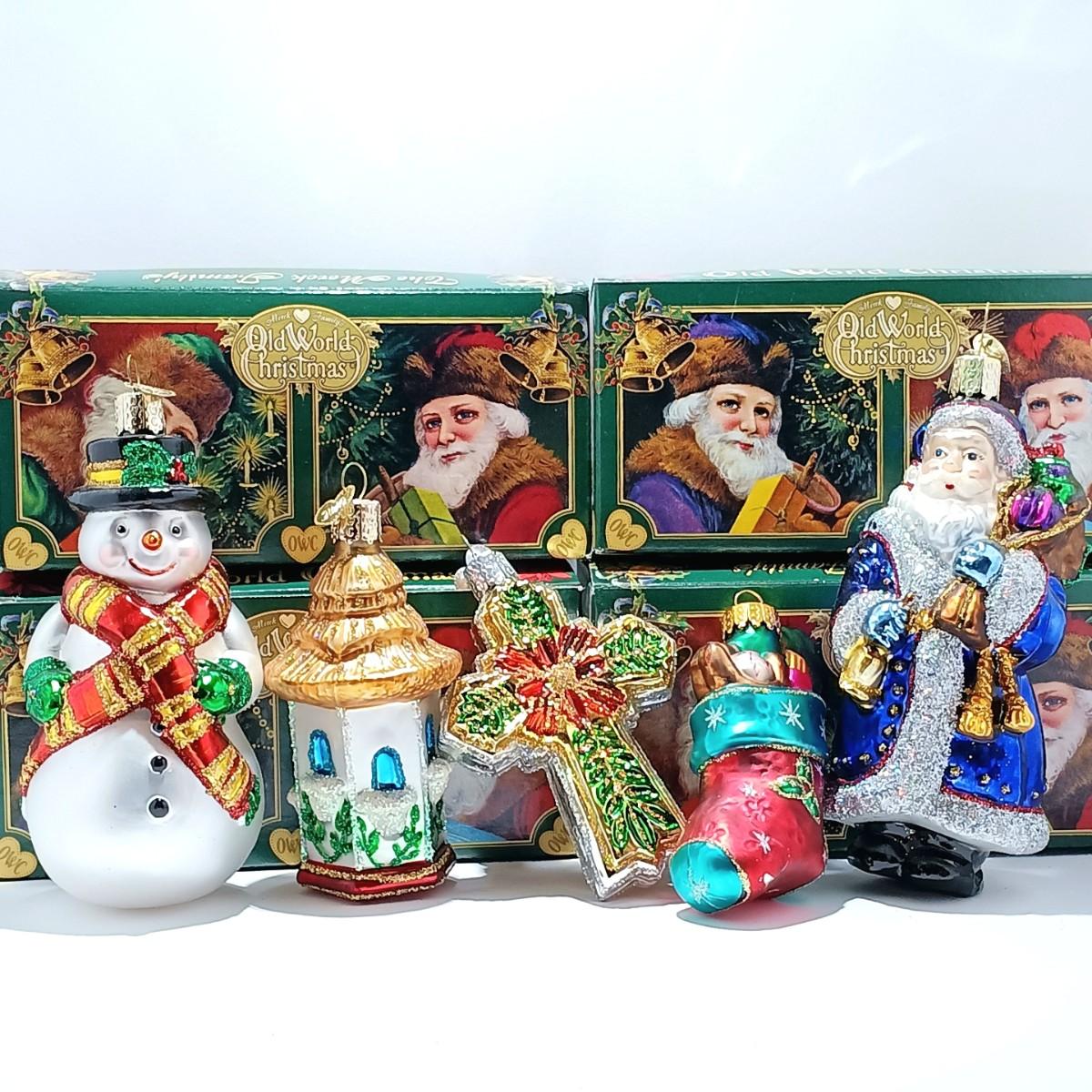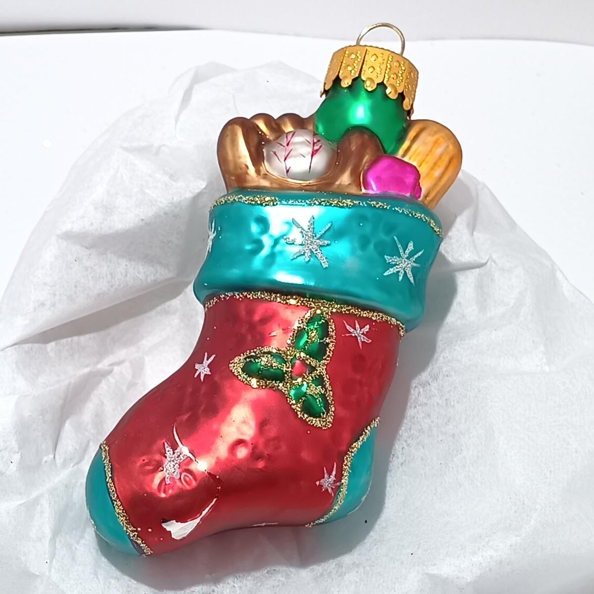 LOT 111: Four Old World Christmas Ornaments w/ Vintage Yule Rite Aid Stocking Ornament