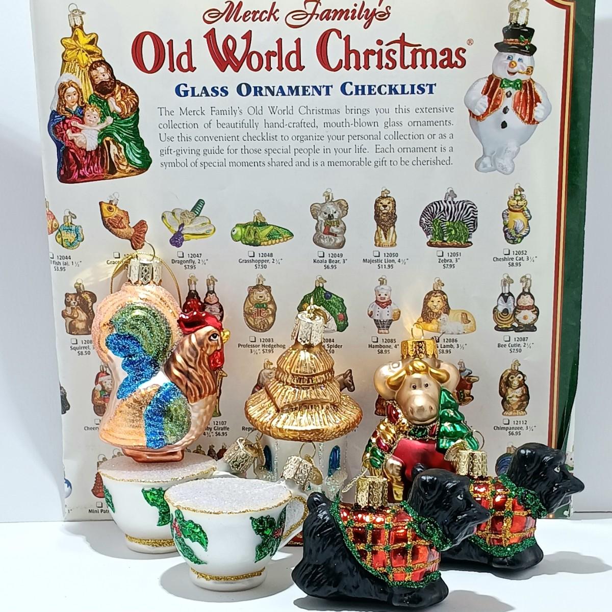 LOT 117: Six Old World Christmas Ornaments w/ Checklist & One Other Ornament