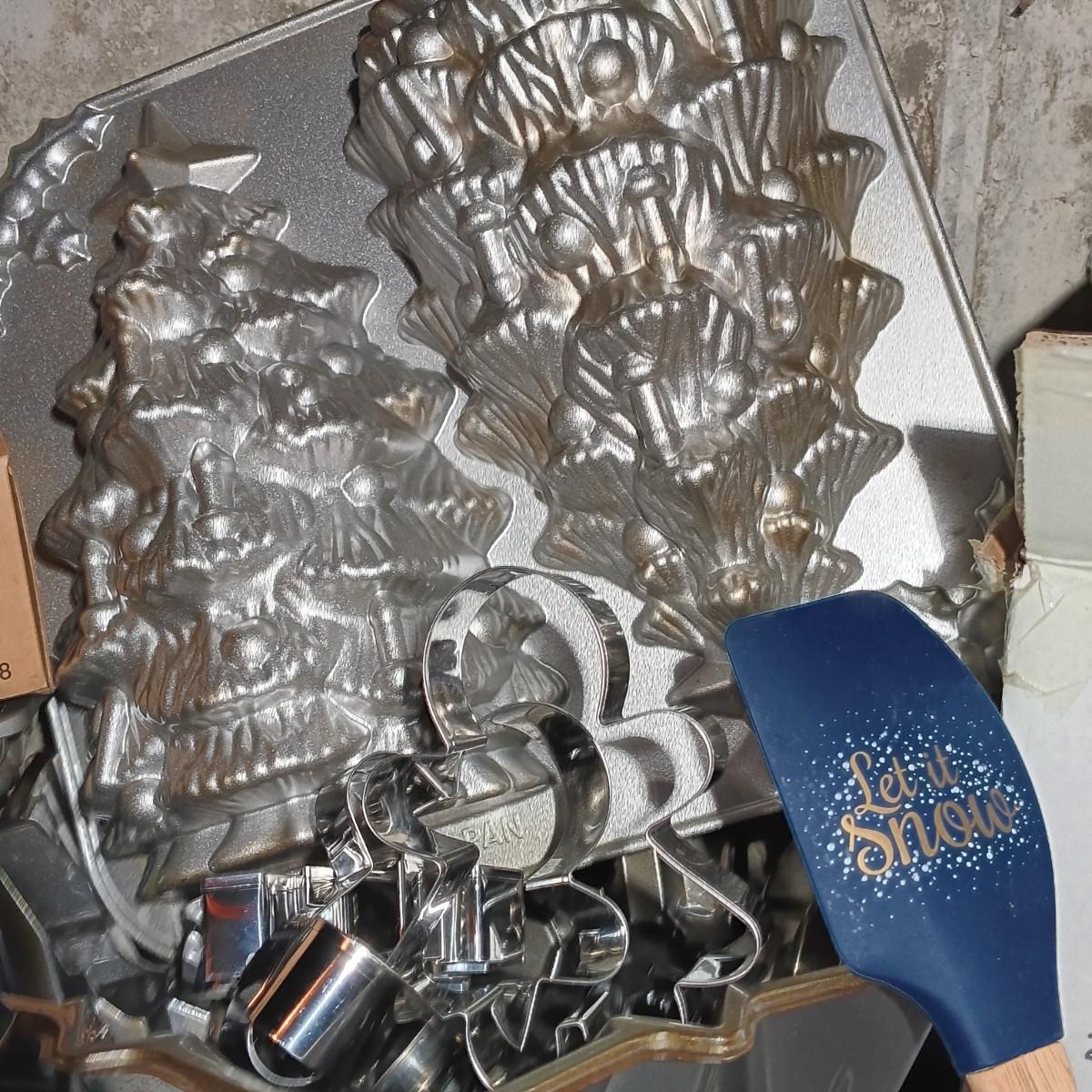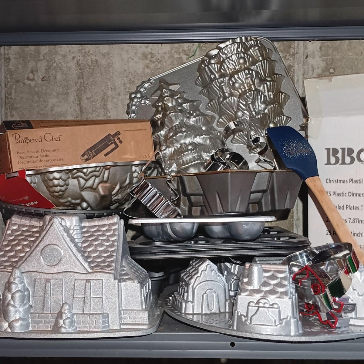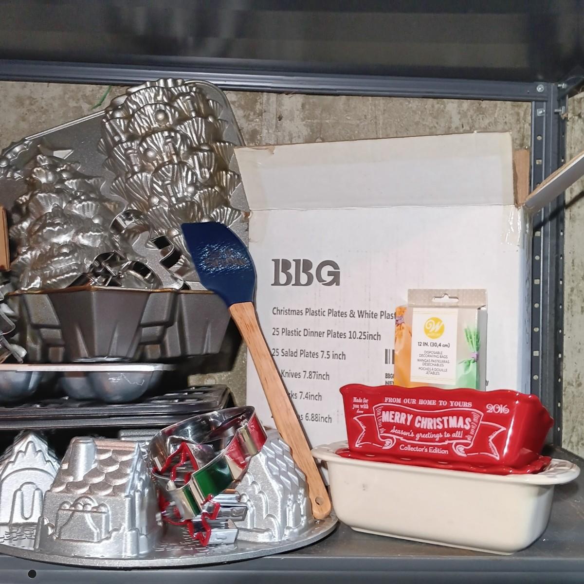 LOT 129: Large Assortment of Christmas Themed Metal Baking Molds & Baking Supplies