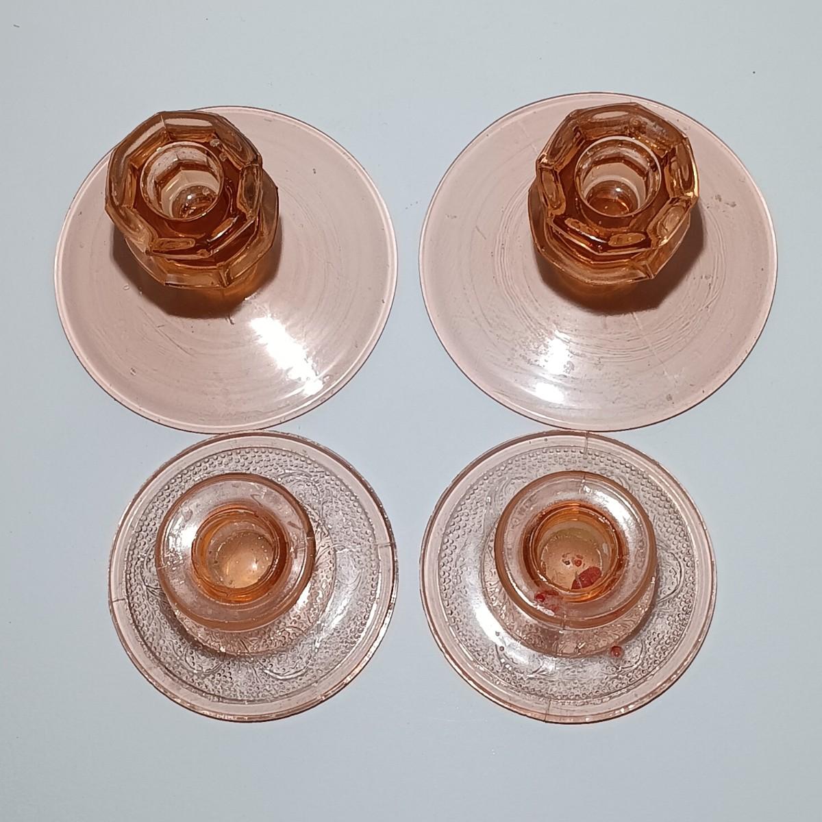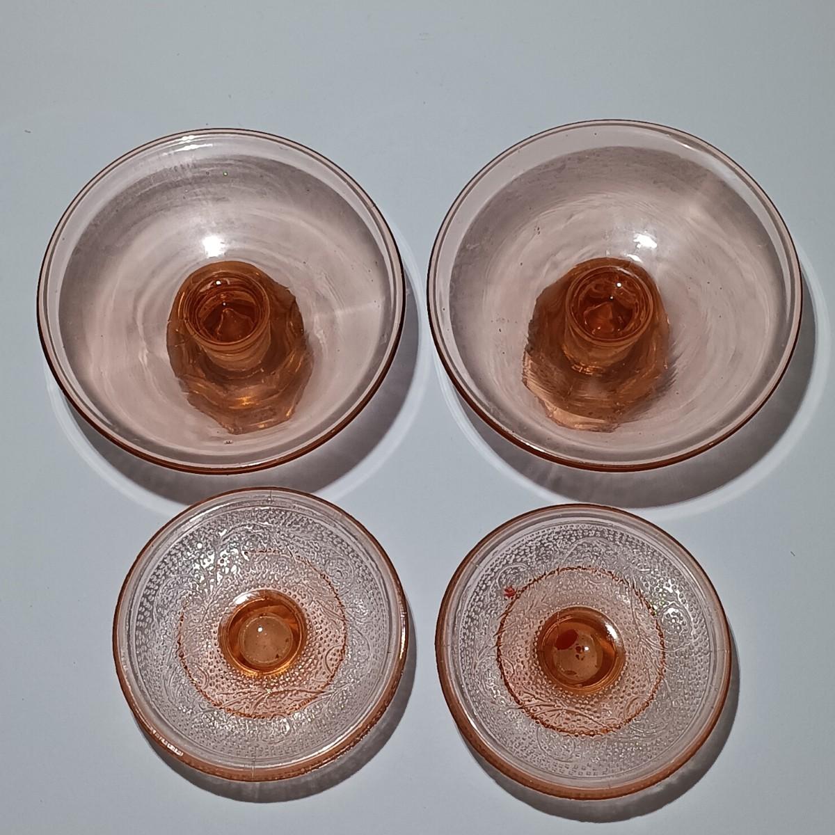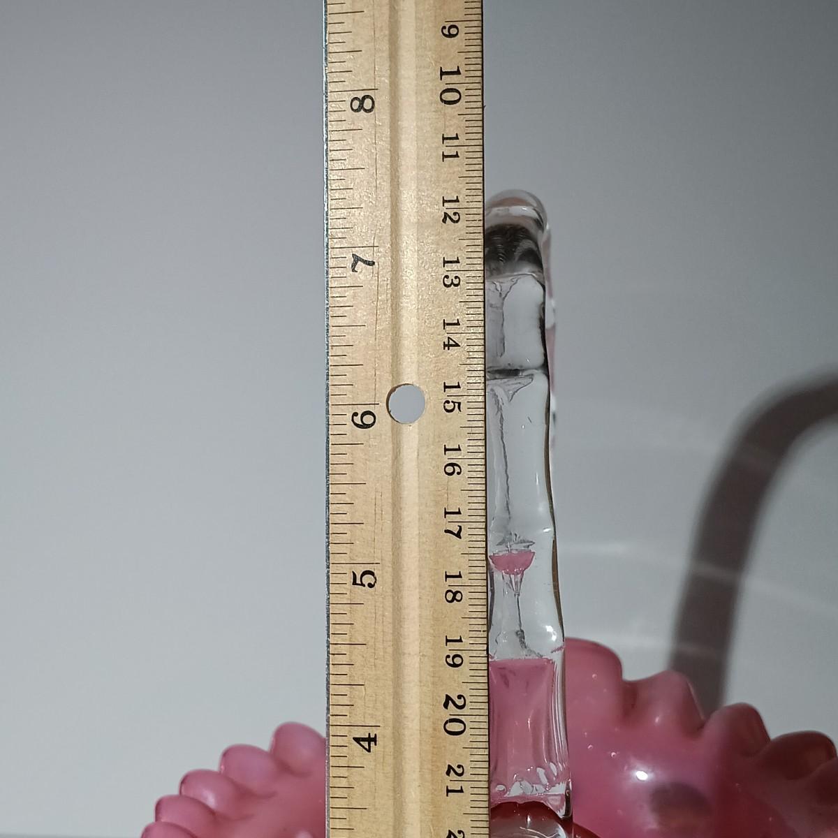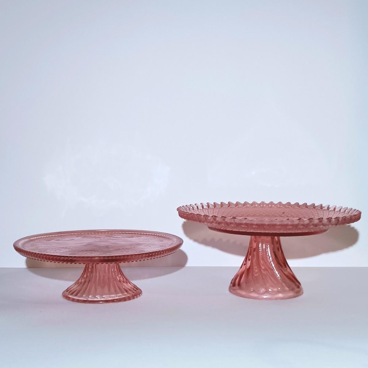 LOT 131: Vintage Cranberry Glass Coin Dot Basket w/ Pink Glass Cake Stands & Candlestick Holders