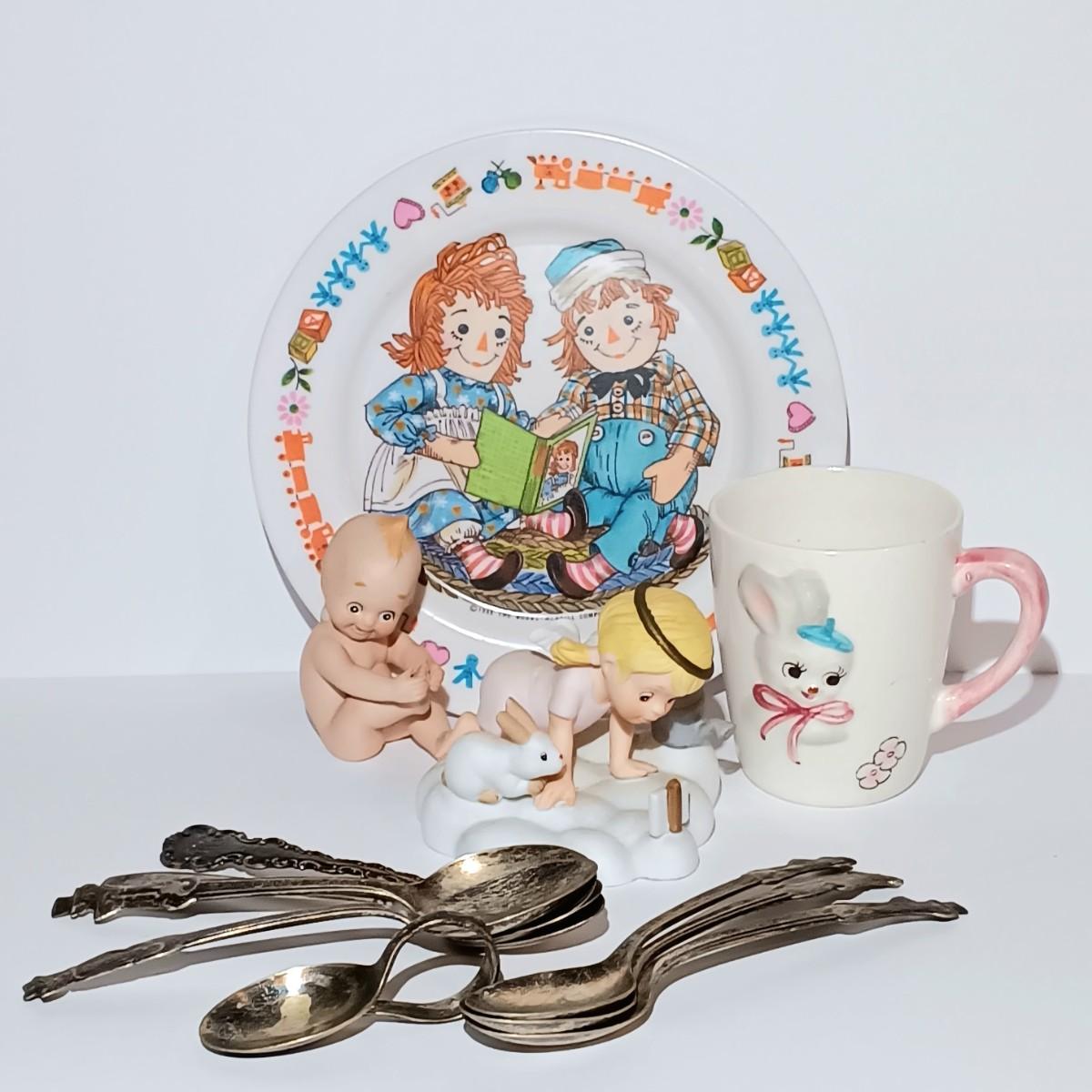 LOT 132: Vintage Huckleberry Hound and Yogi Bear Silver Plated Spoons w/ Kewpie Baby Figurine, Franklin Mint Figurine & More