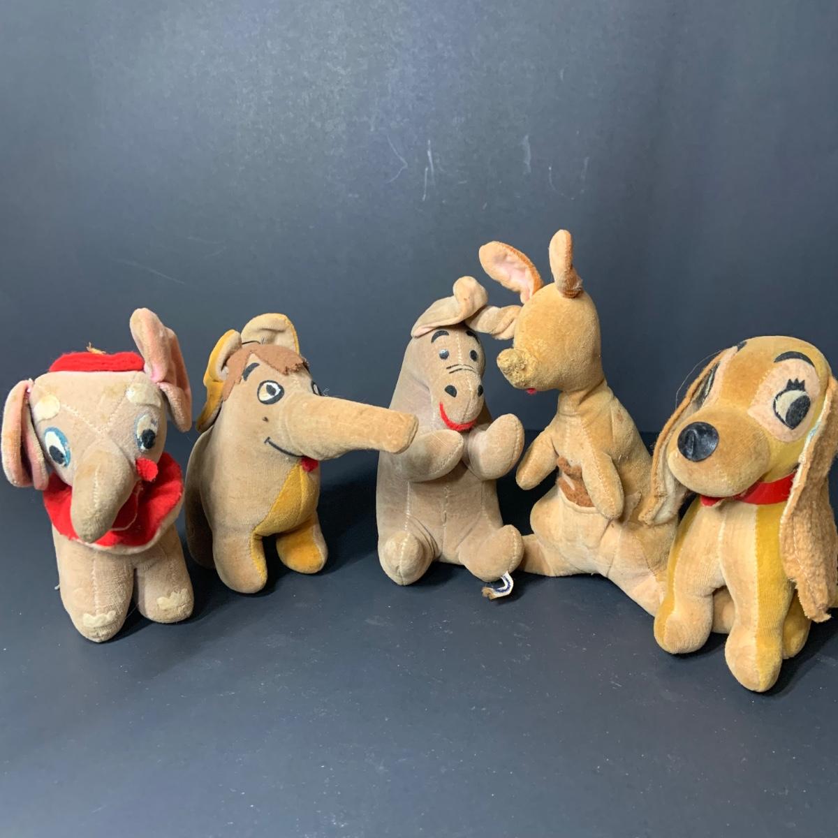 LOT:: Vintage 1966 Disney Plushes Lady, Dumbo, Kanga, Eeyore, Dumbo and More
