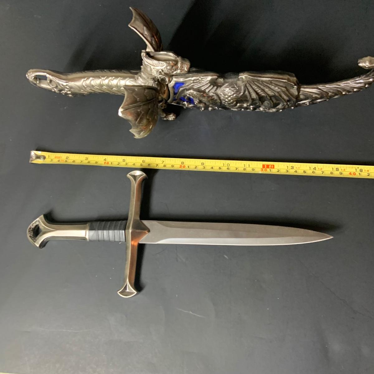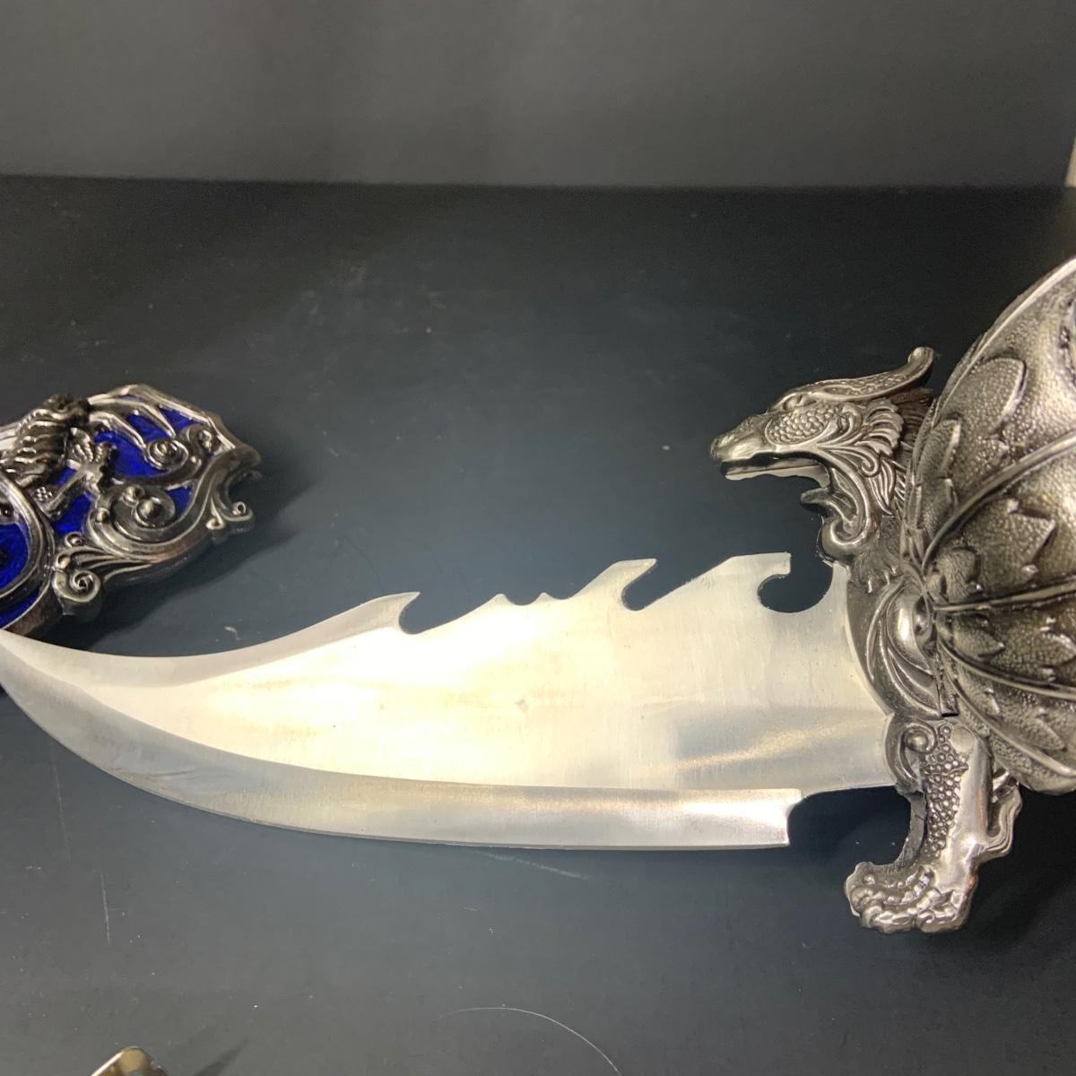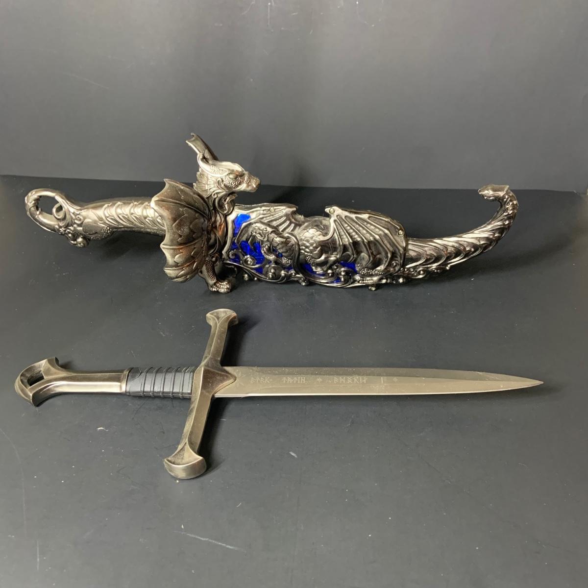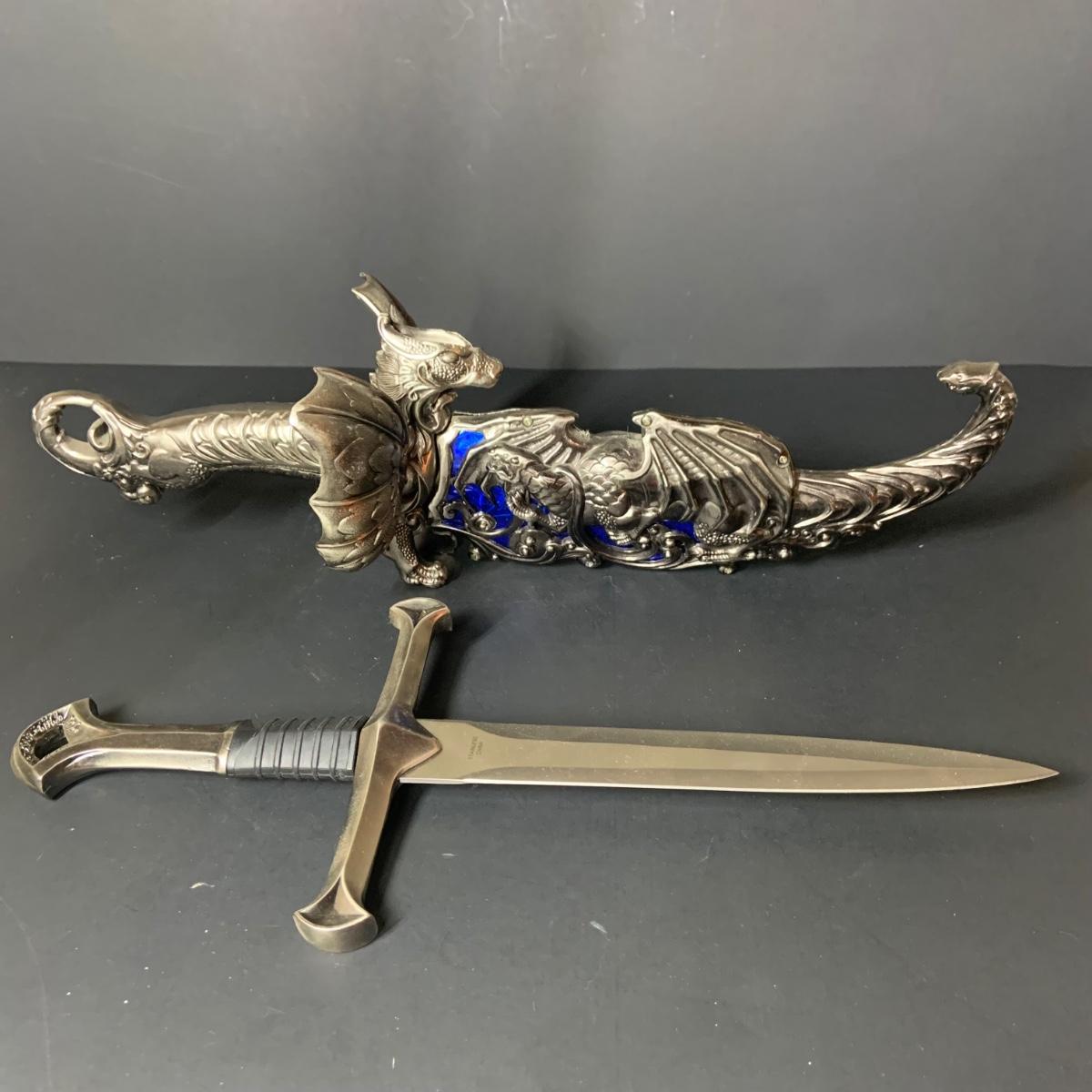 LOT:143: Ornate Dragon Handled Knife/Blade with Sheath and Medieval Style Dagger