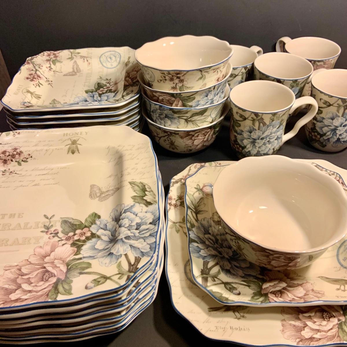 LOT:156: 222 Fifth Aubais Spring Dinner Service for 8 - 32 Pieces in All - Dinner Plates - Salad Plates, Soup Bowls and Mugs