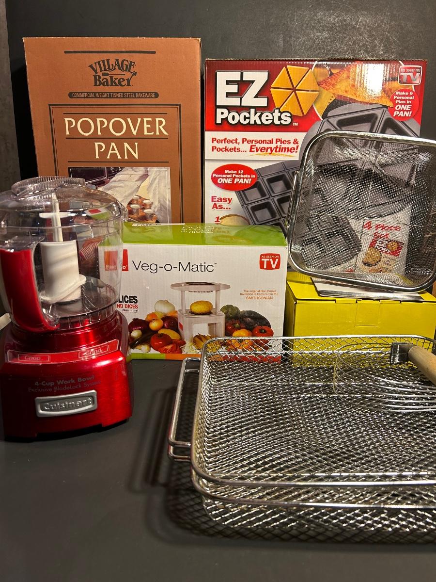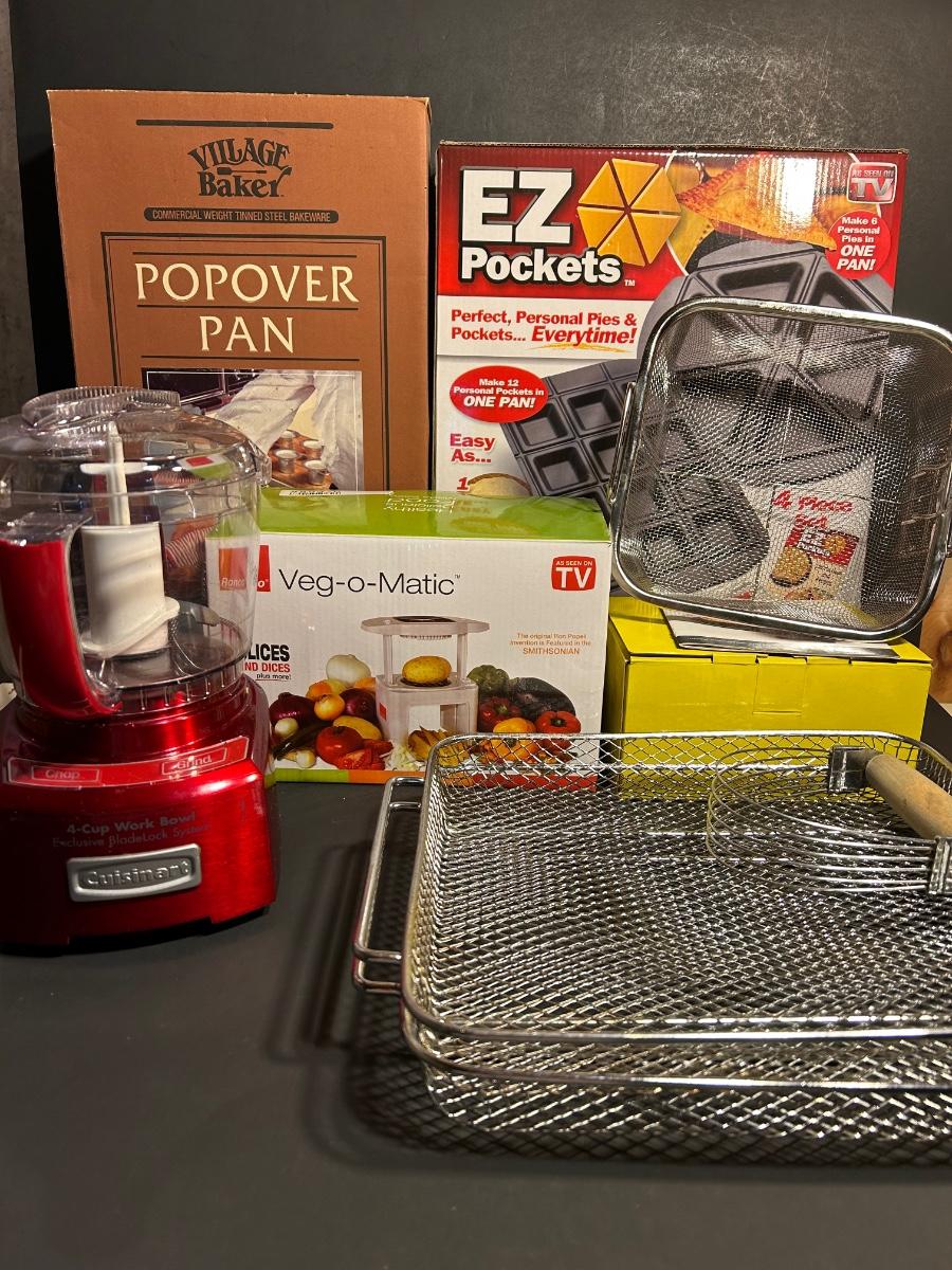 LOT 240/40: Kitchen Gadgets- Popover Pan, EZ Pockets, Veg-O-Matic & More