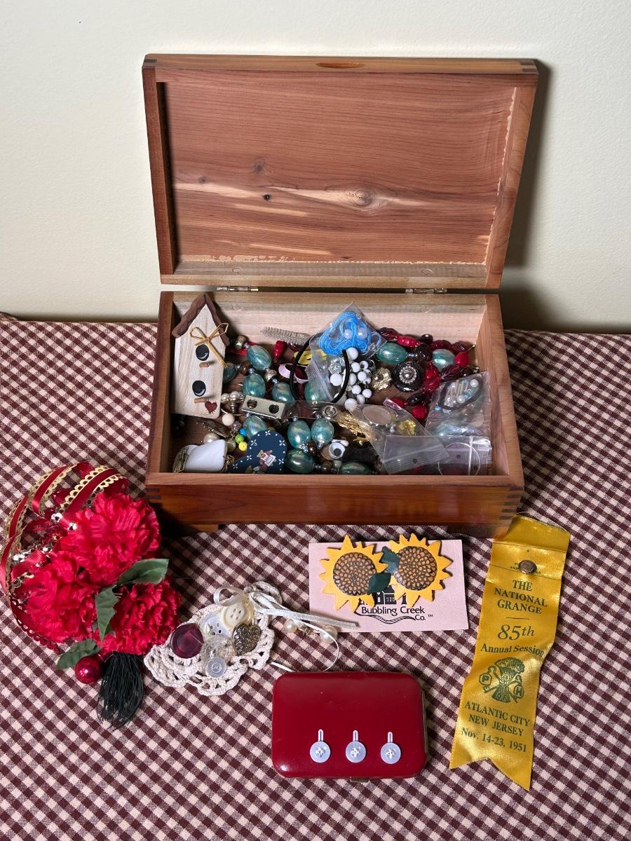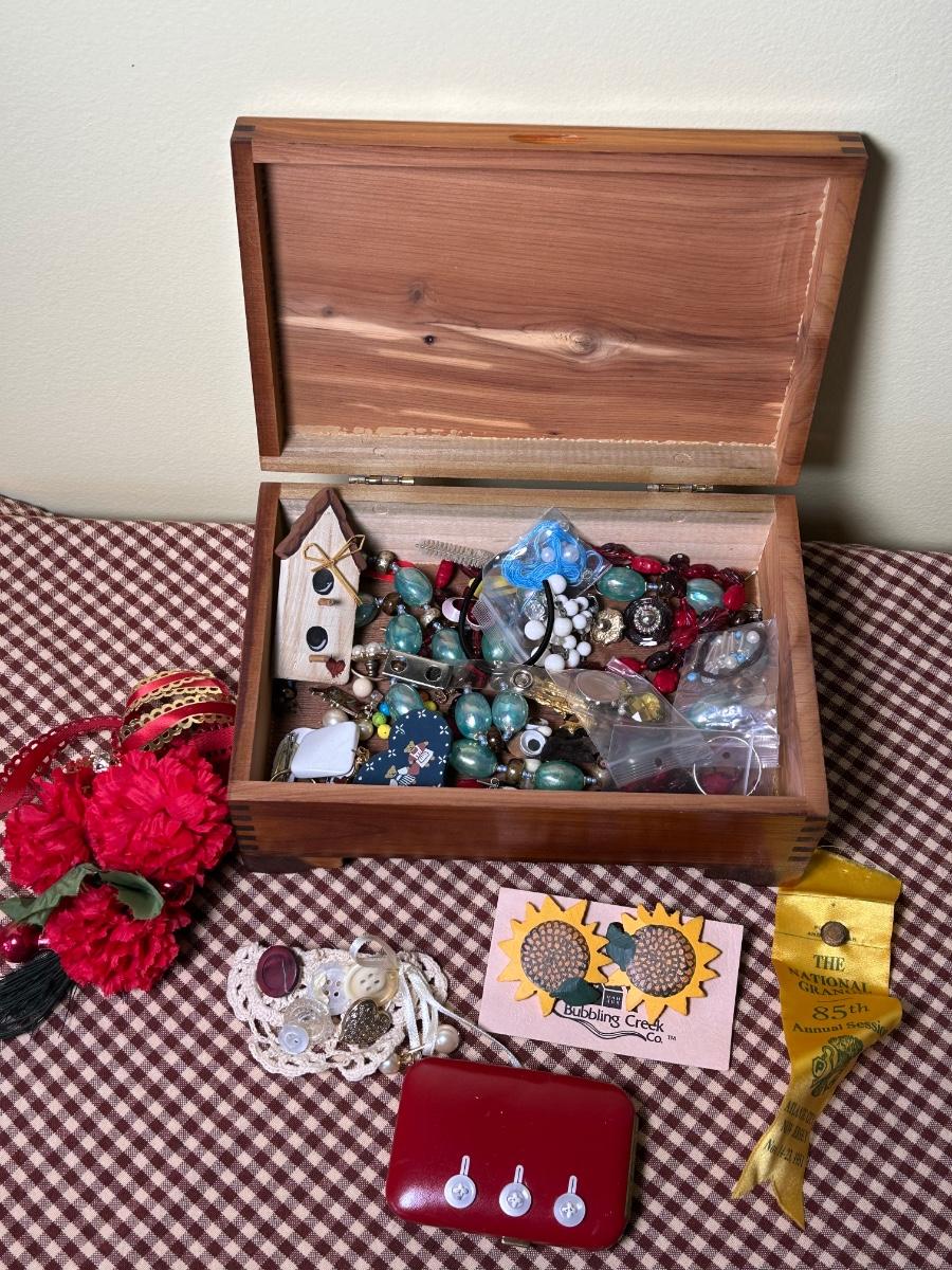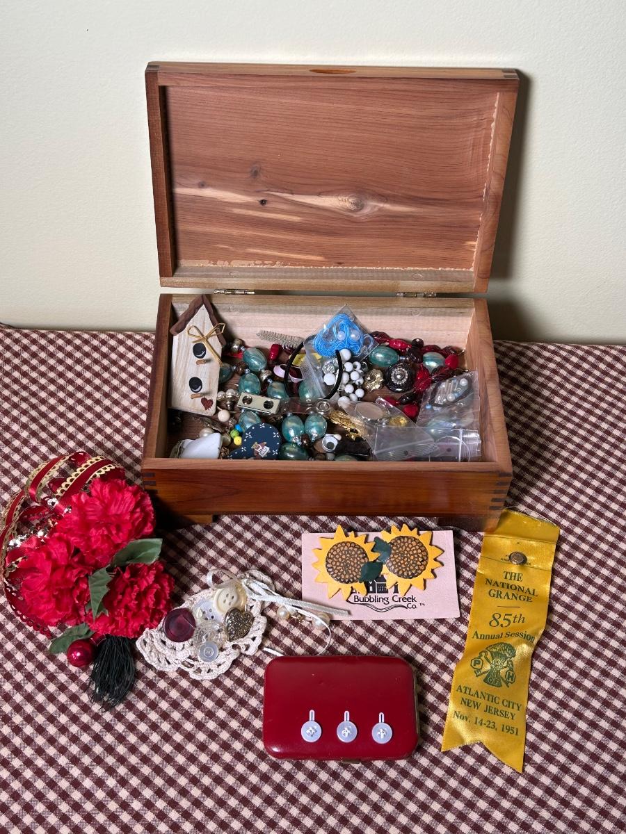 LOT 8: Vintage Box Filled With Craft Pieces, Unique Odds & Ends