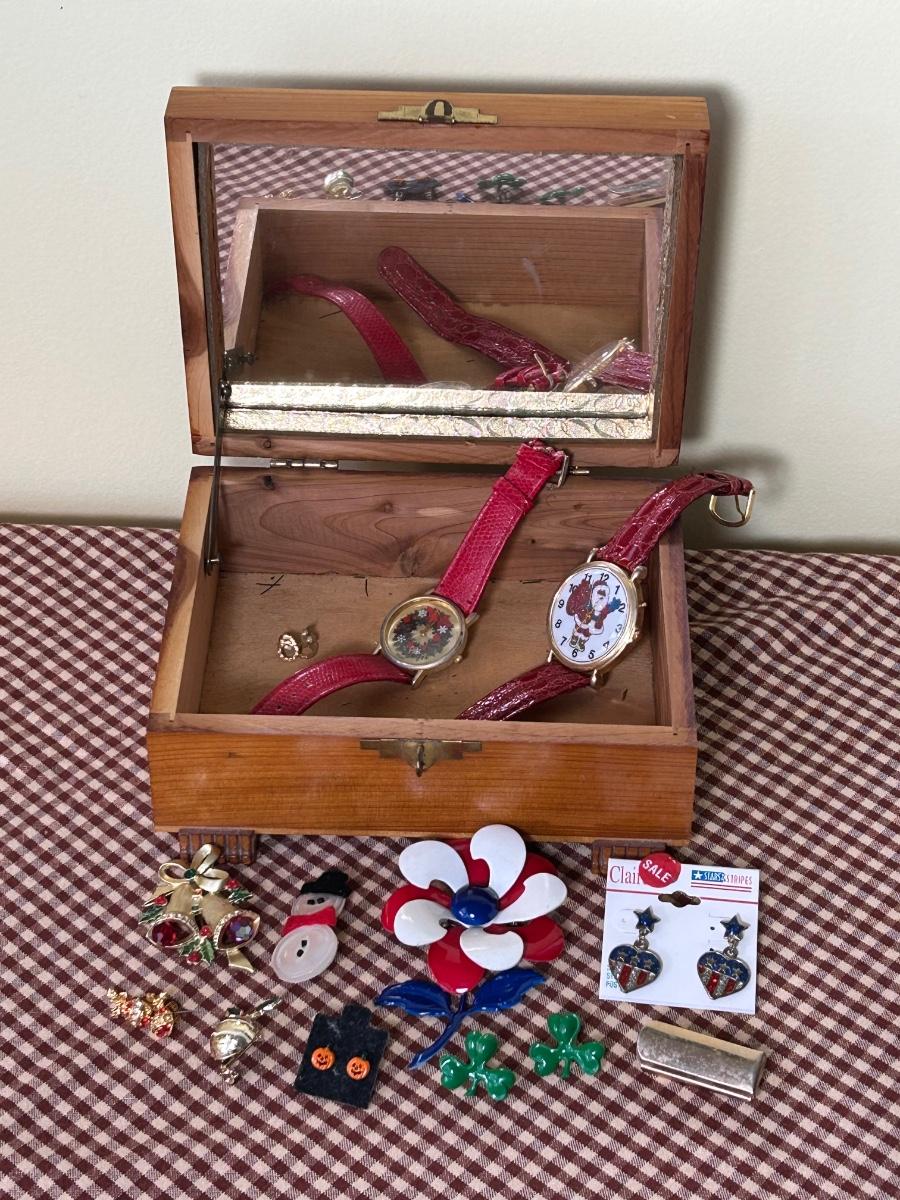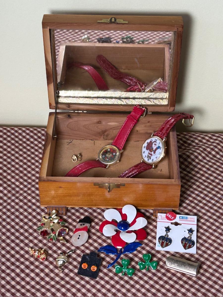 LOT 11: Jewelry Box & Holiday Jewelry - Christmas, 4th Of July, St.Pattys Day & Halloween
