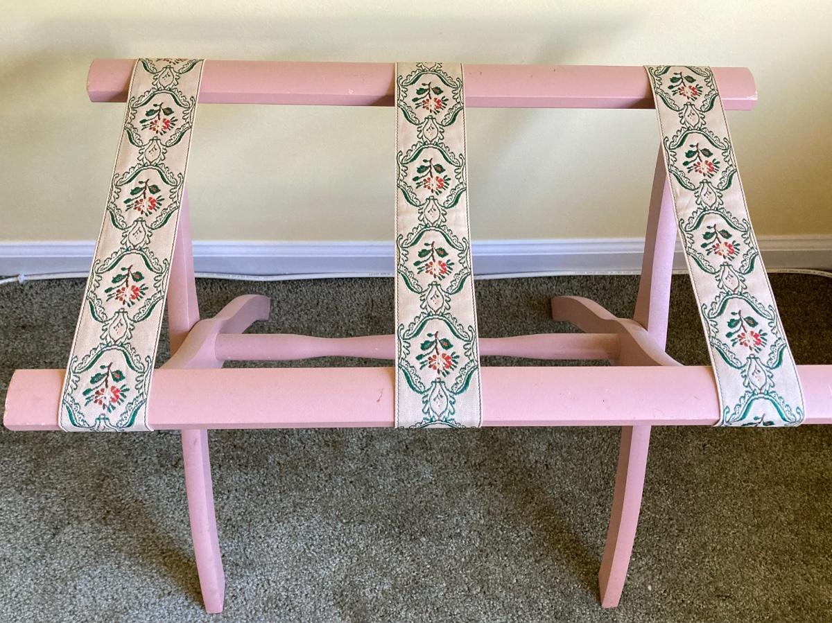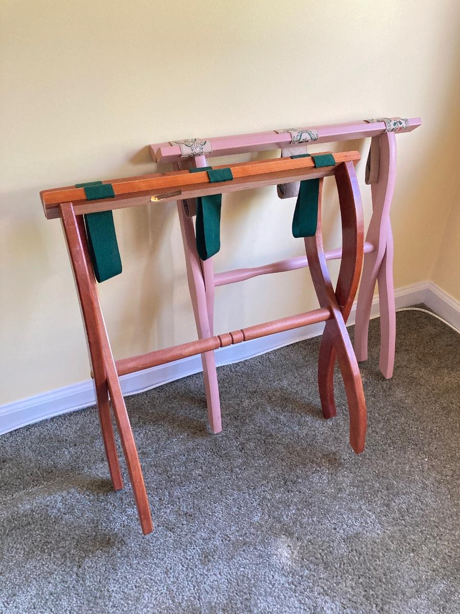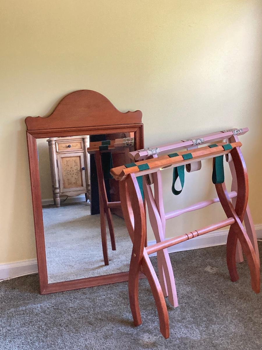 LOT 39: Vintage Wood Framed Mirror and Two Wooden Luggage Stands