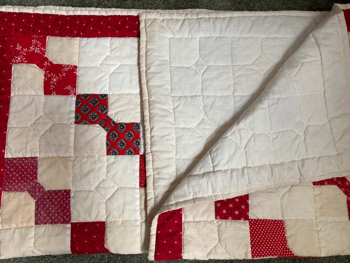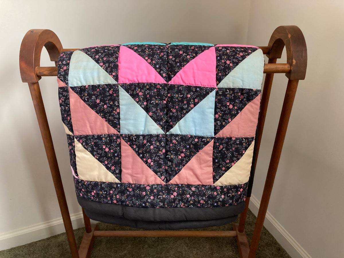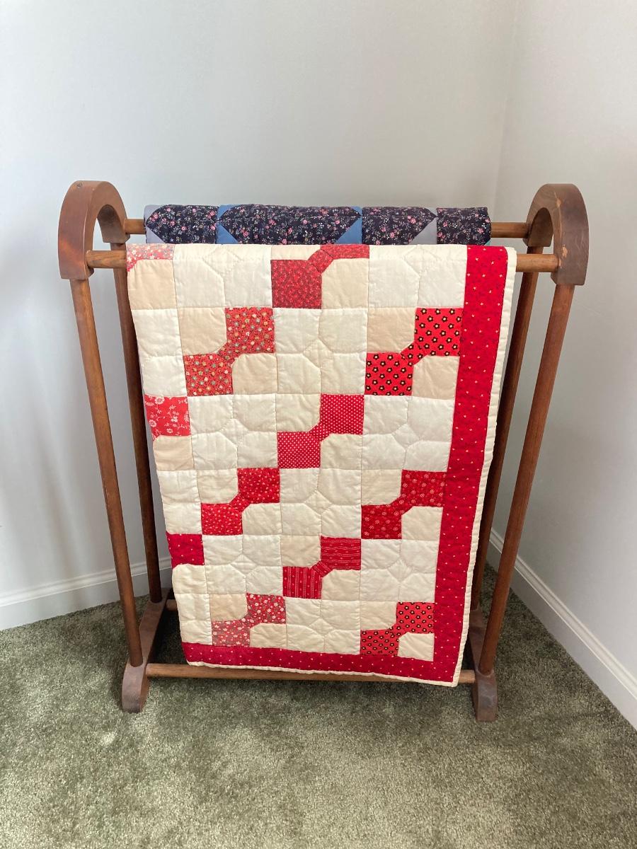 LOT 50: Vintage Wooden Quilt Rack and Two Handcrafted Quilts