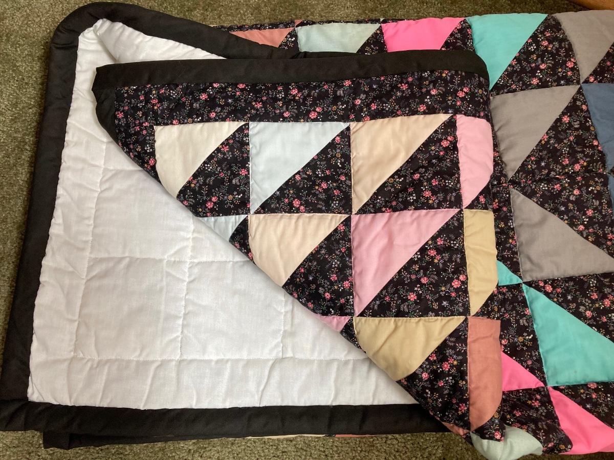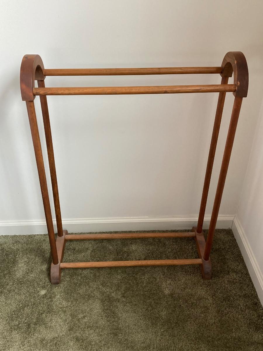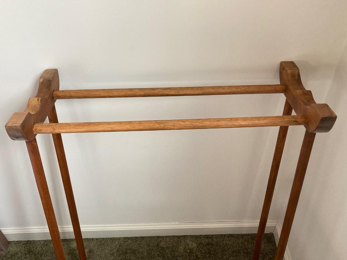 LOT 50: Vintage Wooden Quilt Rack and Two Handcrafted Quilts