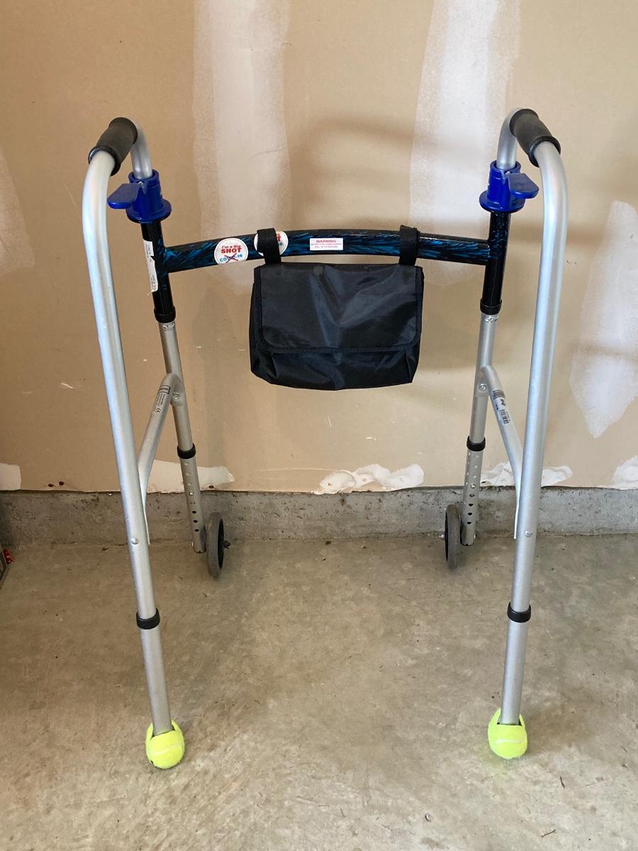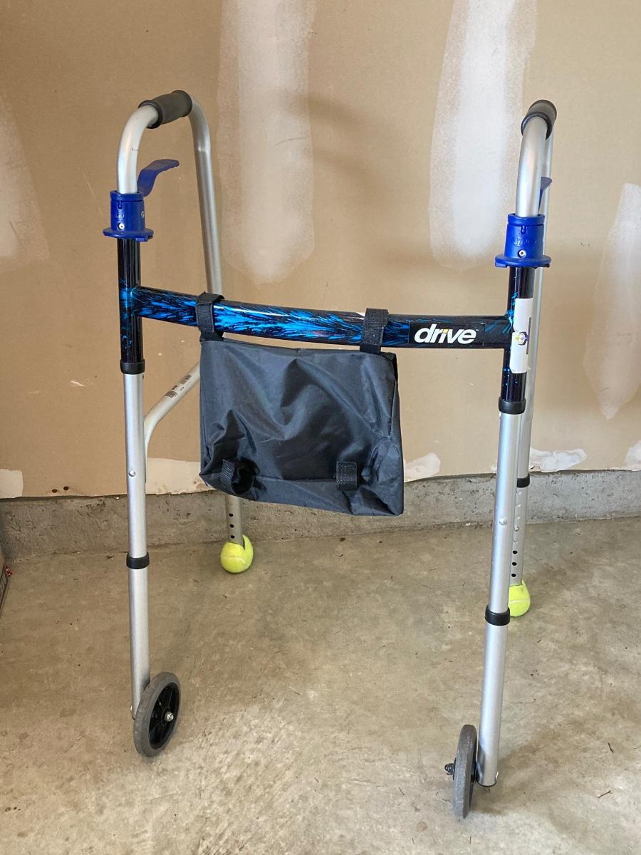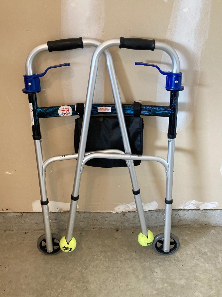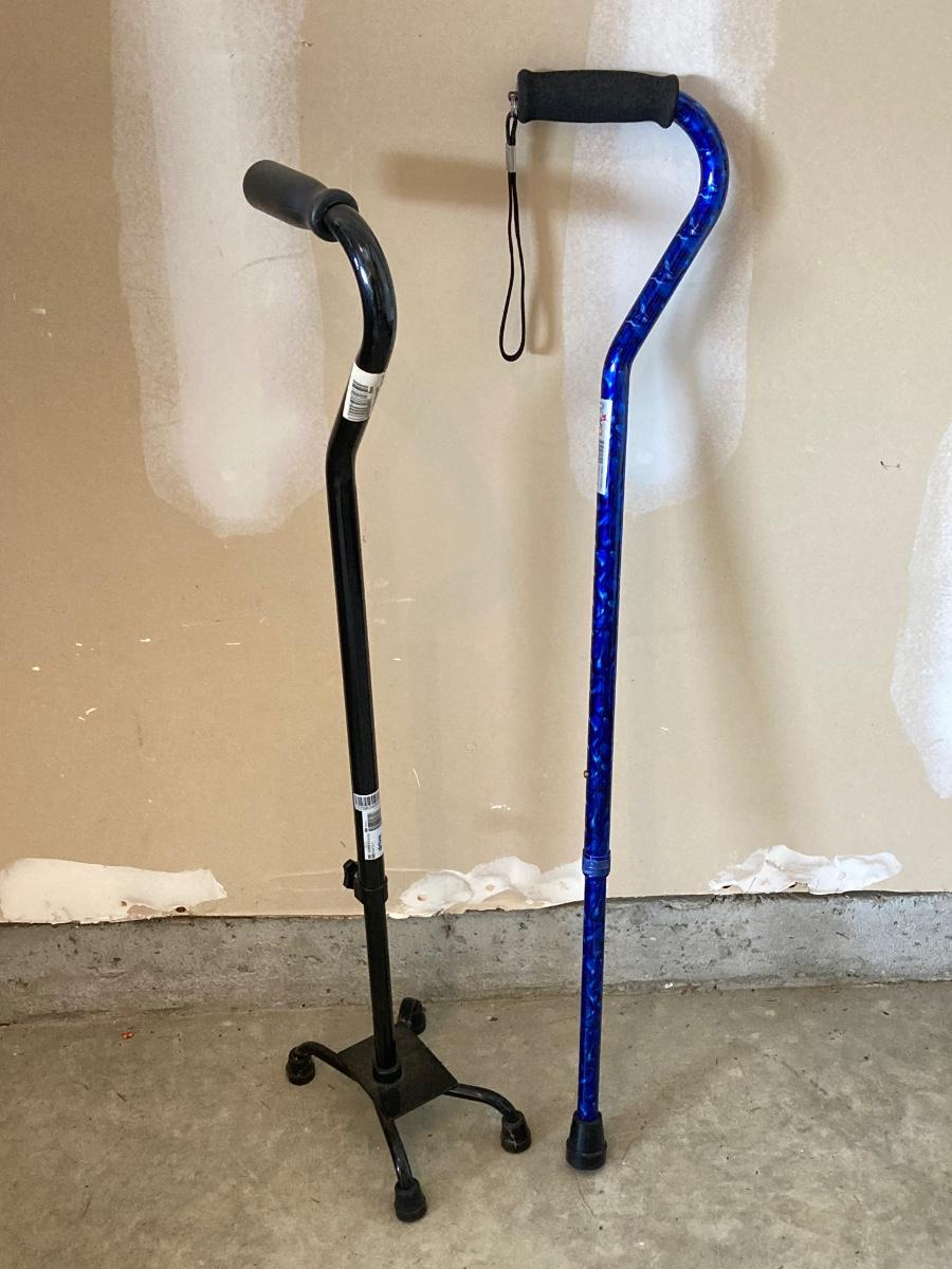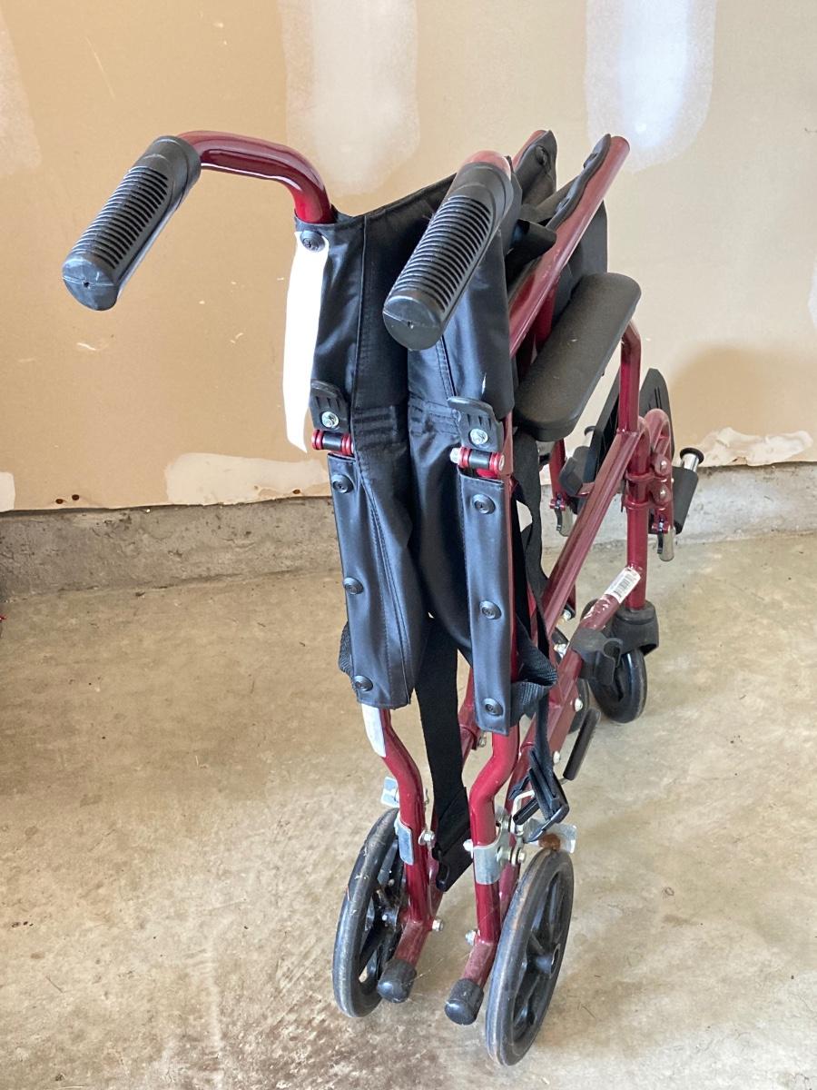 LOT 90: Folding Drive Walker, Transporter, Cup Holder and Two Canes