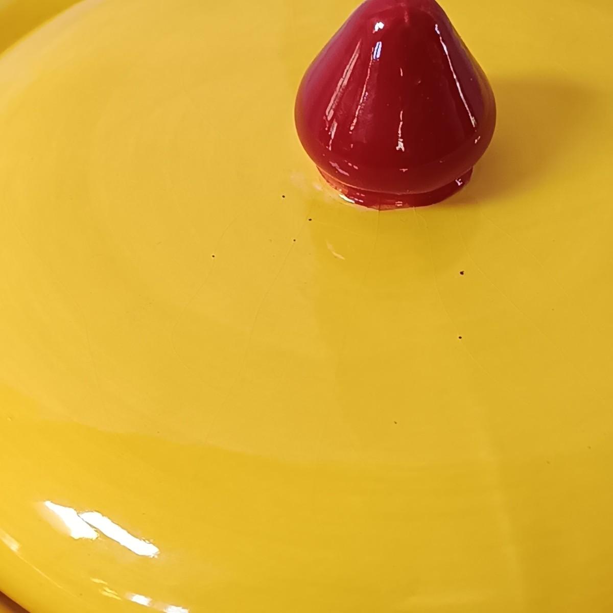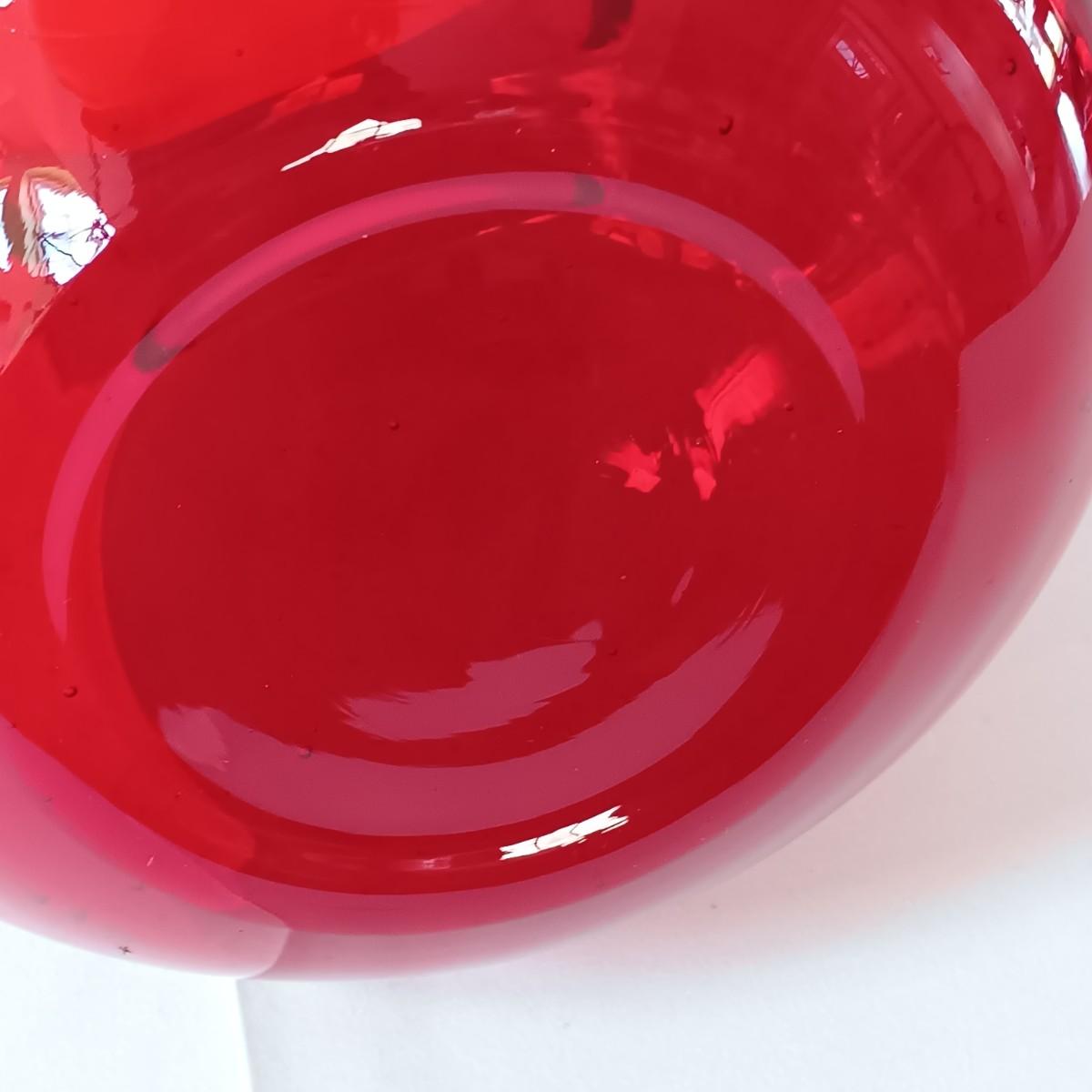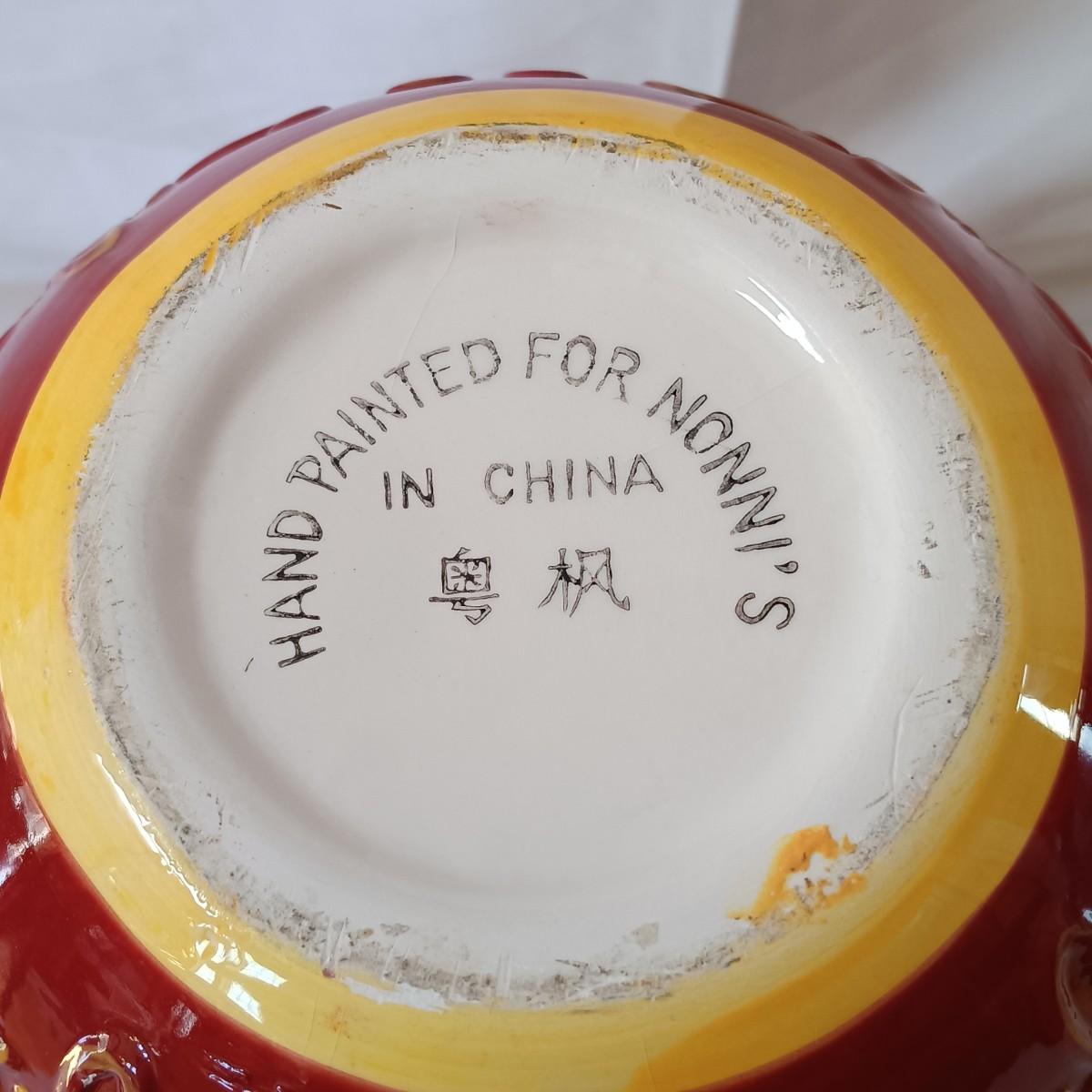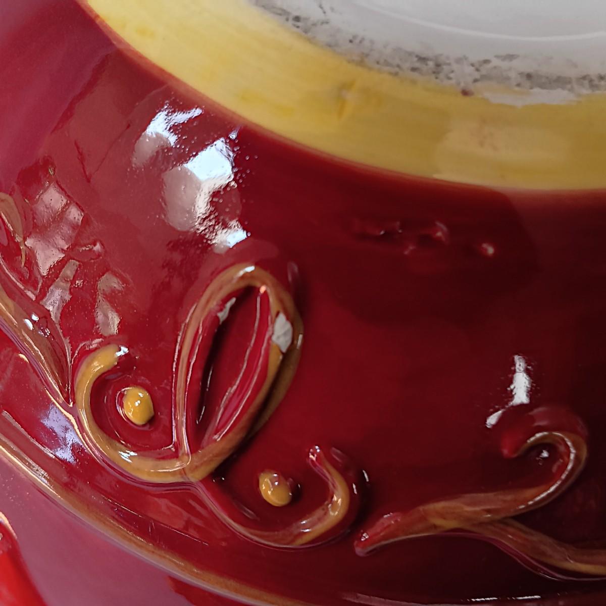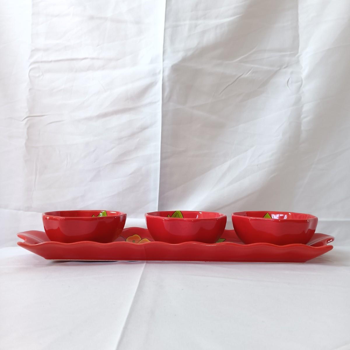 LOT 128: Nonnis Handpainted Pitcher w/ Temp-Tations Poppy Passion Serving Set, Crackle Glass Pear Fruit Fly Trap & Ruby Glass Pitcher