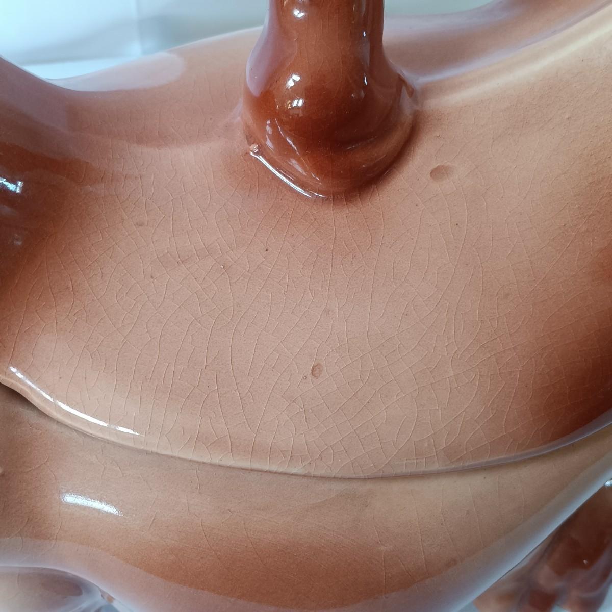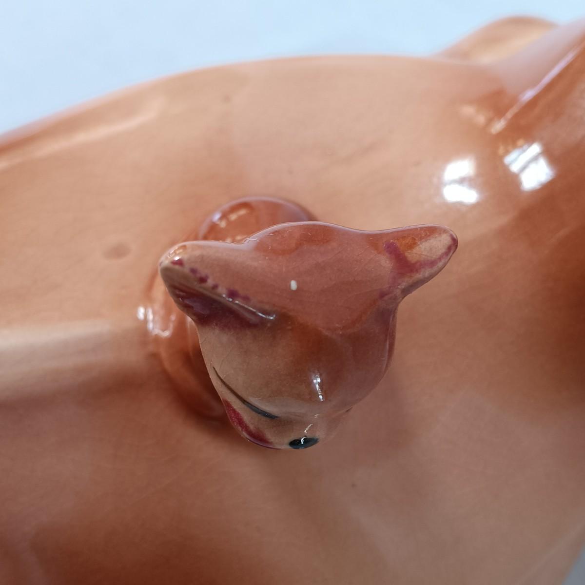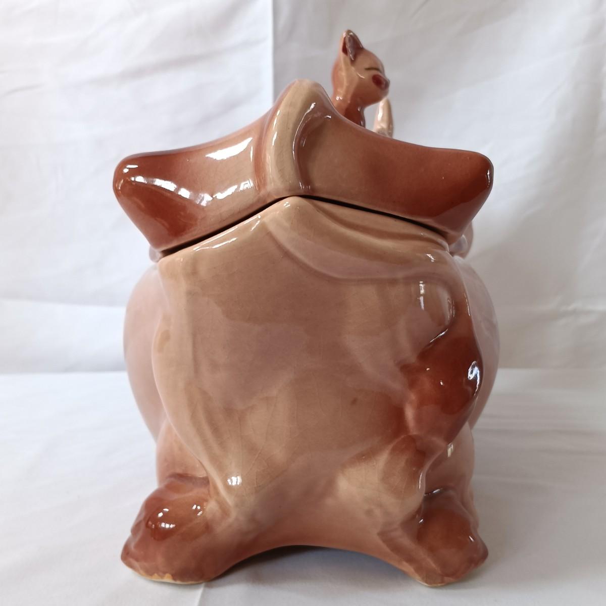 LOT 129: Vintage Brush McCoy Brown Cow with Winking Cat Cookie Jar