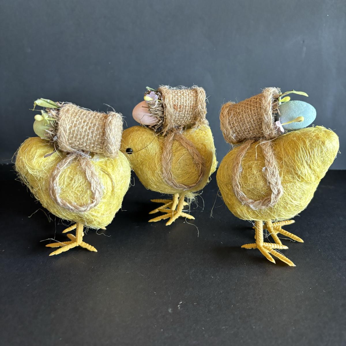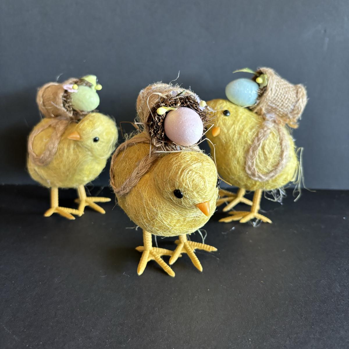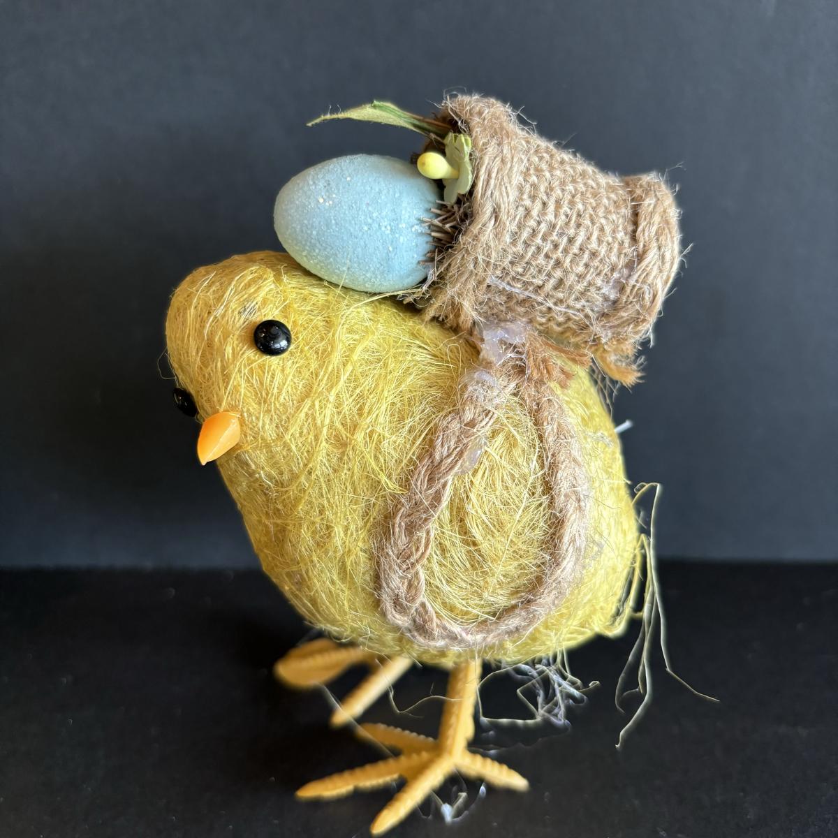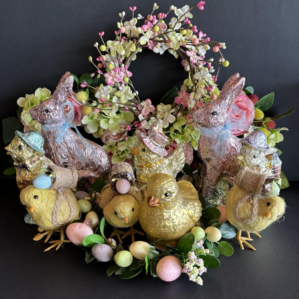 LOT 147: Spring Holiday/Easter Decor: Wreath, Sisal Straw Easter Chicks, Frosted Glass Chick along w/Foil Rabbits & Chicks