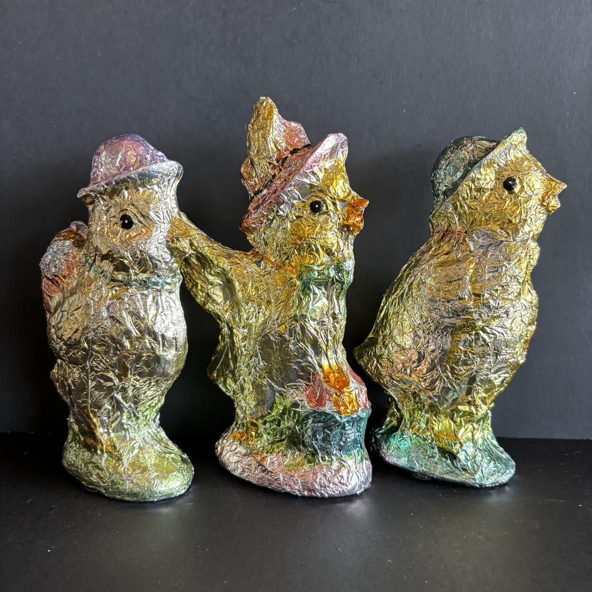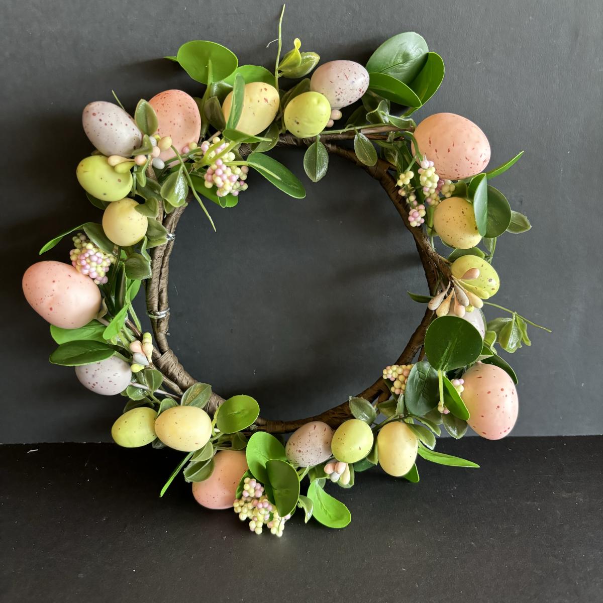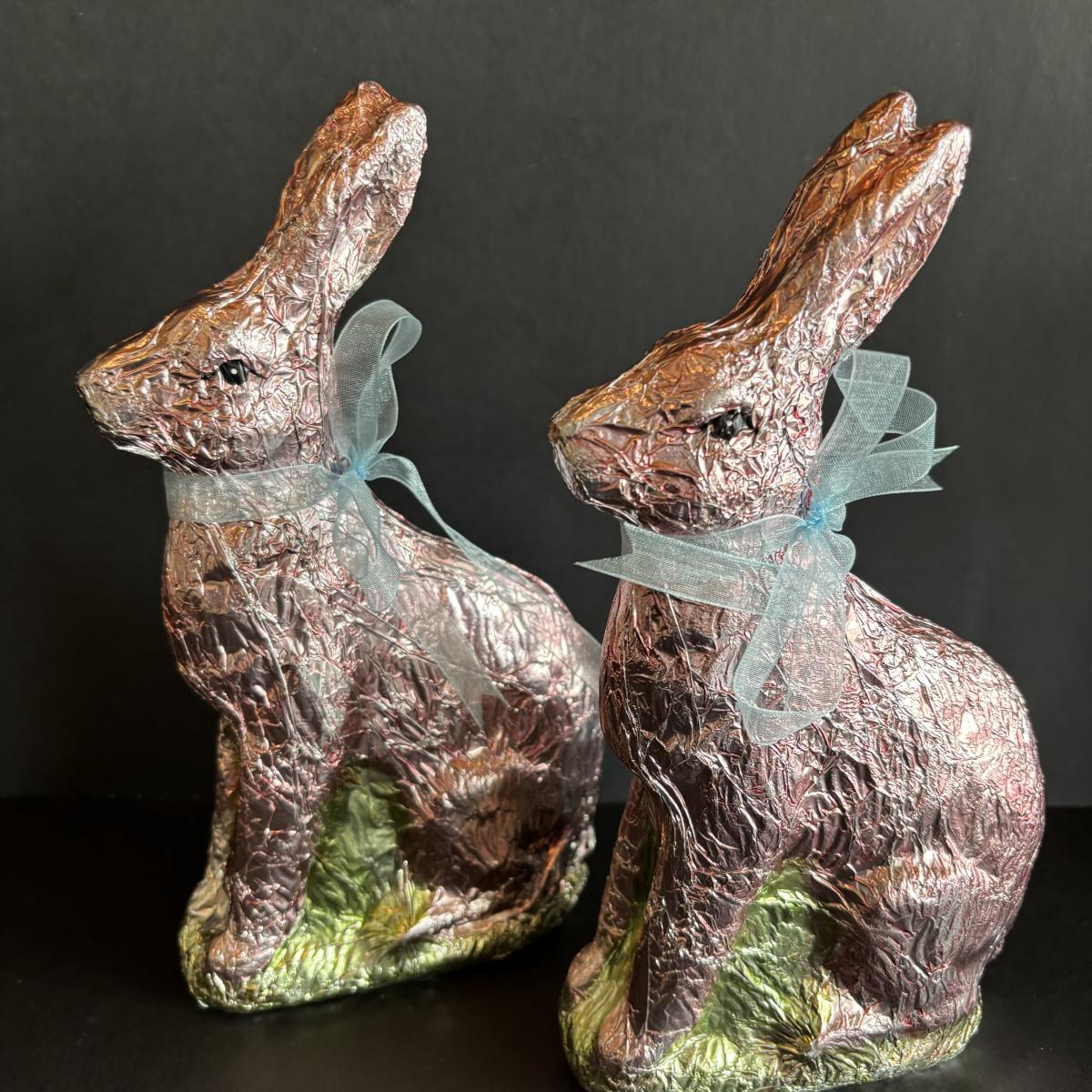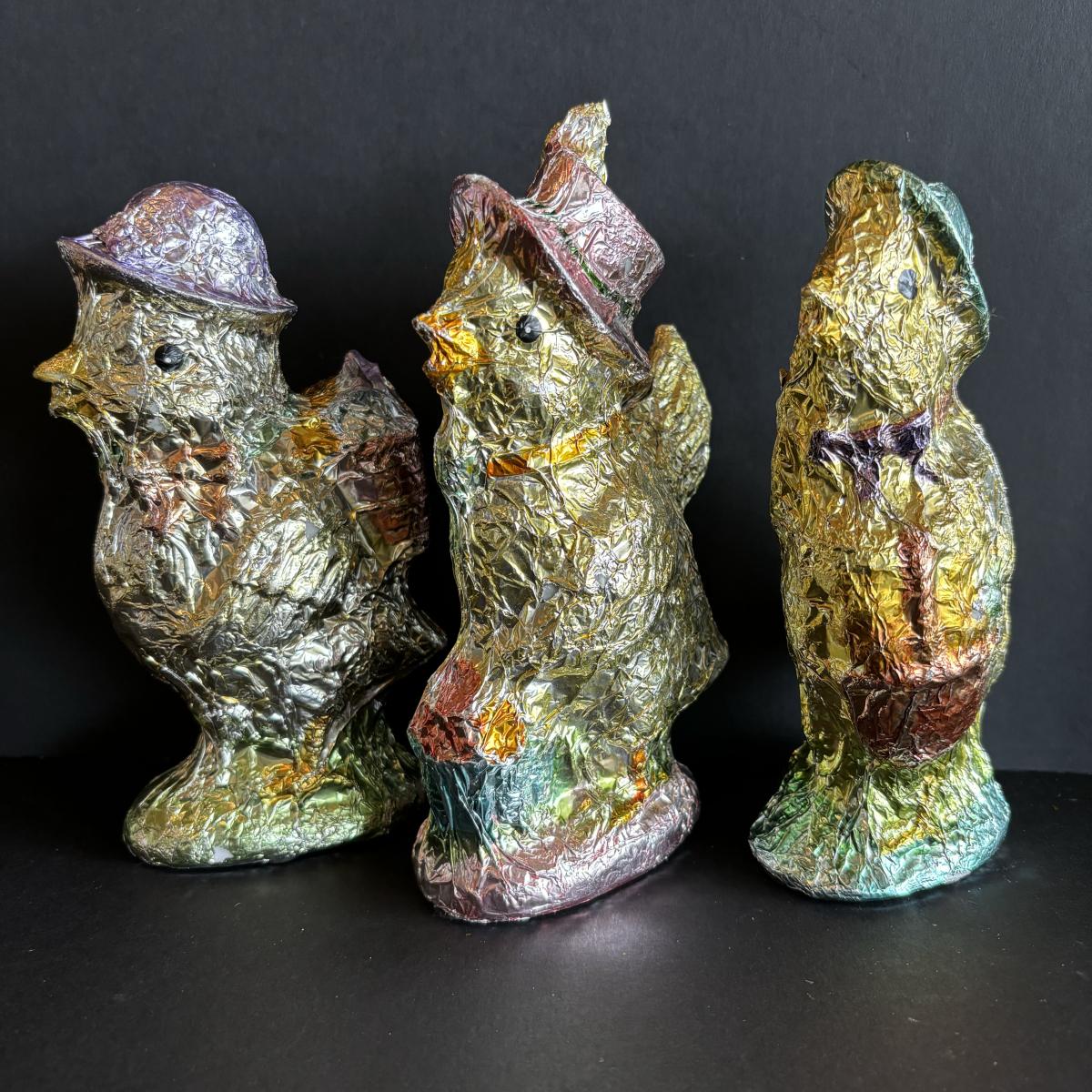 LOT 147: Spring Holiday/Easter Decor: Wreath, Sisal Straw Easter Chicks, Frosted Glass Chick along w/Foil Rabbits & Chicks