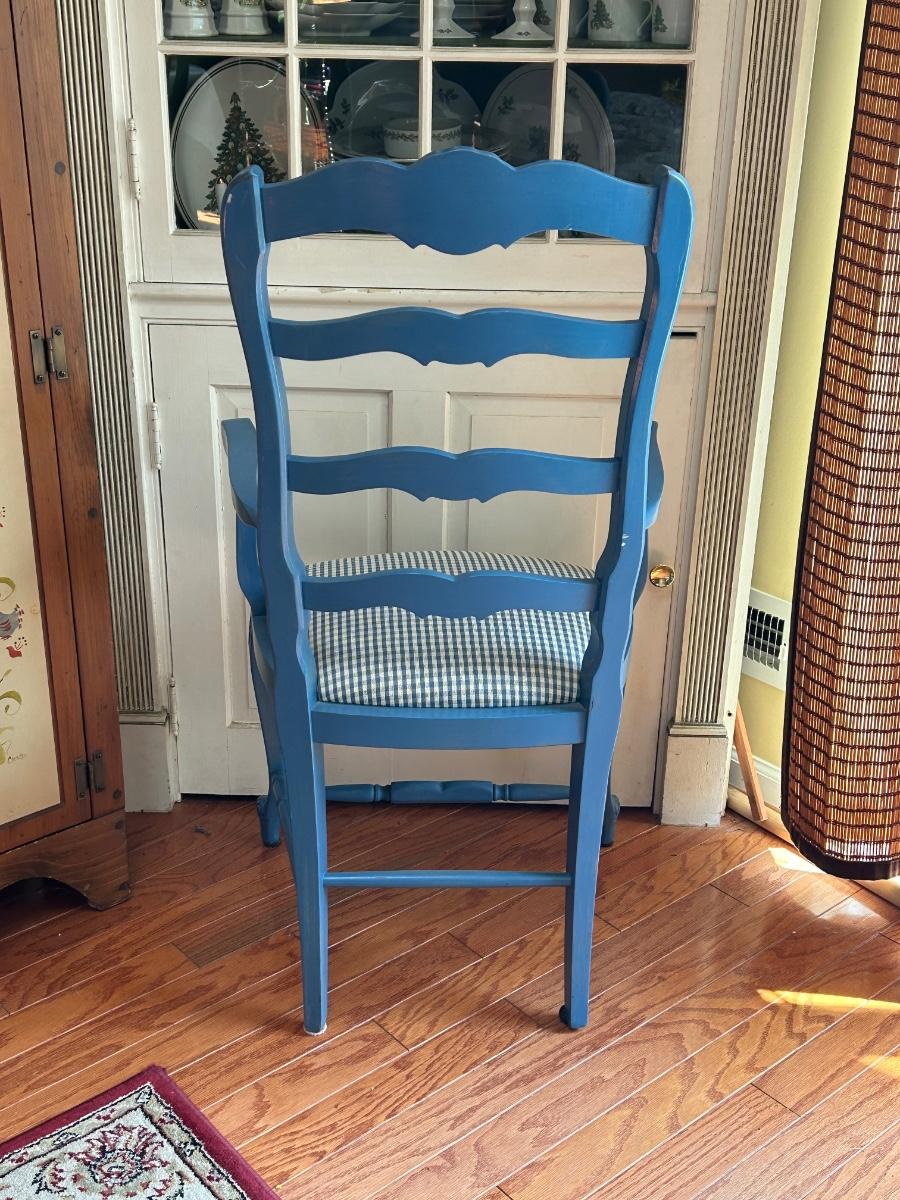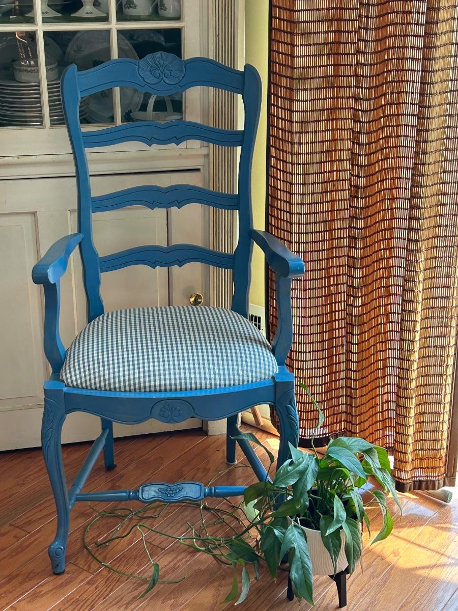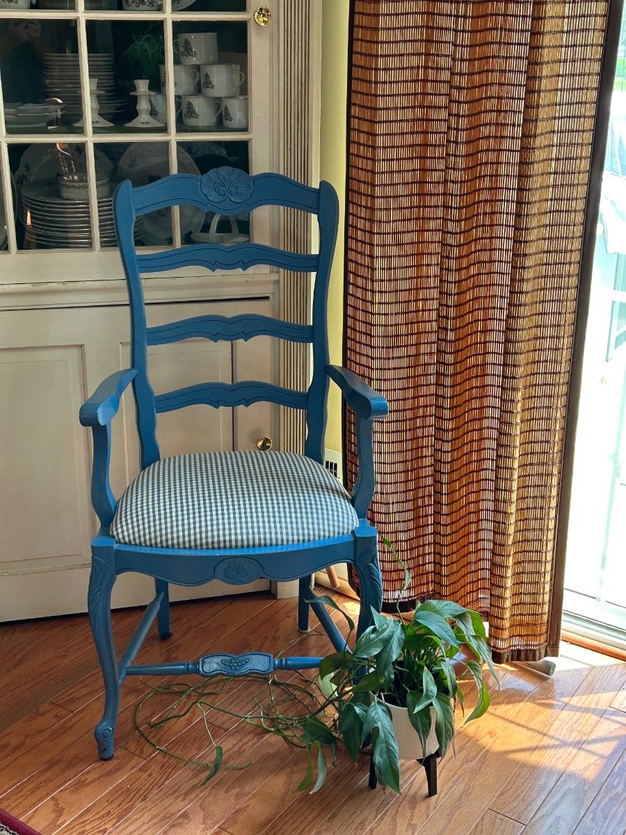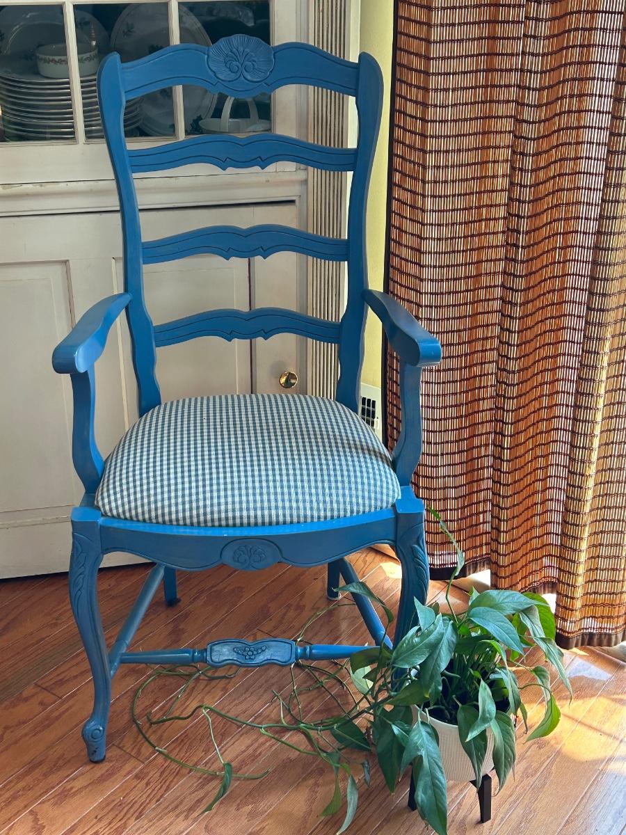 LOT 169: Blue Farmhouse Accent Chair & Potted House Plant