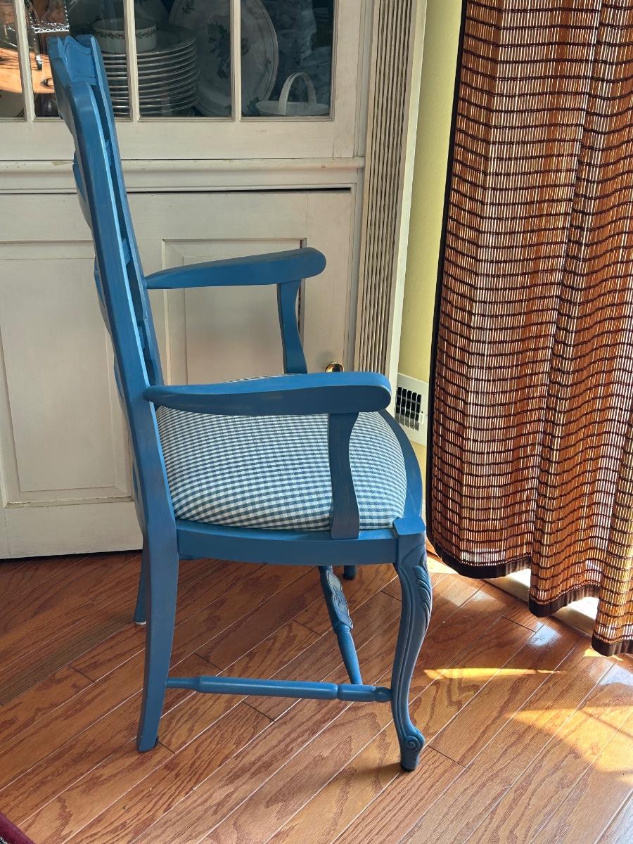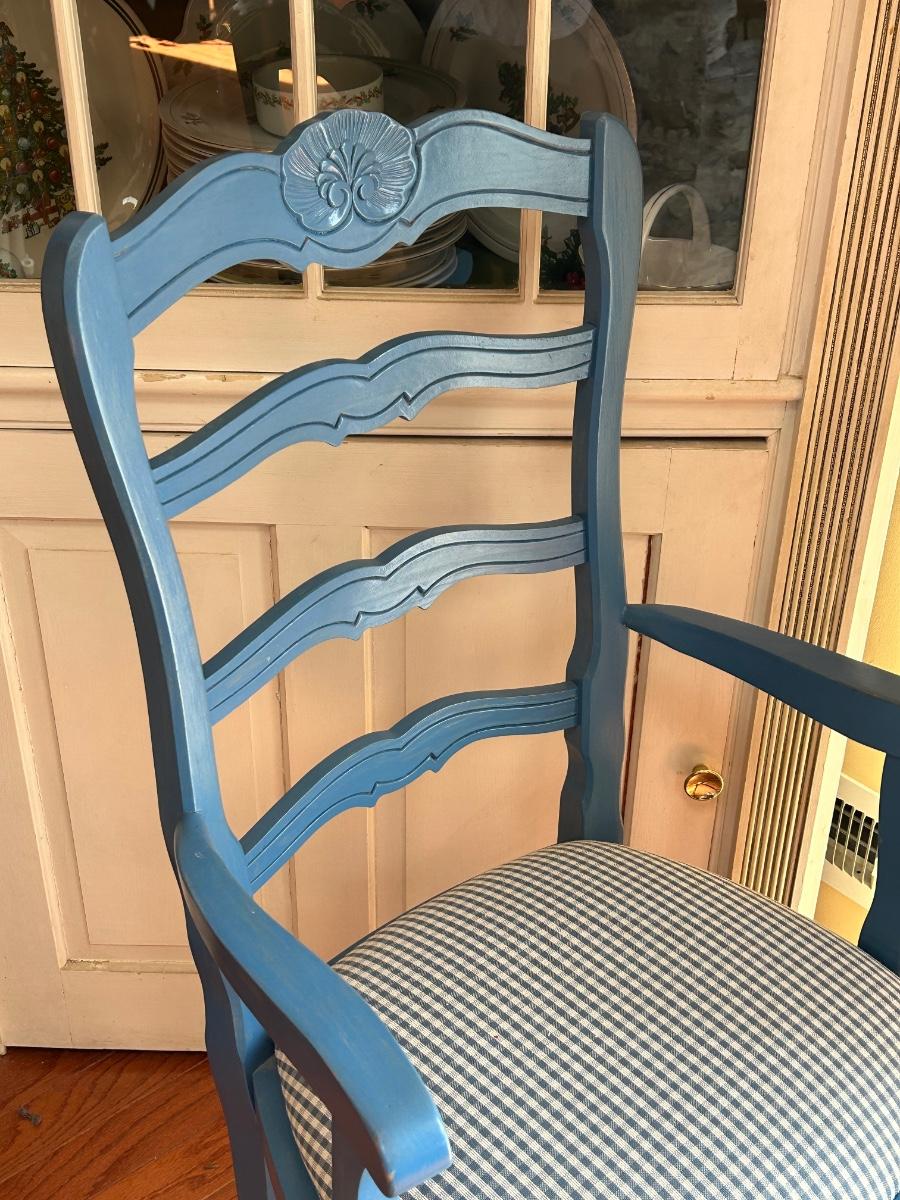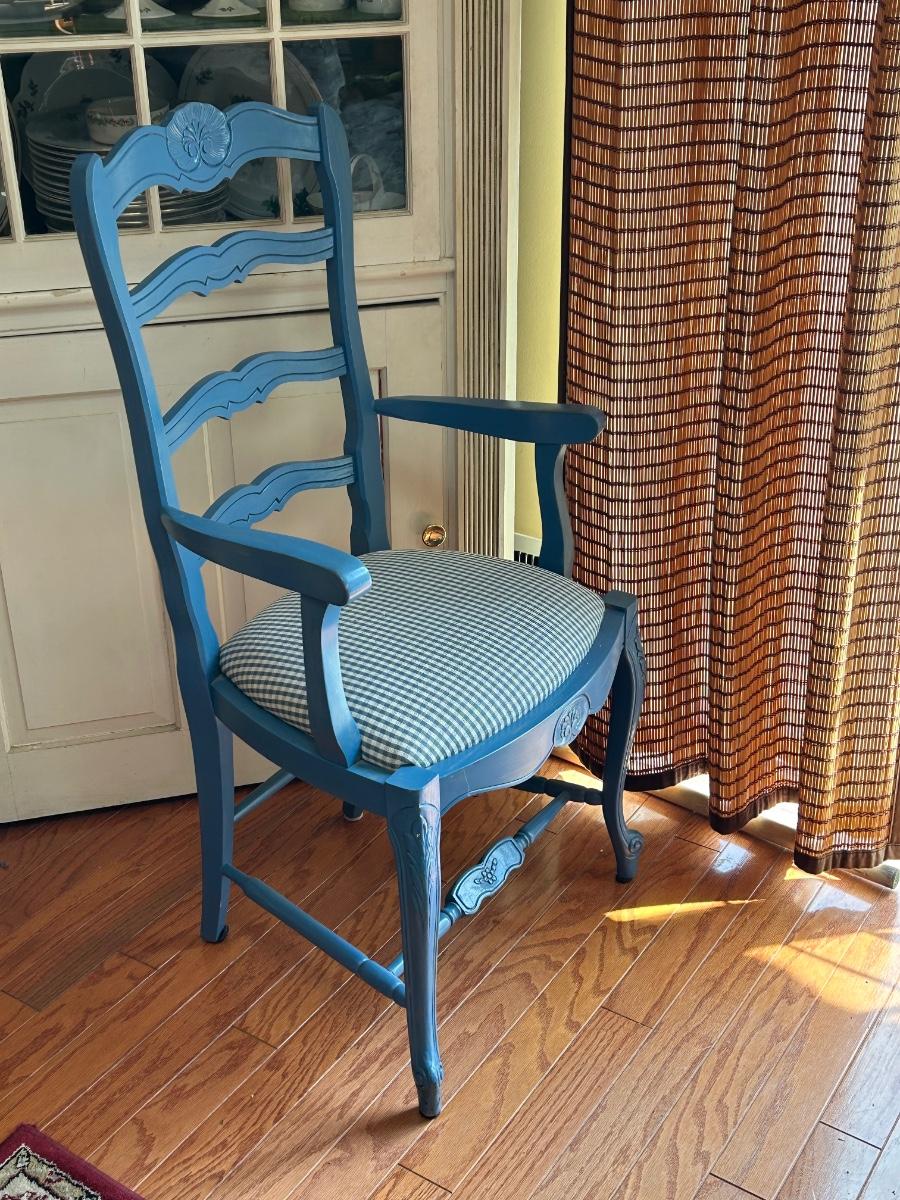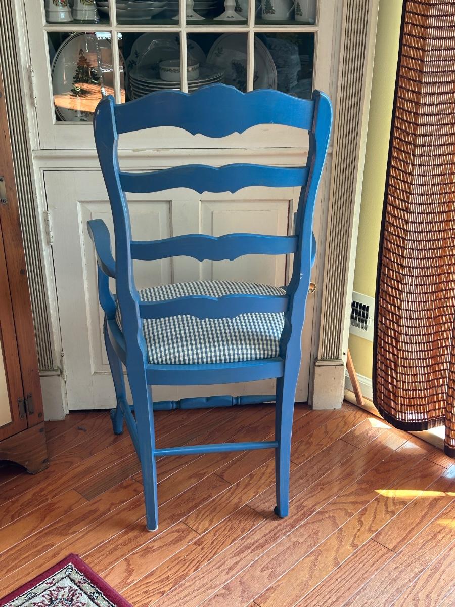 LOT 169: Blue Farmhouse Accent Chair & Potted House Plant