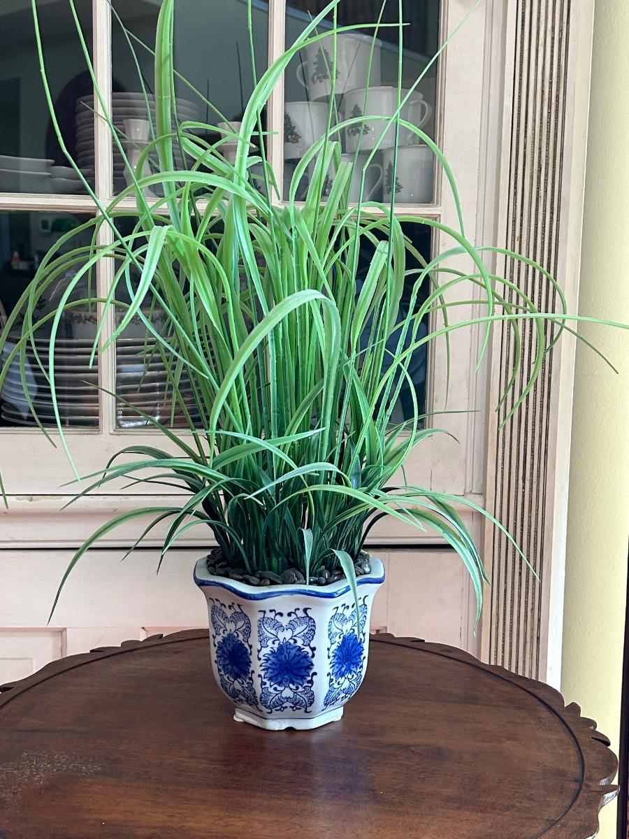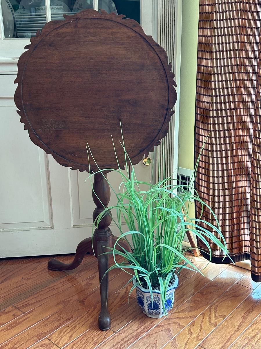 LOT 171: Vintage Tilt-Top Table & Faux Plant