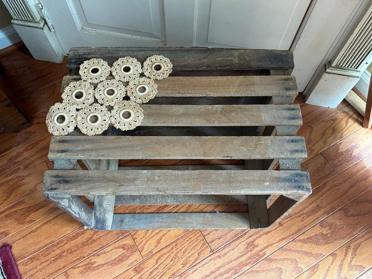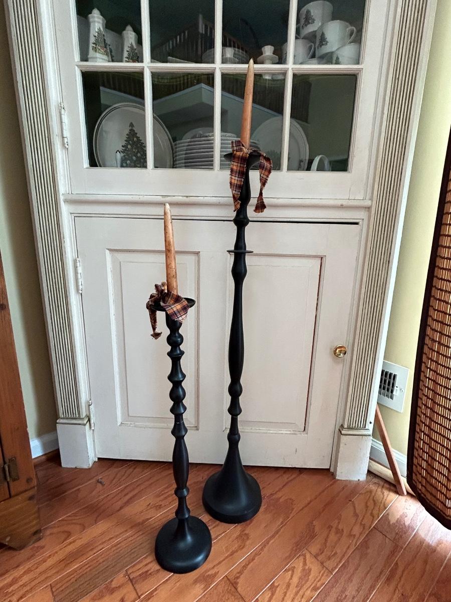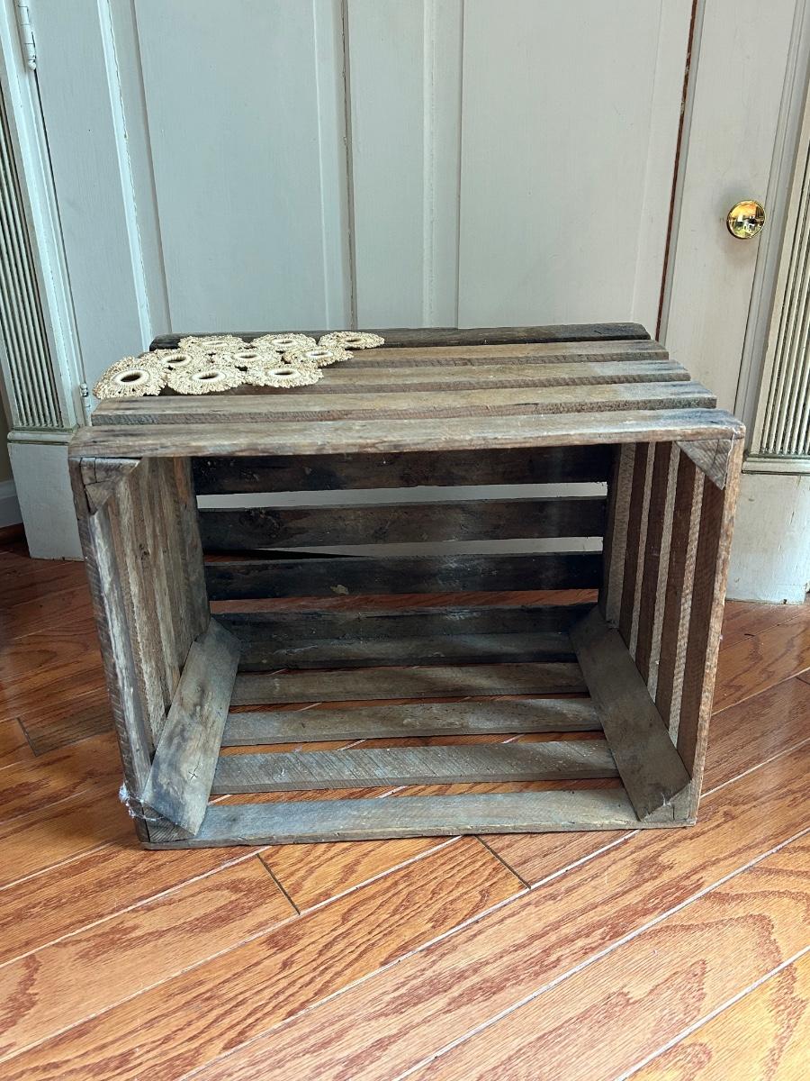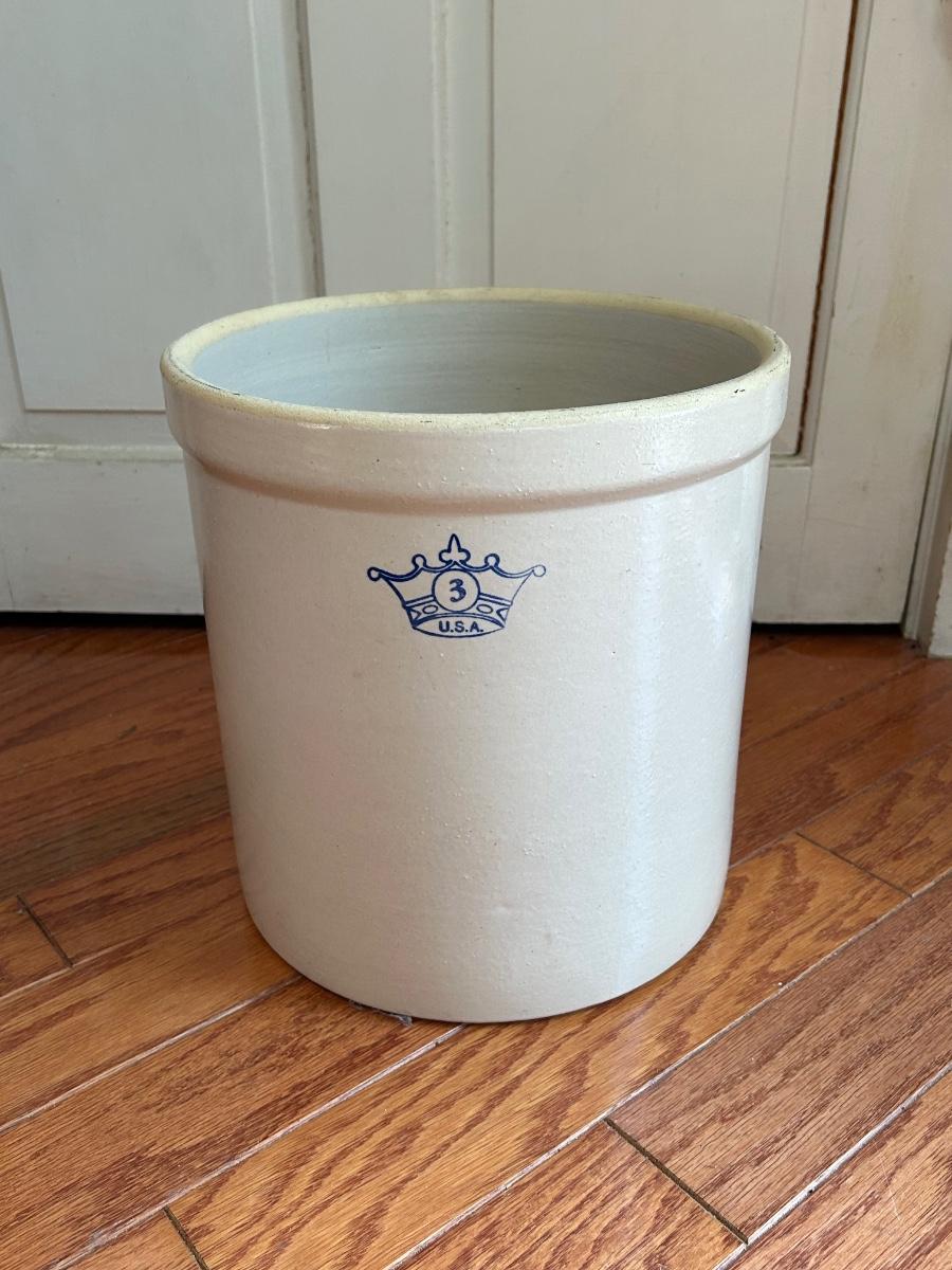 LOT 176: Farmhouse Decor - No. 3 Crock, Wood Crate, Tall Candlesticks & Signs