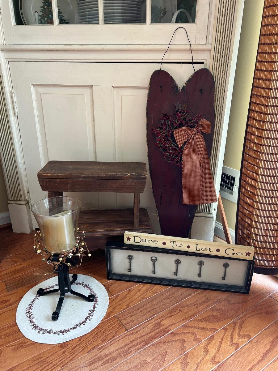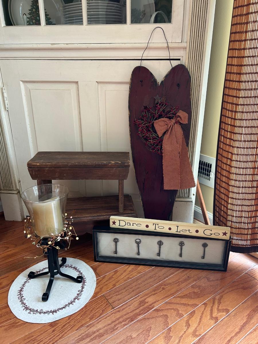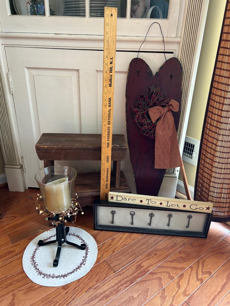 LOT 177: Primitive Home Decor - Step Stools, Wall Art And More
