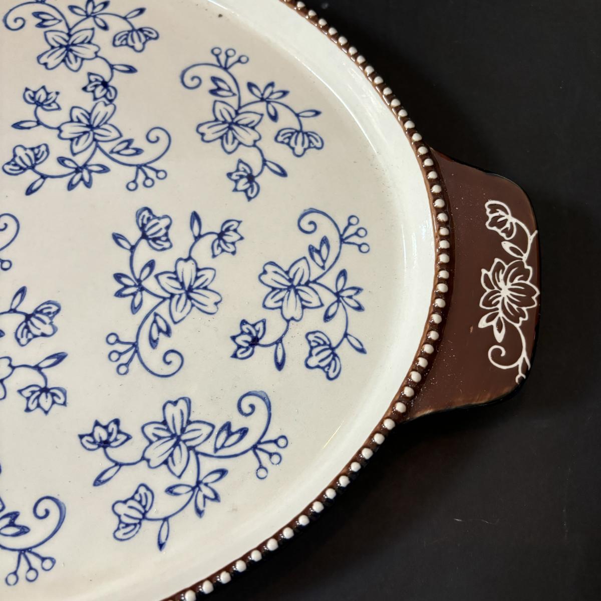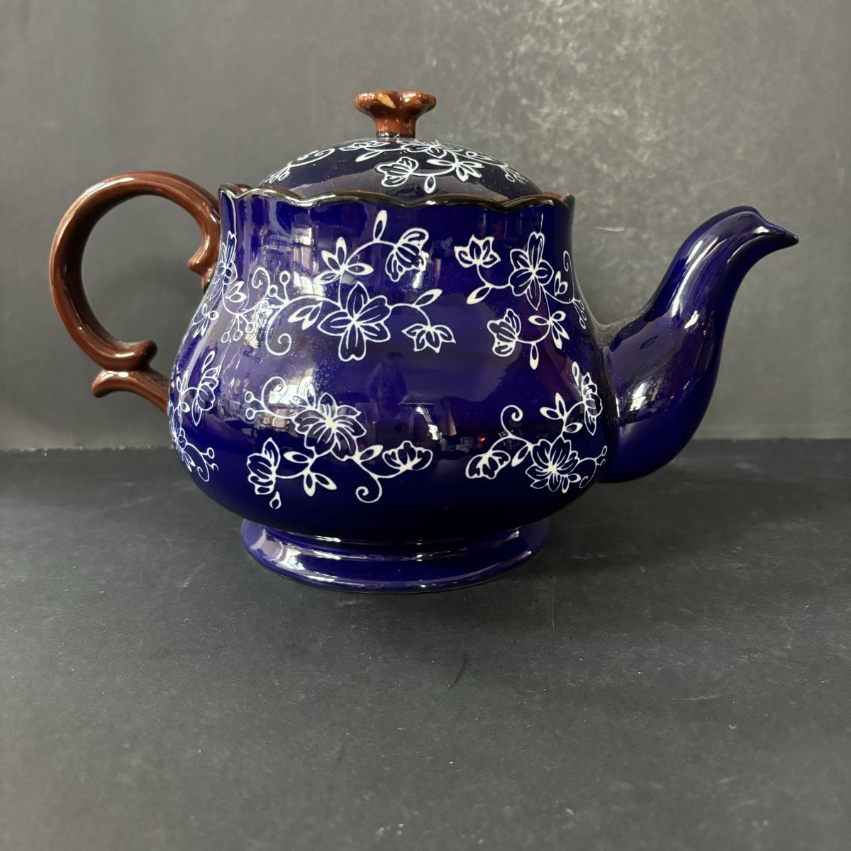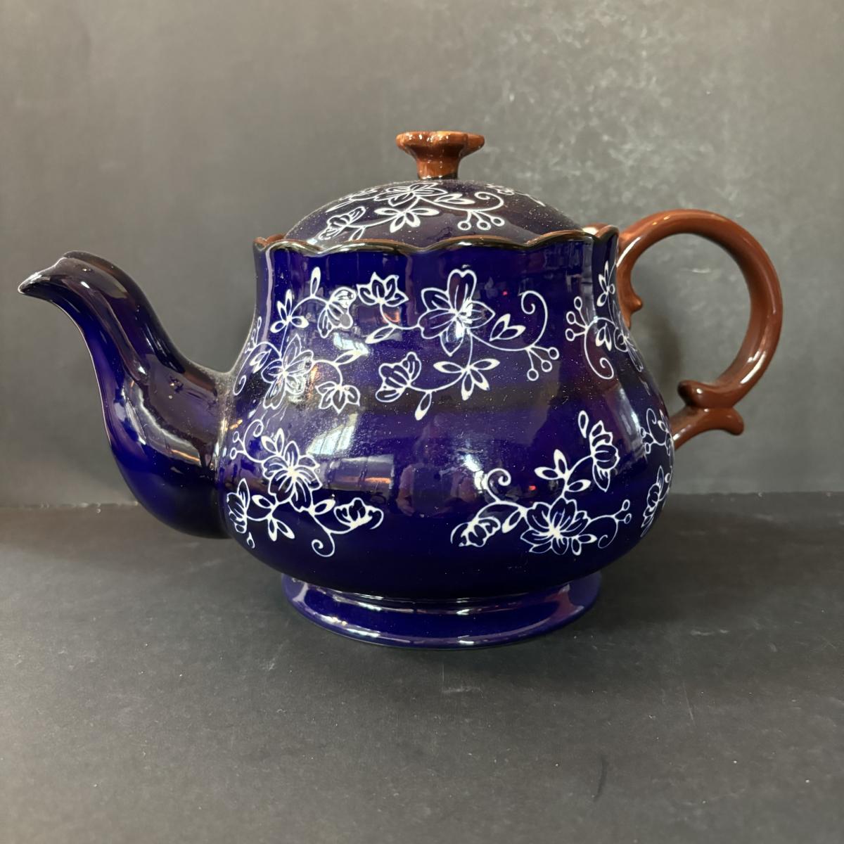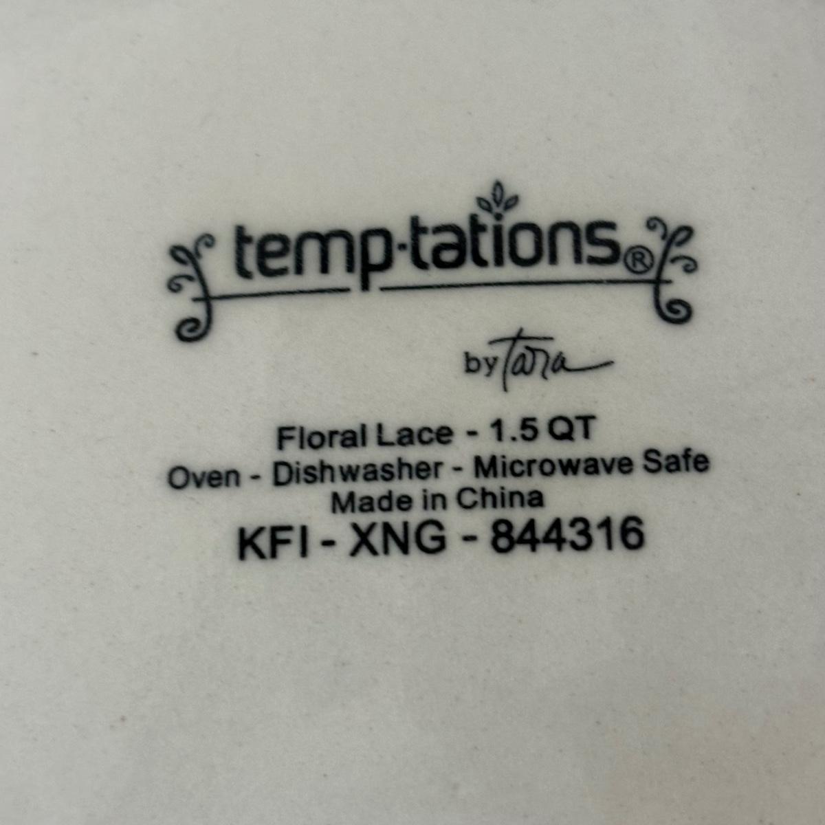 LOT 224: Temp-Tations by Tara Blue Floral Lace Tea Service for Four: Teapot, Cups & Serving Tray