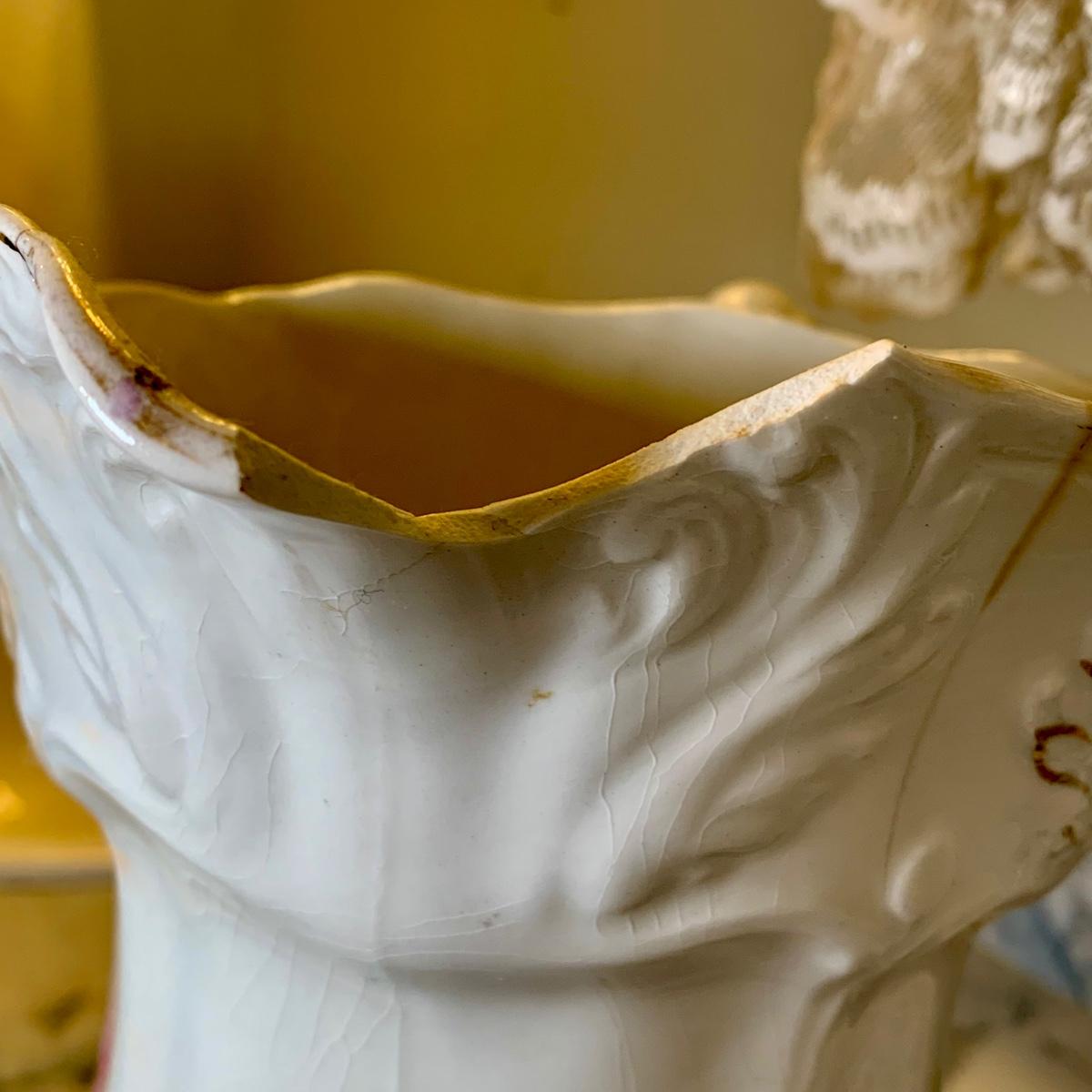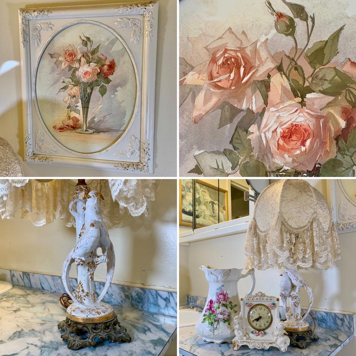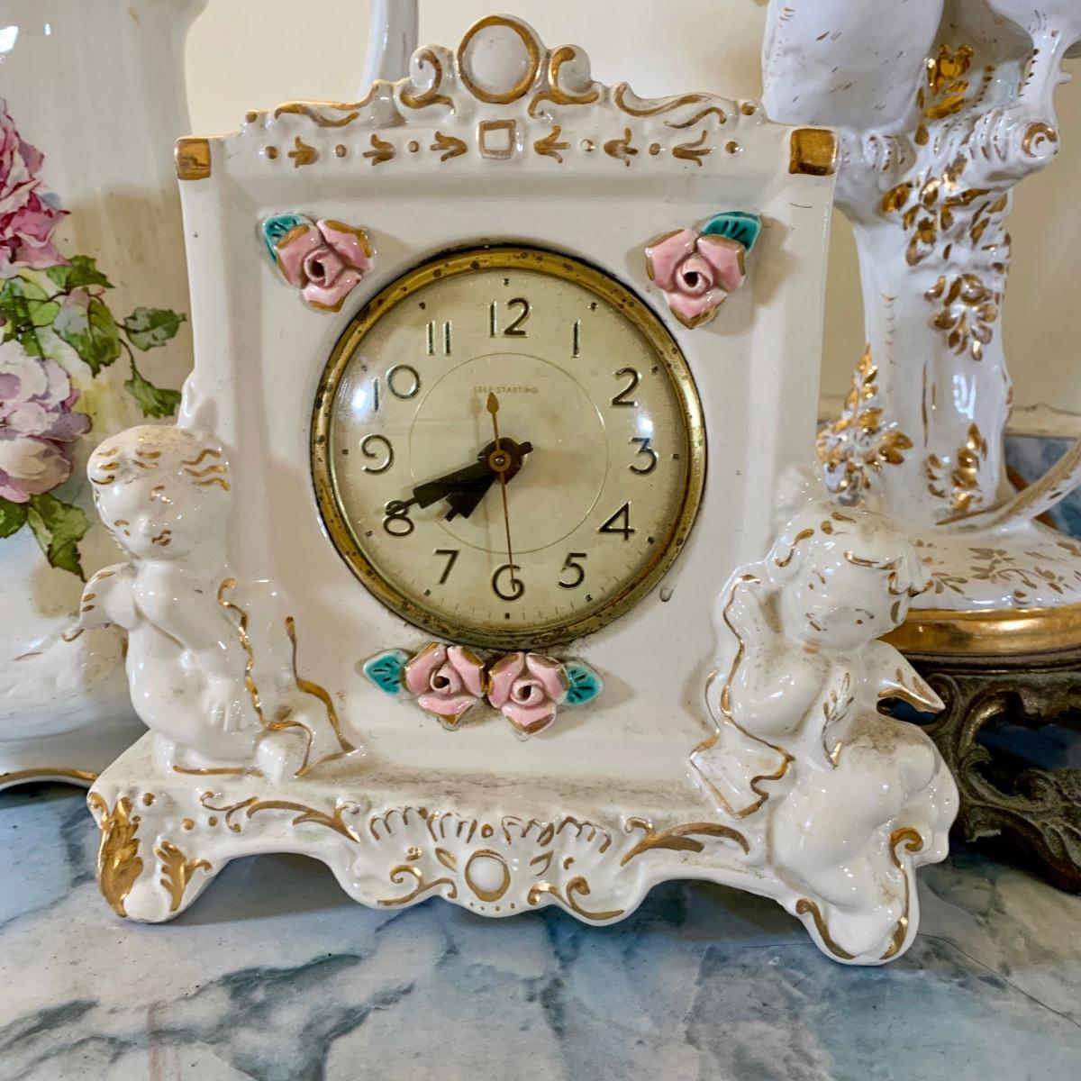 LOT 2 L: Marbro Lamp Co. Italian Porcelain Pheasant Lamp w/ Lace Lampshade, Lanshire Porcelain Self Starting Cherub & Rose Mantel Clock, & More