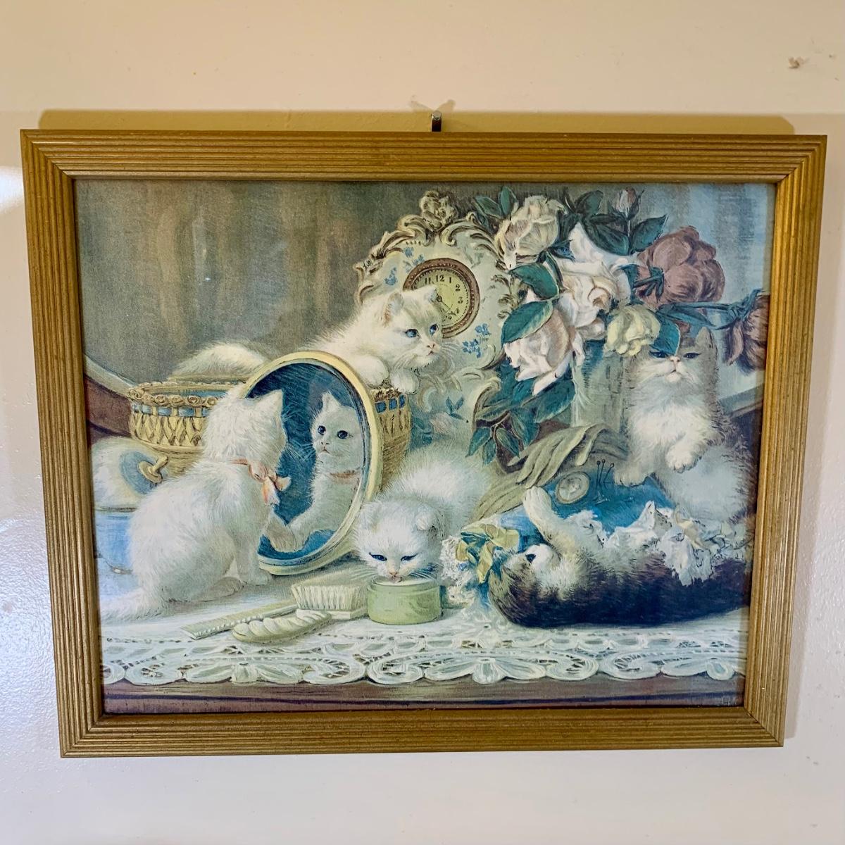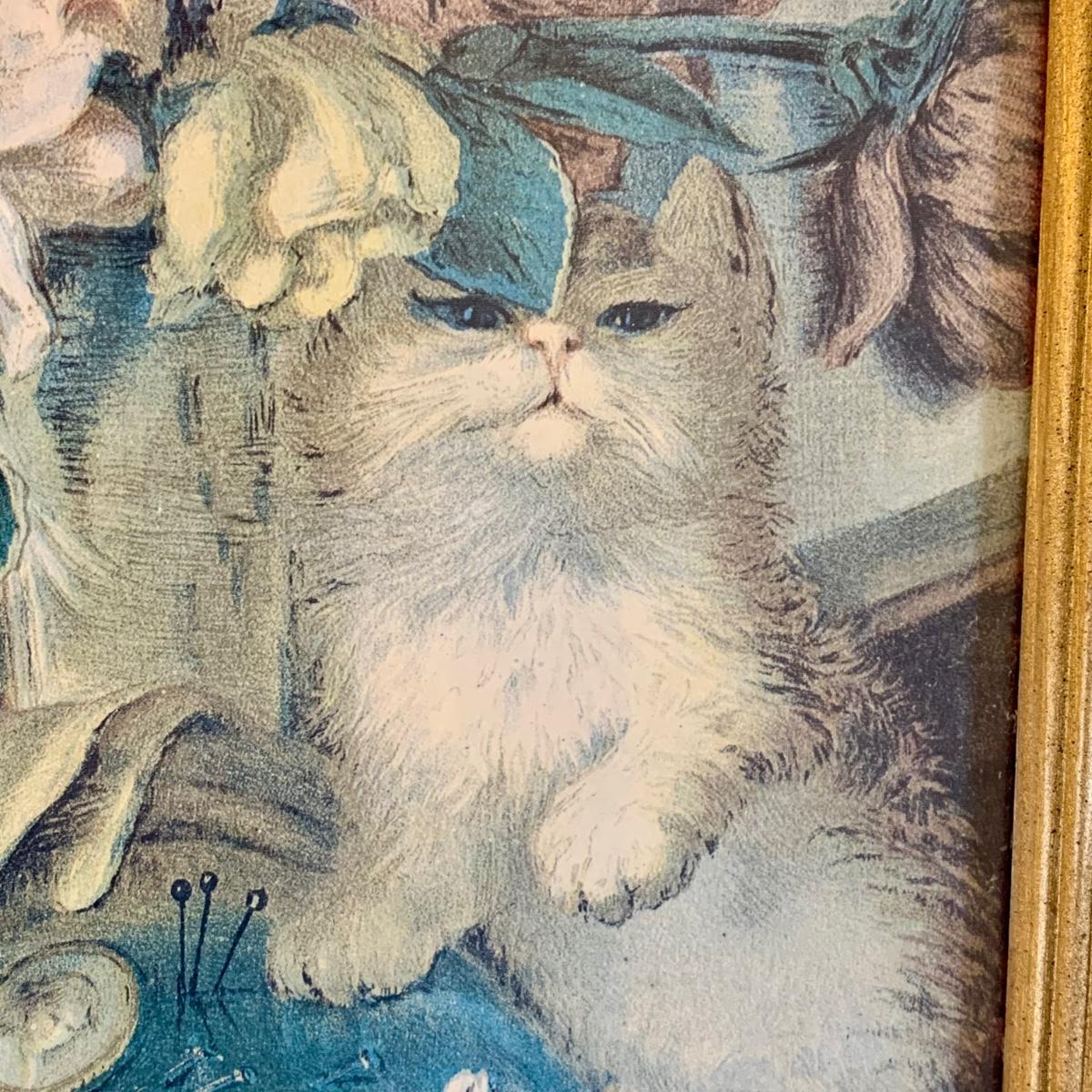 LOT 3 L: Vintage Ceramic Persian Cat Figurine & "The Five Senses" by H. G. Plumb Print