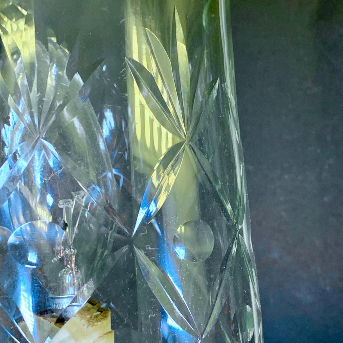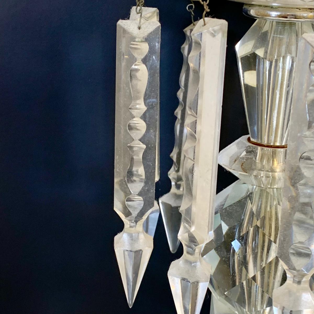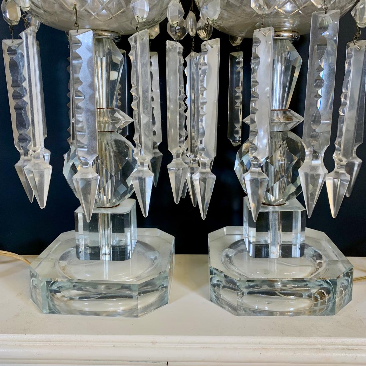 LOT 4 L: Vintage Pair of Cut Crystal Hurricane Lamps w/ Hanging Prisms