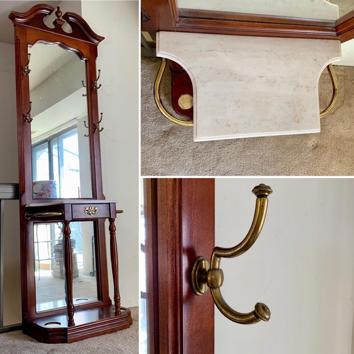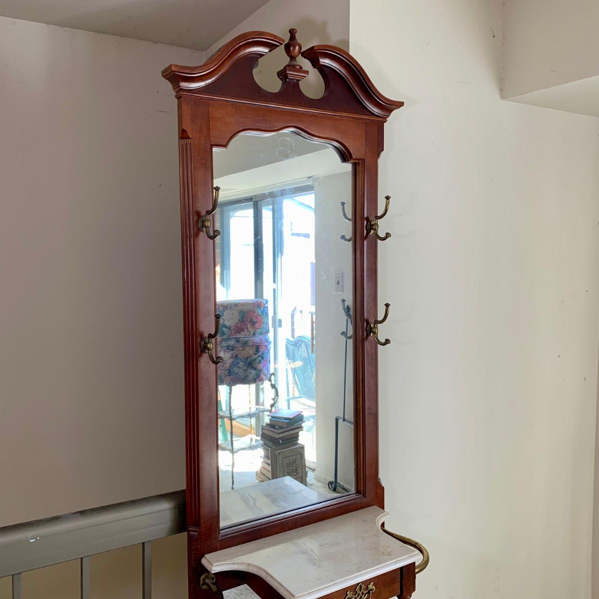 LOT 10 L: Pulaski Furniture Co. Mirrored Hall Tree w/ Marble Table Top