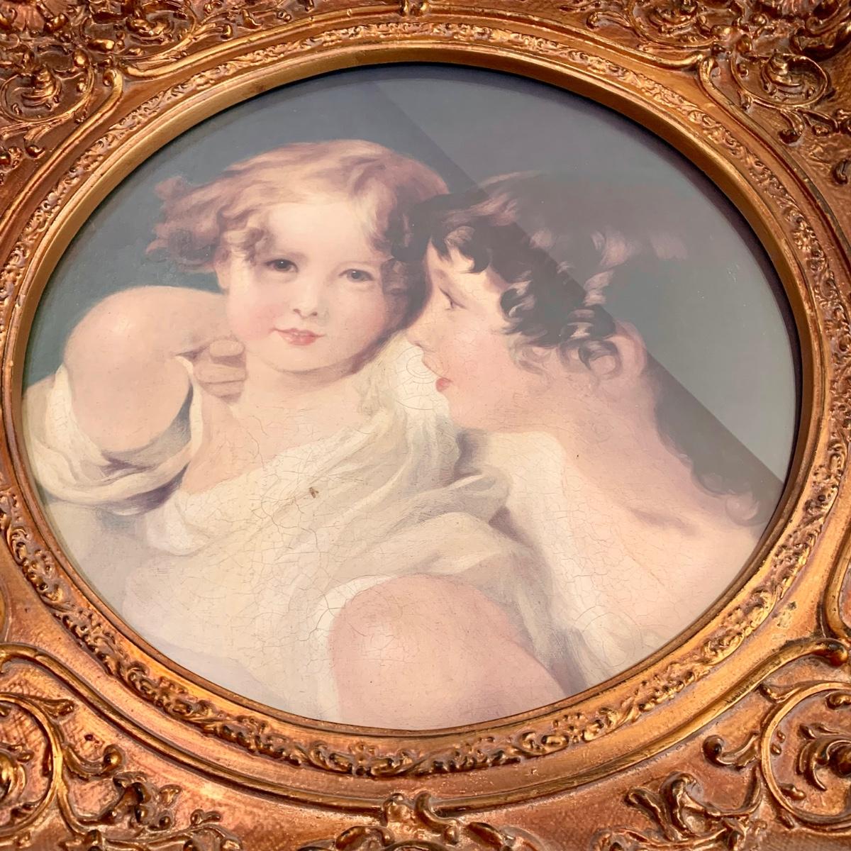 LOT 11 L: "The Calamity Children" by Sir Thomas Lawrence Print in a Gilded Frame w/ Wrought Iron Frame Holder