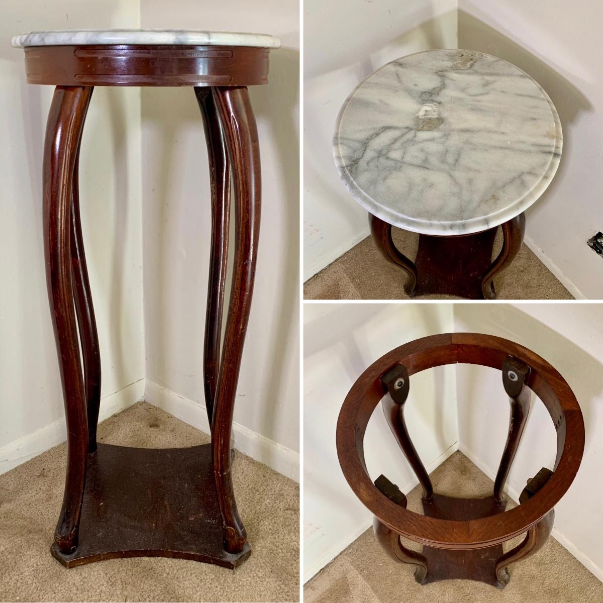 LOT 15 L: Mahogany Marble Top Plant Stand