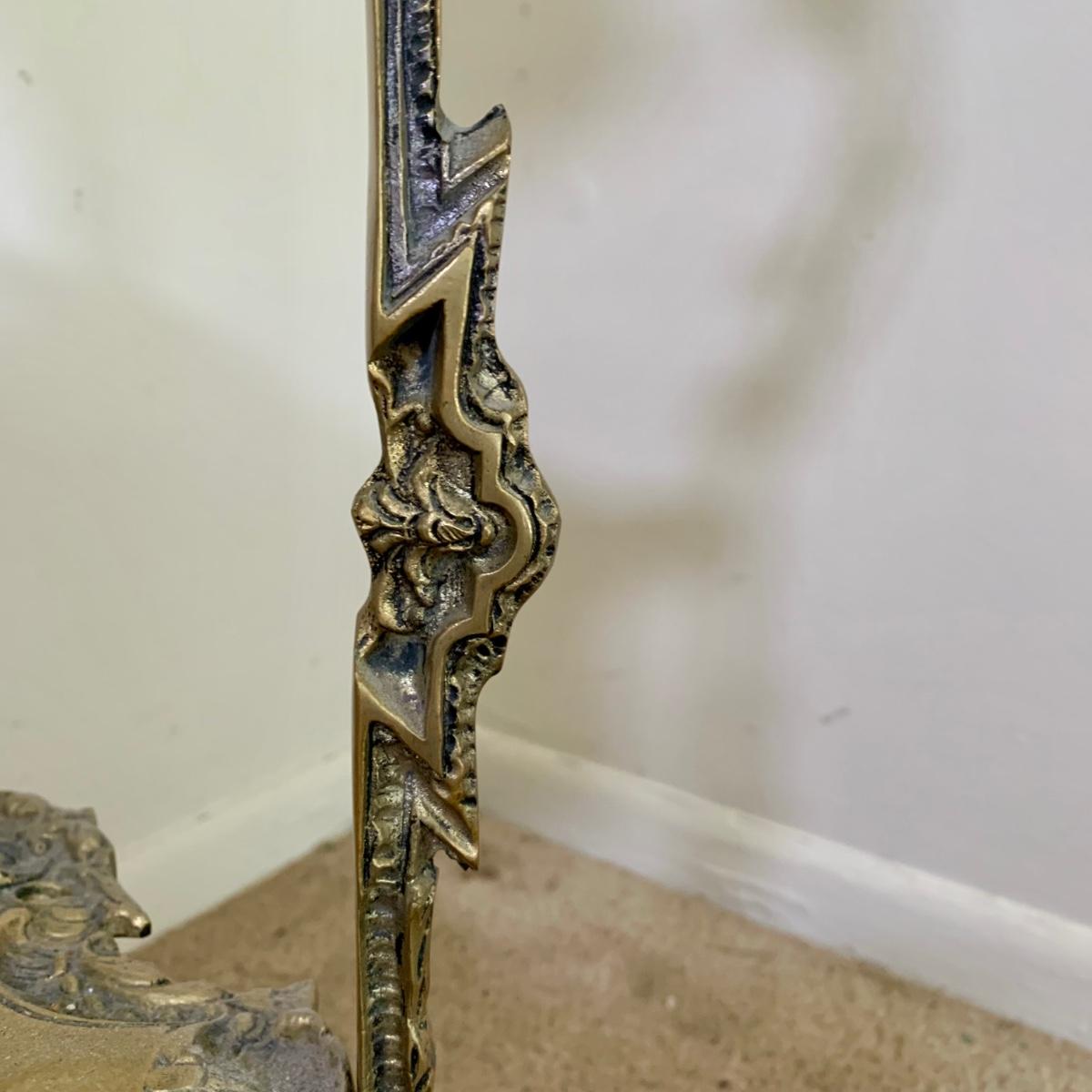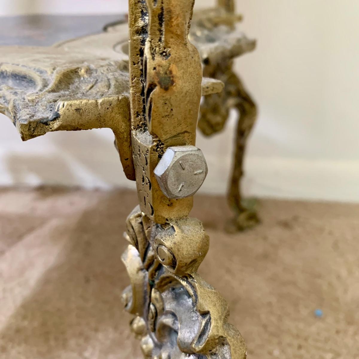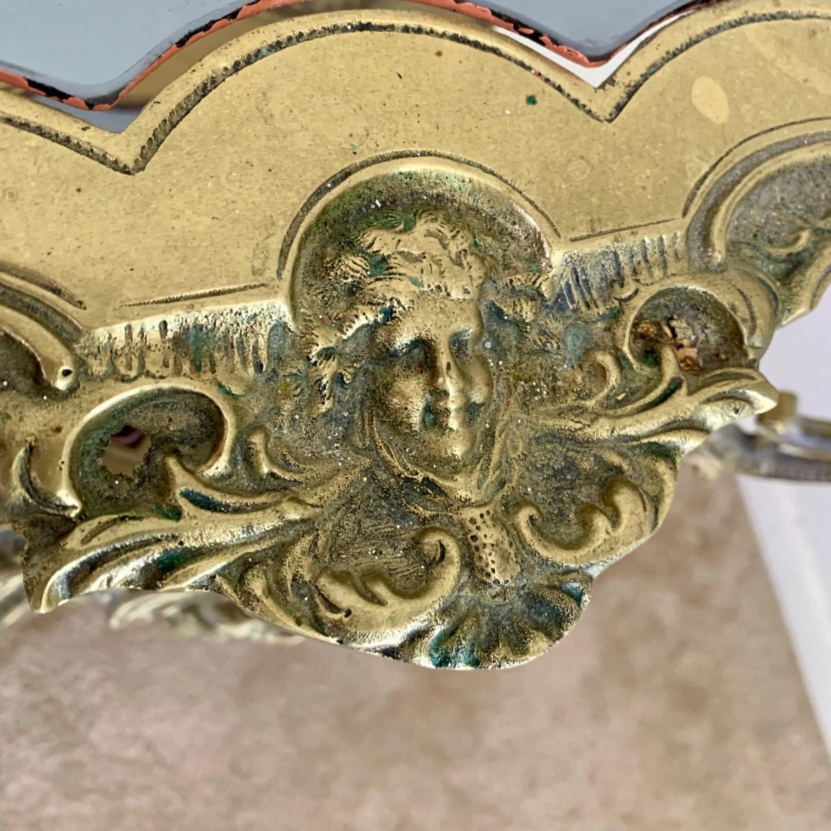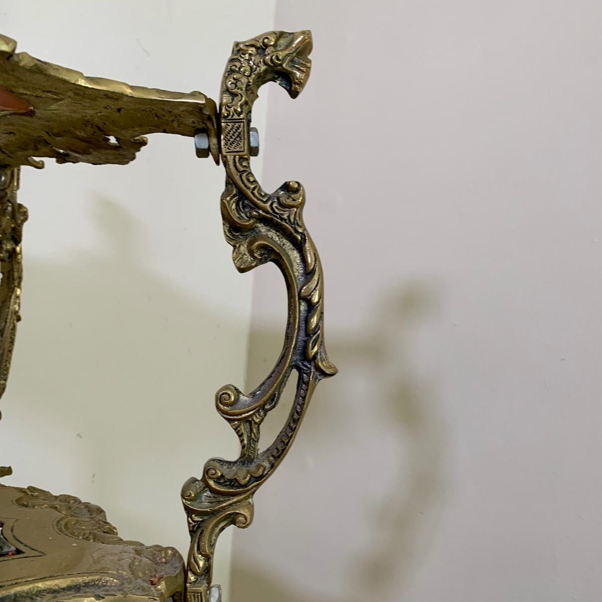 LOT 16 L: Gorgeous Ornate Victorian 3 Tier Brass End Table featuring Dragons, Cherubs, & Removable Mirrored Inlays