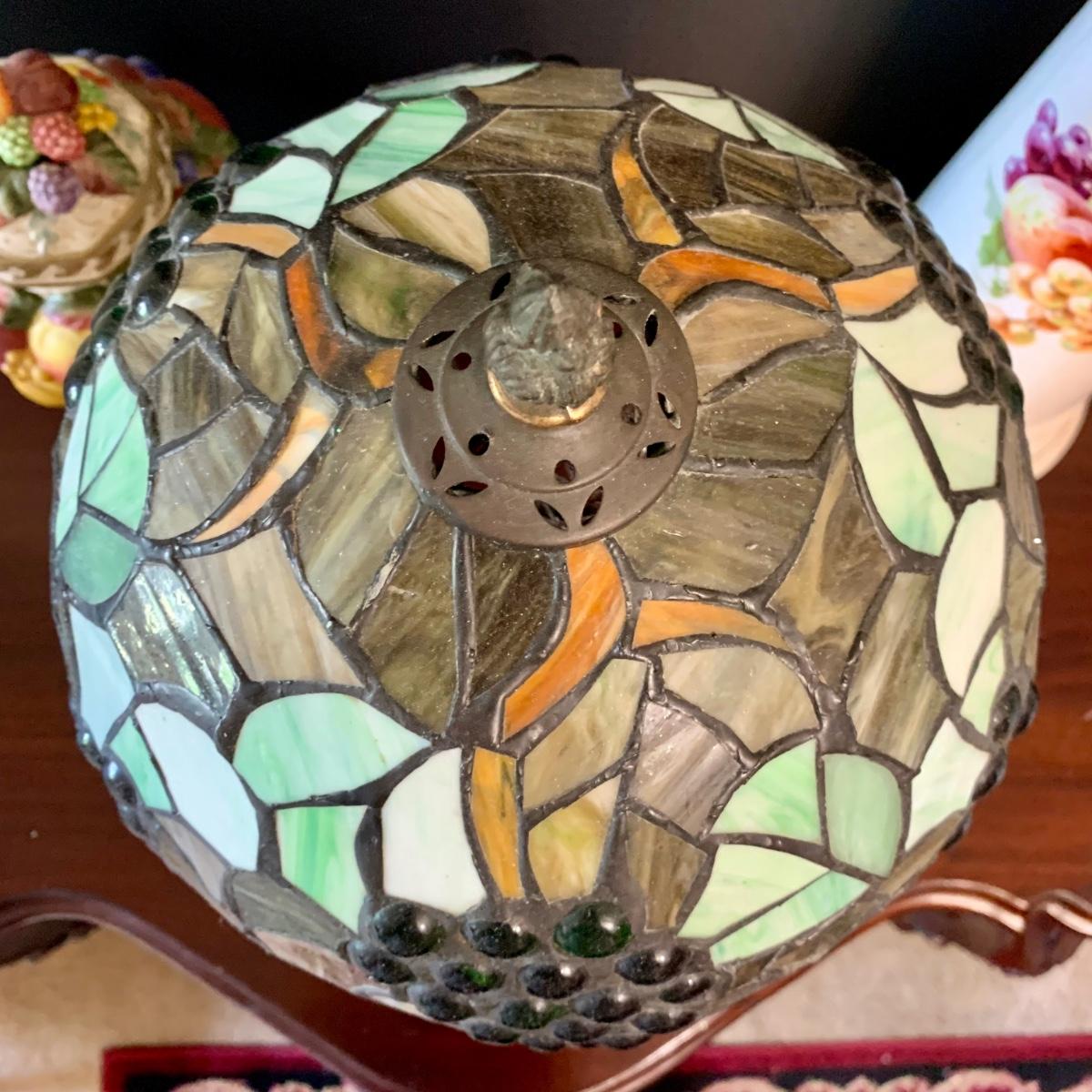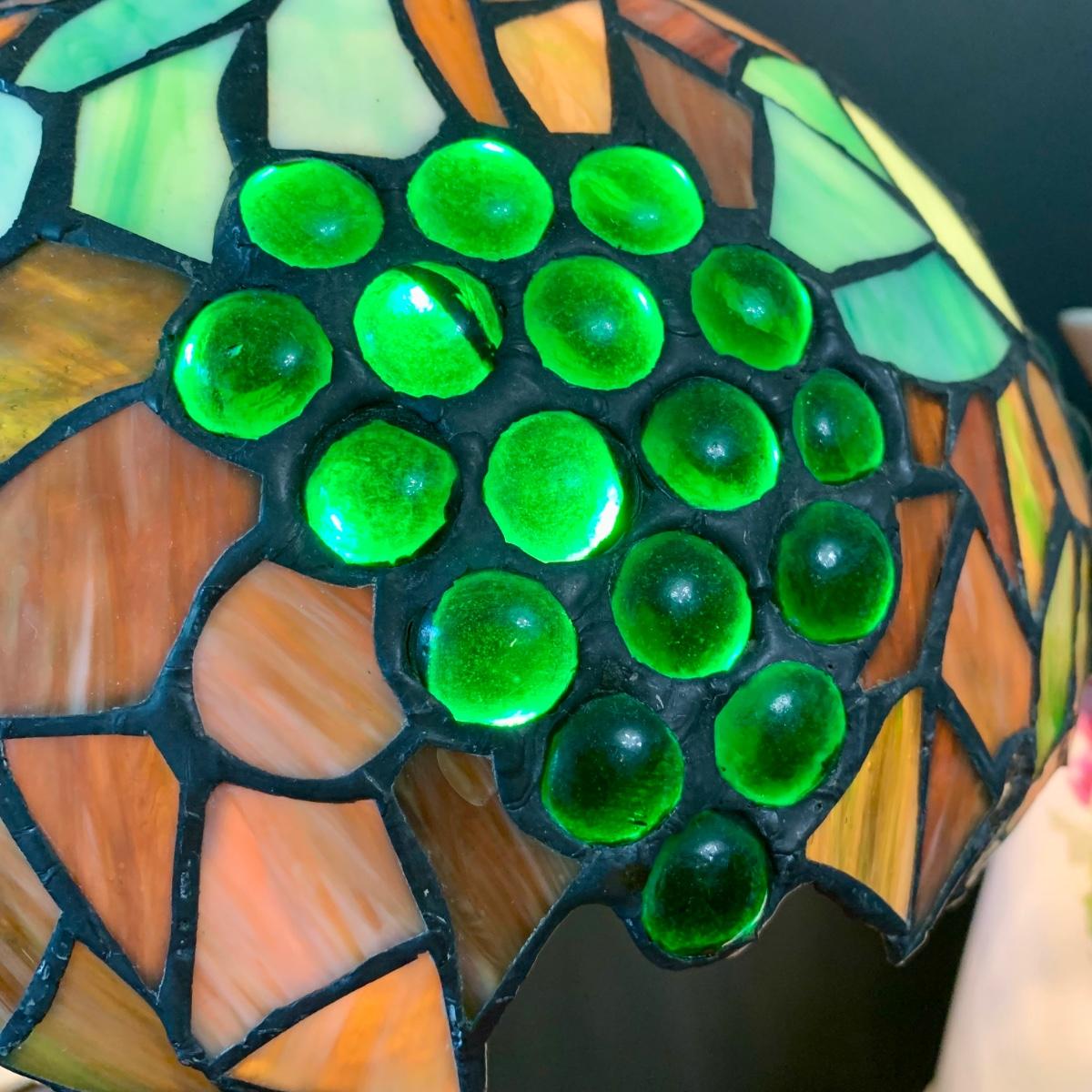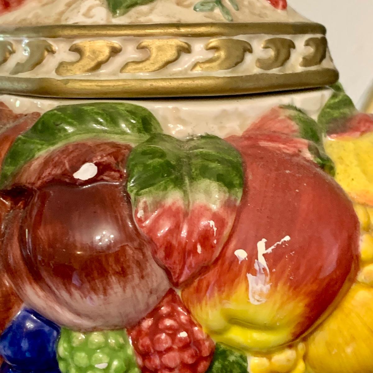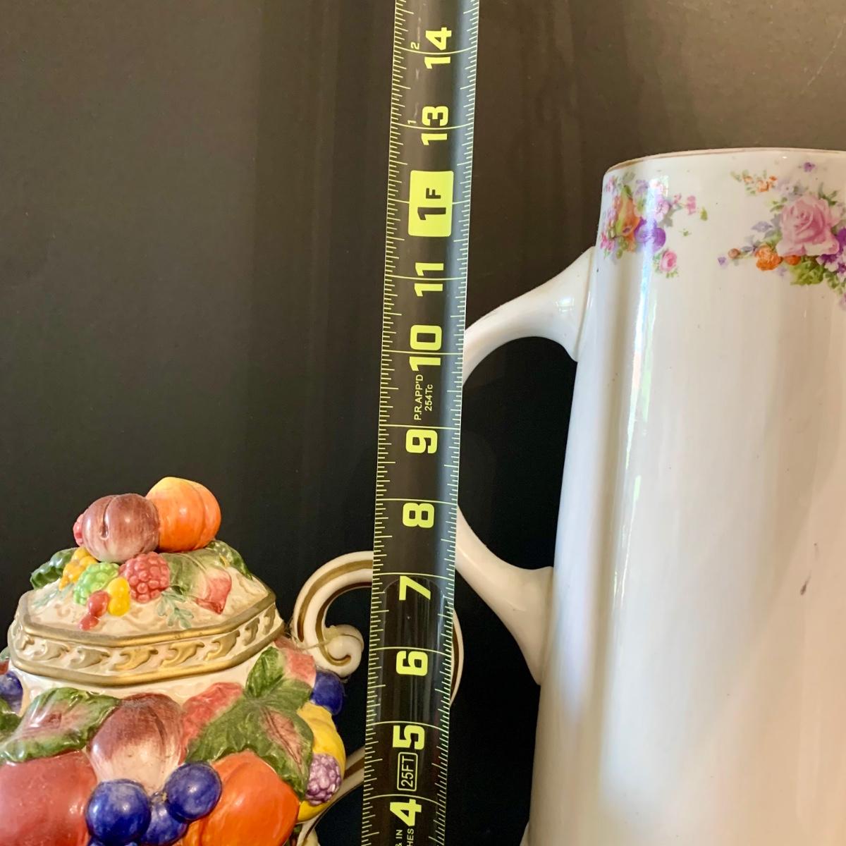 LOT 32 L: Tiffany Style Stained Glass Grapes Table Lamp, Lebeau Porcelaine Fruit & Flower Tall Pitcher, & Fitz & Floyd Fruit Teapot