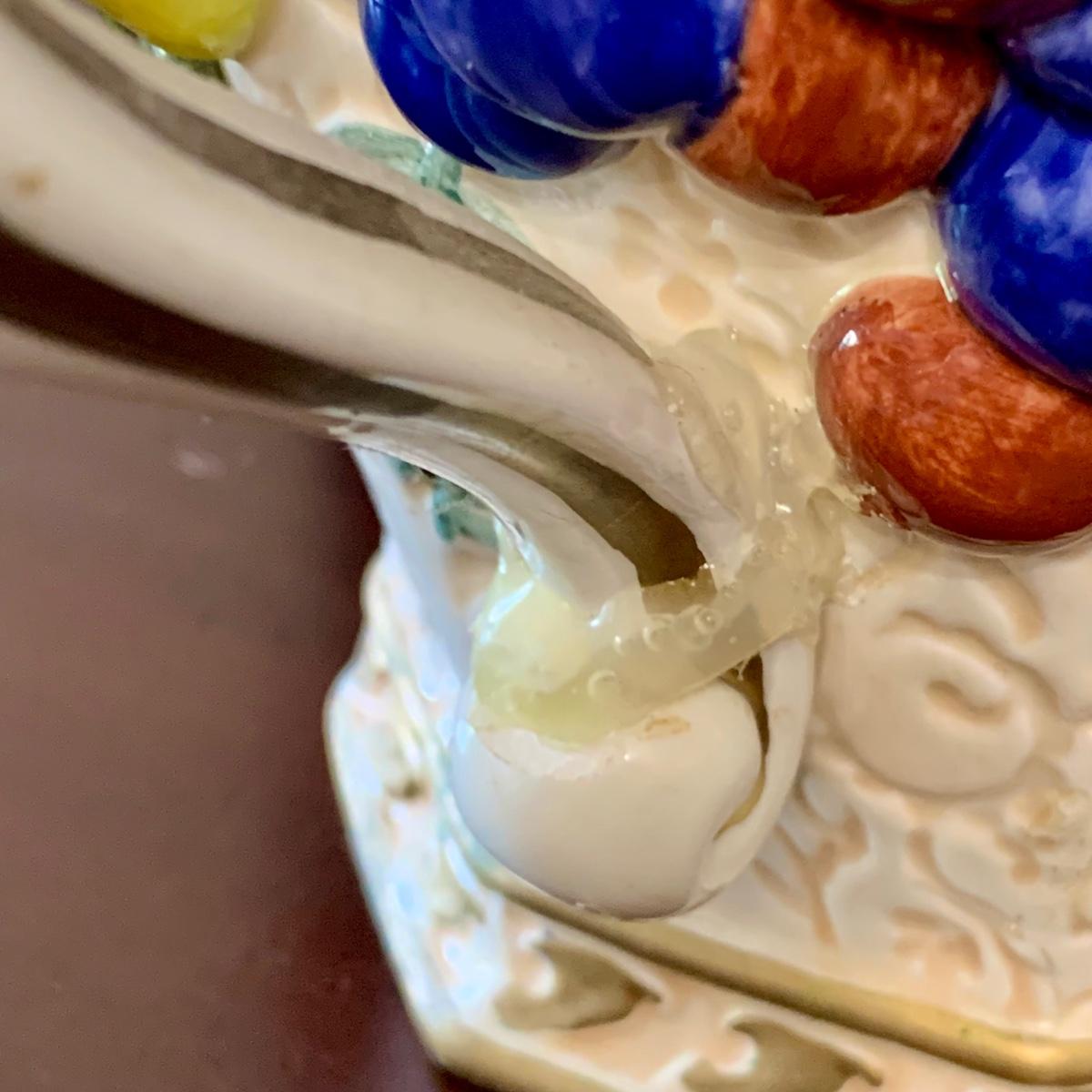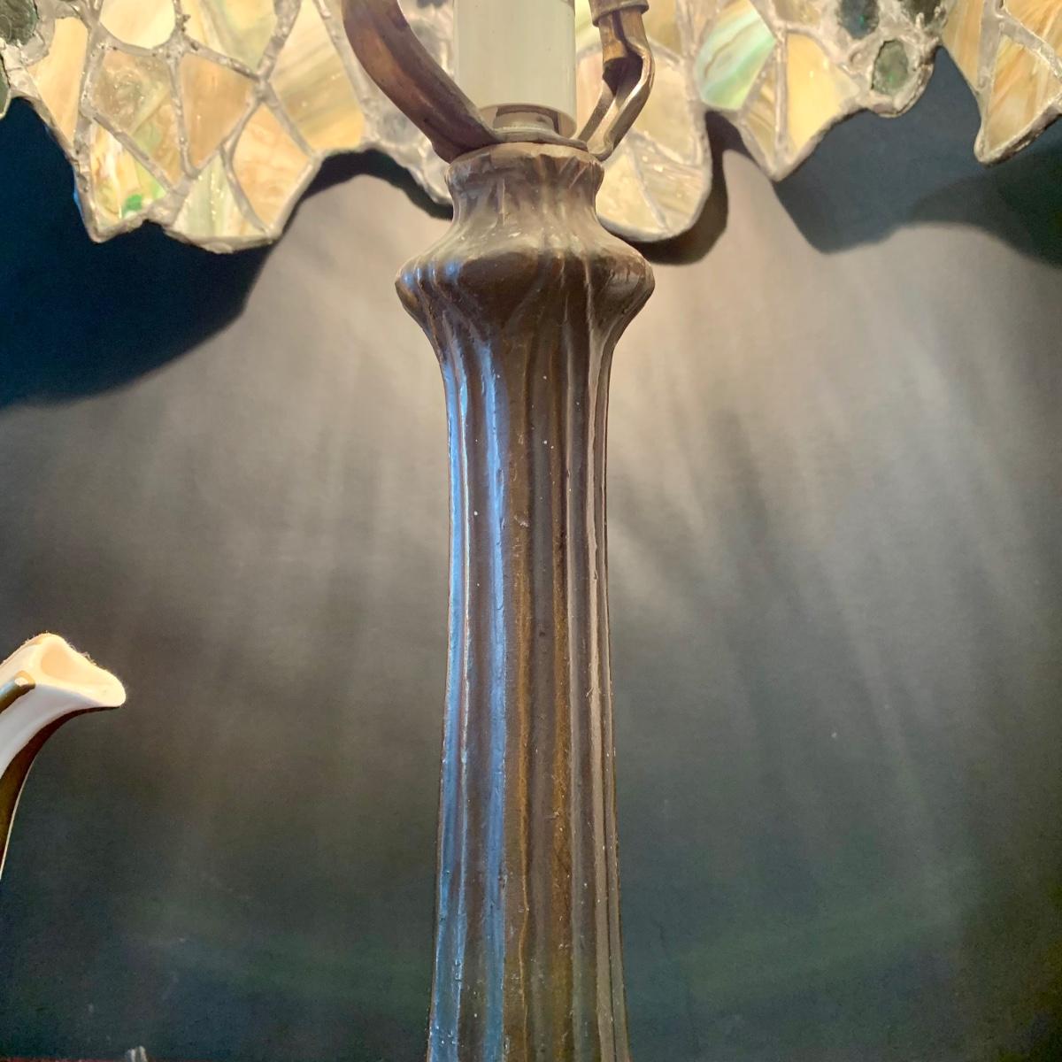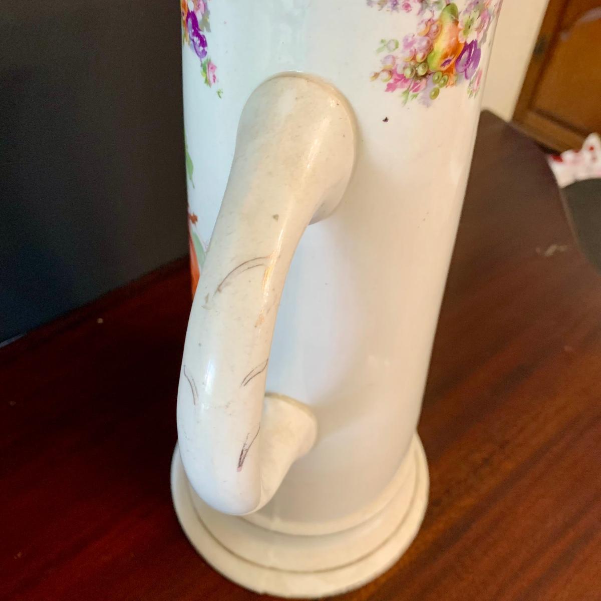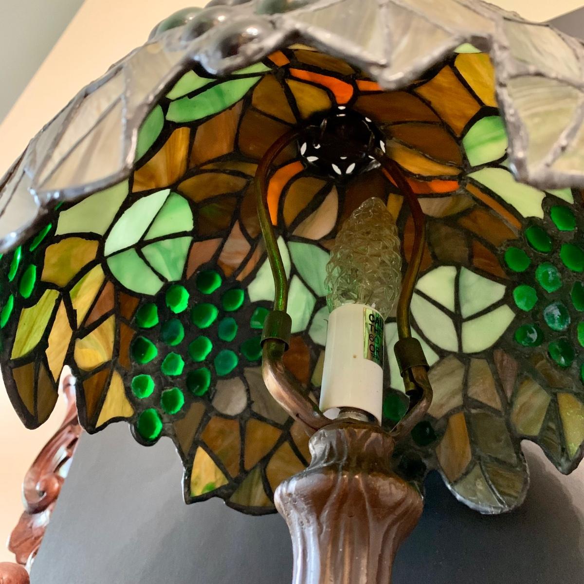 LOT 32 L: Tiffany Style Stained Glass Grapes Table Lamp, Lebeau Porcelaine Fruit & Flower Tall Pitcher, & Fitz & Floyd Fruit Teapot