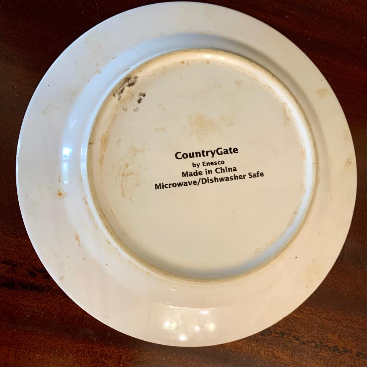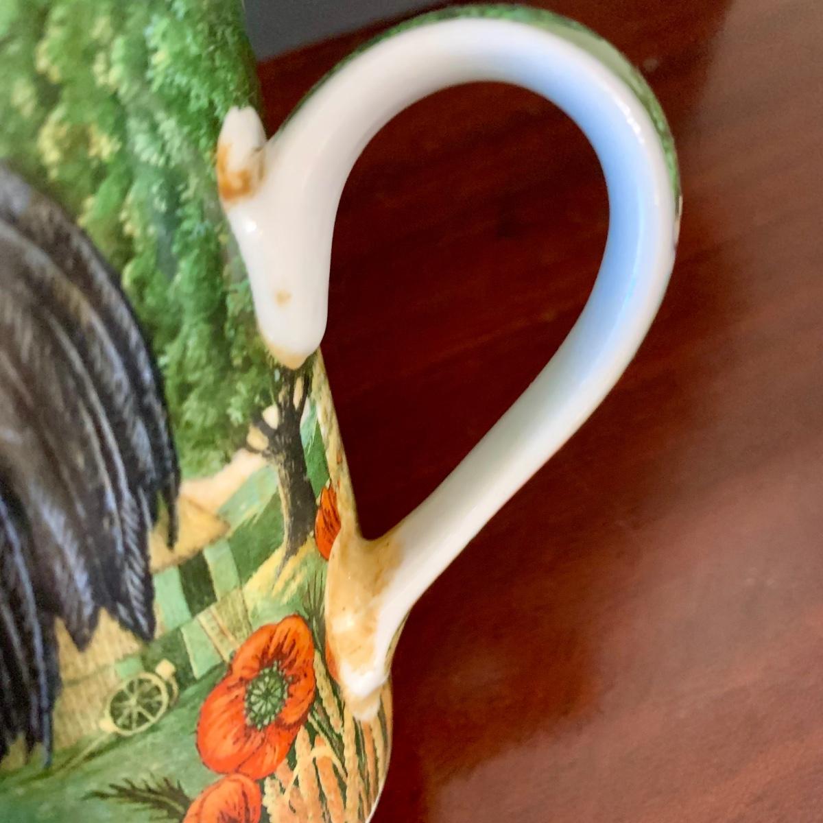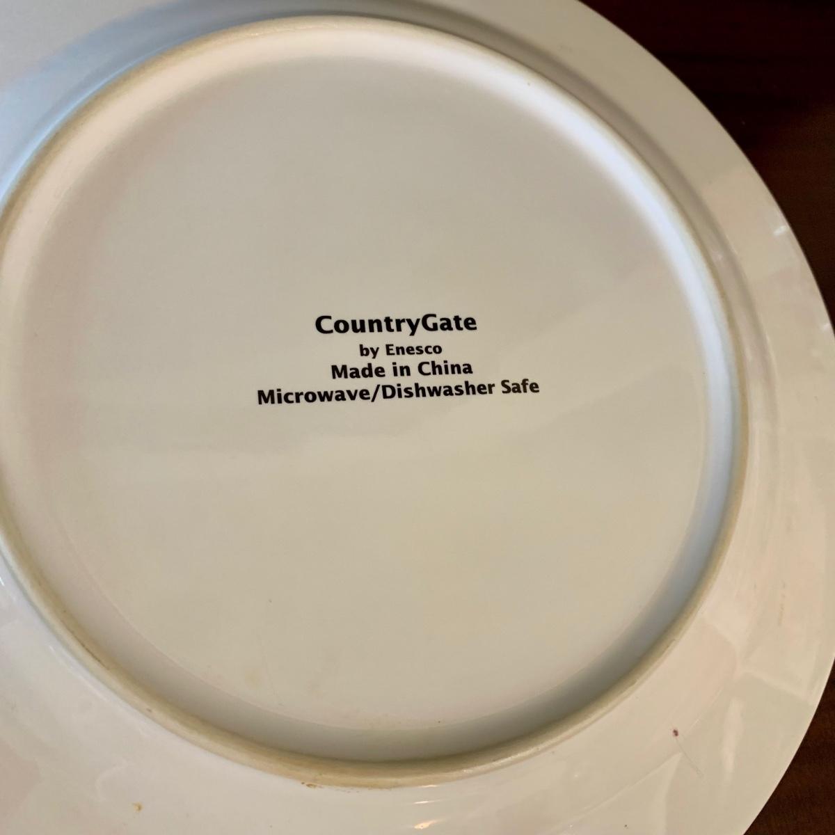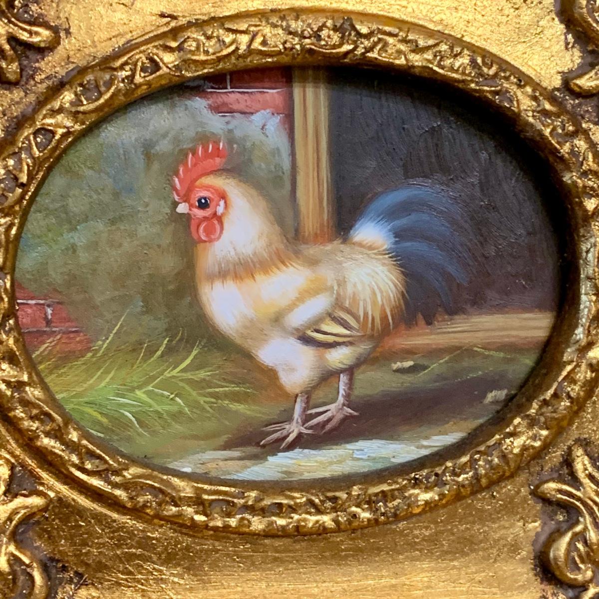 LOT 34 K: Rooster Collection: "Country Gate" Enesco Plates, "Rooster" Dept 56 Mugs, Salt & Pepper Shakers, Stacking Boxes, & Small Gilded Frame Rooster Painting